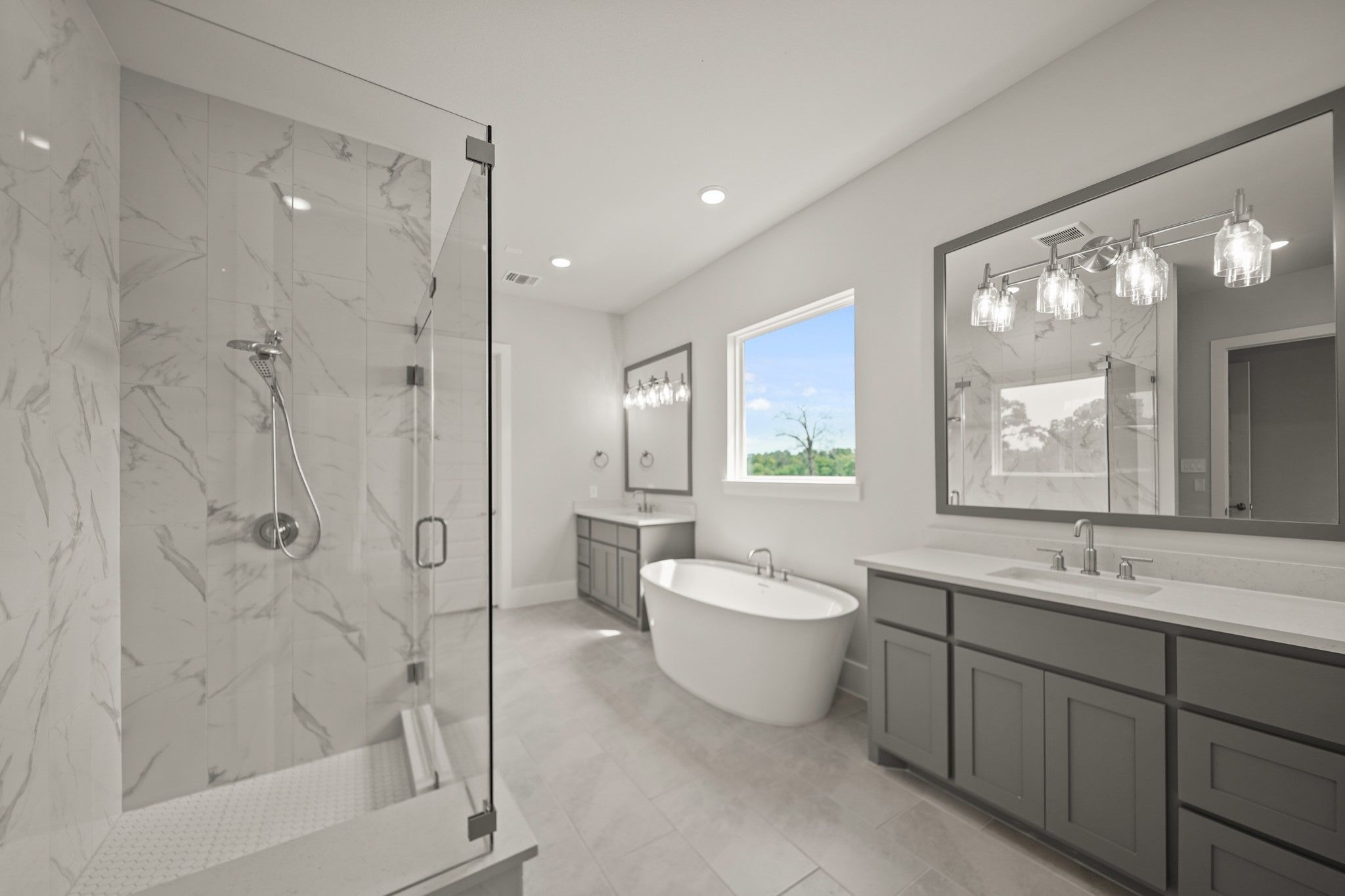 - Double Vanity, Entrance Foyer, Granite Counters, High Ceilings, Kitchen Island, Kitchen/Family Room Combo, Bath in Primary Bedroom, Soaking Tub, Separate Shower, Tub Shower, Walk-In Pantry, Ceiling Fan(s), Kitchen/Dining Combo, Programmable Thermostat