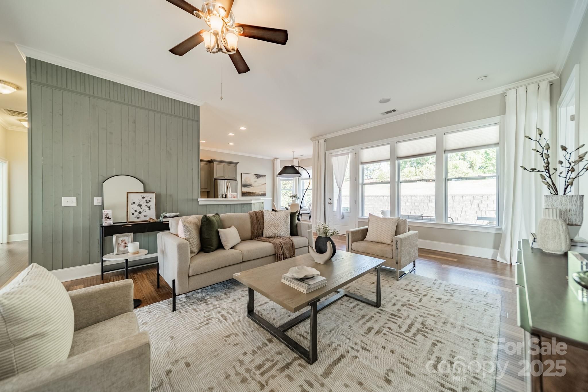 Beautiful Waverly-model ranch in the highly desirable Regency at Palisades. This 3-bed, 2.5-bath home features an open, light-filled layout designed for effortless living and entertaining. A welcoming foyer leads to a formal dining room with crown molding and wainscoting, along with a private study that can serve as an office or sitting room. The spacious kitchen includes a large island, stainless steel appliances, 5-burner gas cooktop with venting, quartz countertops, subway tile backsplash, and soft-close cabinetry. The great room flows seamlessly to the dining and breakfast areas, offering comfortable everyday living. The primary suite features a tray ceiling, generous natural light, and a spa-inspired bath with dual vanities, frameless shower, soaking tub, and a well-appointed walk-in closet. Enjoy outdoor living on the front covered porch or partially covered deck overlooking a private backyard. HOA includes full lawn maintenance and irrigation. Resort-style amenities include indoor/outdoor pools, fitness center, tennis, pickleball, bocce, walking trails, social activities, and Lake Wylie access. This home offers comfort, quality, and a low-maintenance lifestyle in one of Charlotte’s premier communities.