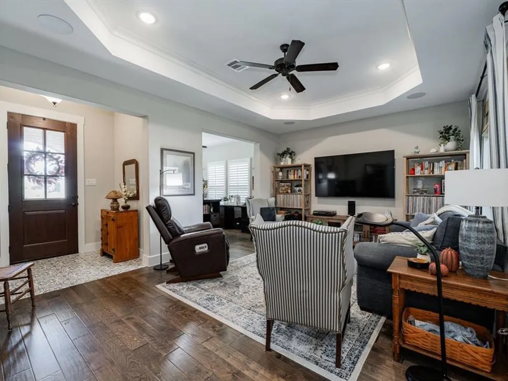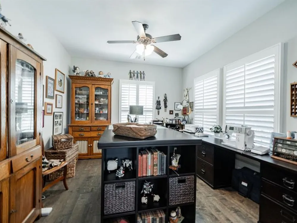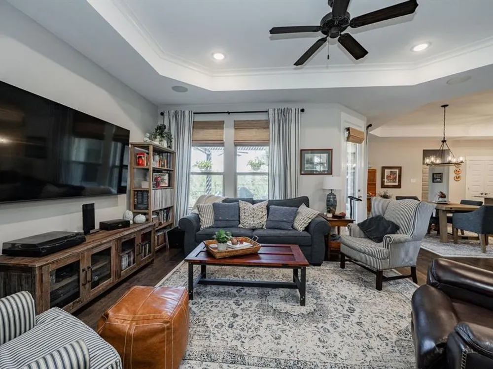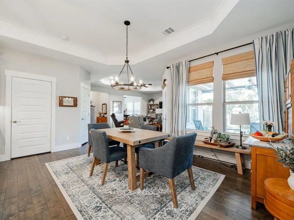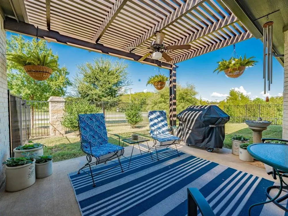 Welcome to this beautifully maintained home in the sought-after Ladera neighborhood of Rockwall. Designed with comfort and convenience in mind, this property offers an inviting floor plan with thoughtful details throughout. The spacious living area is filled with natural light and flows seamlessly into the modern kitchen featuring quartz countertops, stainless steel appliances, ample cabinetry, and a large island perfect for entertaining. The open-concept layout connects the dining and living spaces, making gatherings easy and enjoyable.The primary suite provides a peaceful retreat with a generous walk-in closet and spa-inspired bathroom complete with dual vanities and an oversized shower. The large secondary bedroom offers versatility for family, guests, or a home office. A separate flex room provides even more options, ideal for a craft room, study, or additional office space.Step outside to an oversized patio with a covered pergola that overlooks the greenbelt, creating a serene outdoor living space ideal for relaxing or hosting gatherings. The living room and kitchen area are equipped with surround sound speakers, enhancing everyday living and entertaining. The property also includes a two-car garage, energy-efficient features, and tasteful finishes throughout.Located in Ladera, Rockwall’s premier 55+ active adult community, residents enjoy resort-style amenities including a clubhouse, fitness center, pool, pickleball courts, walking trails, and a vibrant social calendar. Just minutes from Lake Ray Hubbard, dining, shopping, and healthcare, this location blends tranquility with convenience.This property is move-in ready and offers the perfect combination of lifestyle, comfort, and community. Don’t miss the chance to call this one home!
