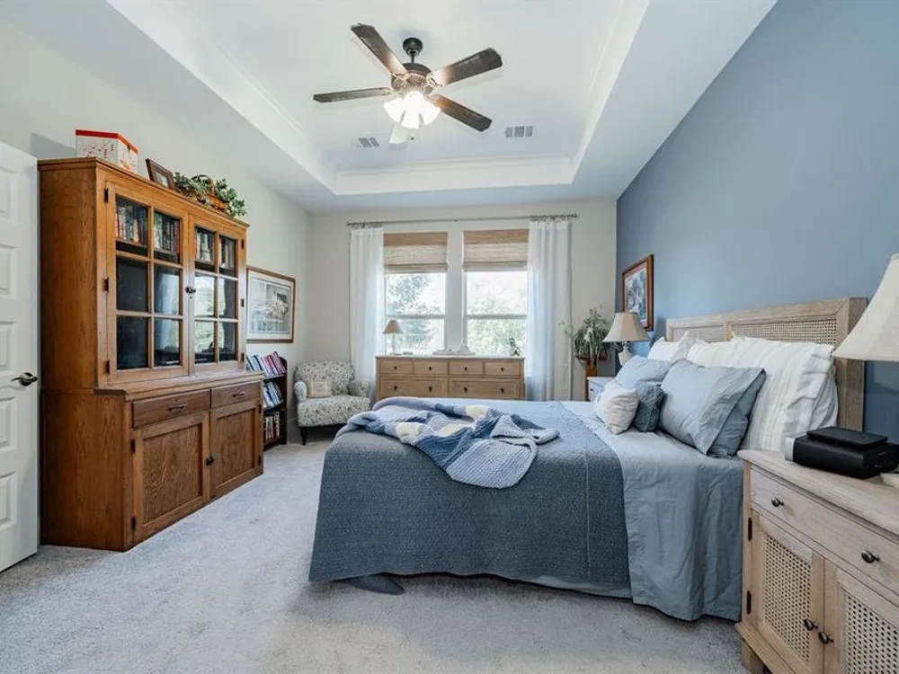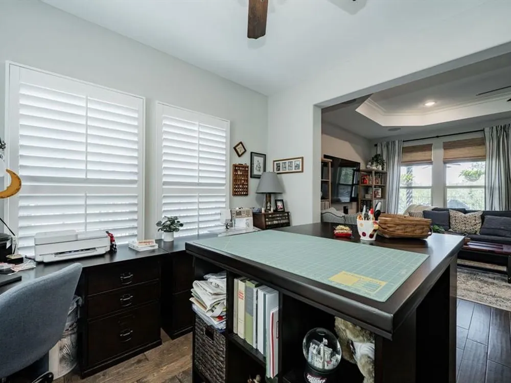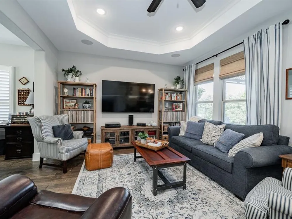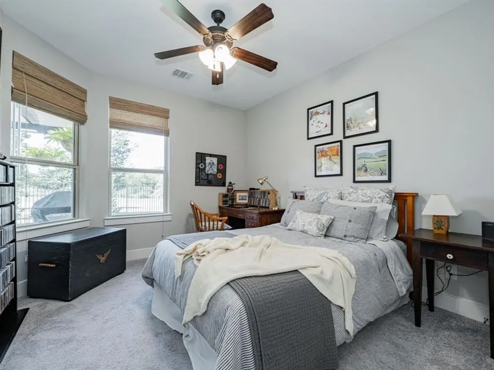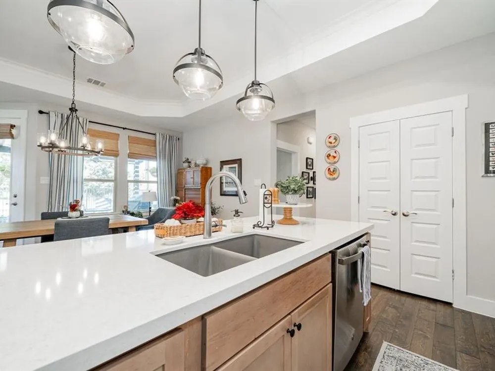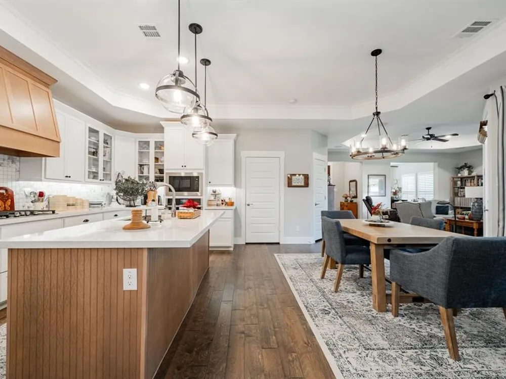 Welcome to this beautifully maintained home in the sought-after Ladera neighborhood of Rockwall. Designed with comfort and convenience in mind, this property offers an inviting floor plan with thoughtful details throughout. The spacious living area is filled with natural light and flows seamlessly into the modern kitchen featuring quartz countertops, stainless steel appliances, ample cabinetry, and a large island perfect for entertaining. The open-concept layout connects the dining and living spaces, making gatherings easy and enjoyable.The primary suite provides a peaceful retreat with a generous walk-in closet and spa-inspired bathroom complete with dual vanities and an oversized shower. The large secondary bedroom offers versatility for family, guests, or a home office. A separate flex room provides even more options, ideal for a craft room, study, or additional office space.Step outside to an oversized patio with a covered pergola that overlooks the greenbelt, creating a serene outdoor living space ideal for relaxing or hosting gatherings. The living room and kitchen area are equipped with surround sound speakers, enhancing everyday living and entertaining. The property also includes a two-car garage, energy-efficient features, and tasteful finishes throughout.Located in Ladera, Rockwall’s premier 55+ active adult community, residents enjoy resort-style amenities including a clubhouse, fitness center, pool, pickleball courts, walking trails, and a vibrant social calendar. Just minutes from Lake Ray Hubbard, dining, shopping, and healthcare, this location blends tranquility with convenience.This property is move-in ready and offers the perfect combination of lifestyle, comfort, and community. Don’t miss the chance to call this one home!
