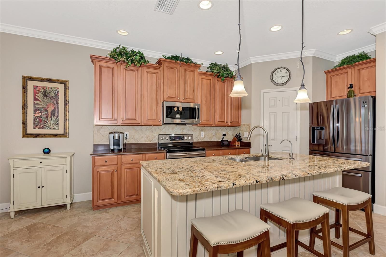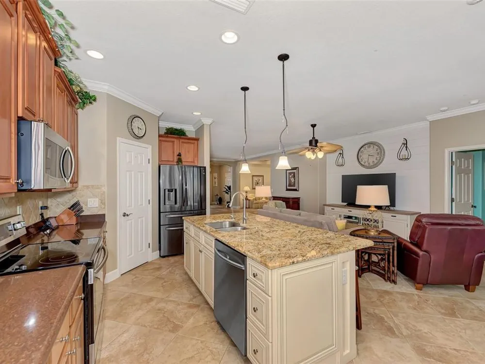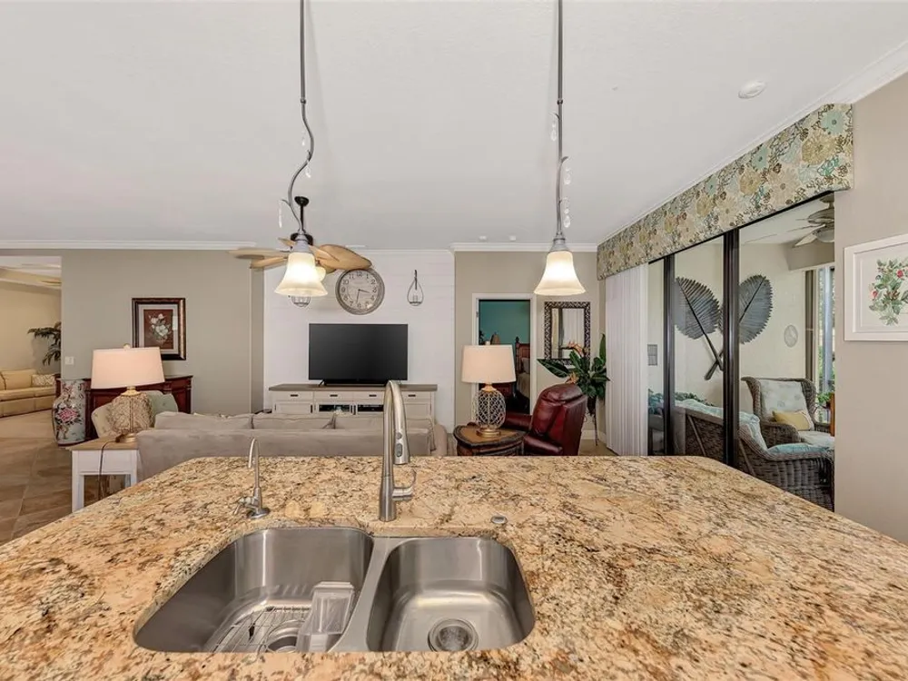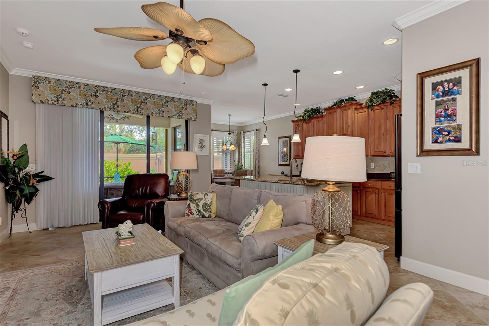 - Ceiling Fan(s), Crown Molding, In-Wall Pest Control, Living/Dining Room, Open Floorplan, Solid-Wood Cabinets, Stone Counters, Walk-In Closet(s), Window Treatments