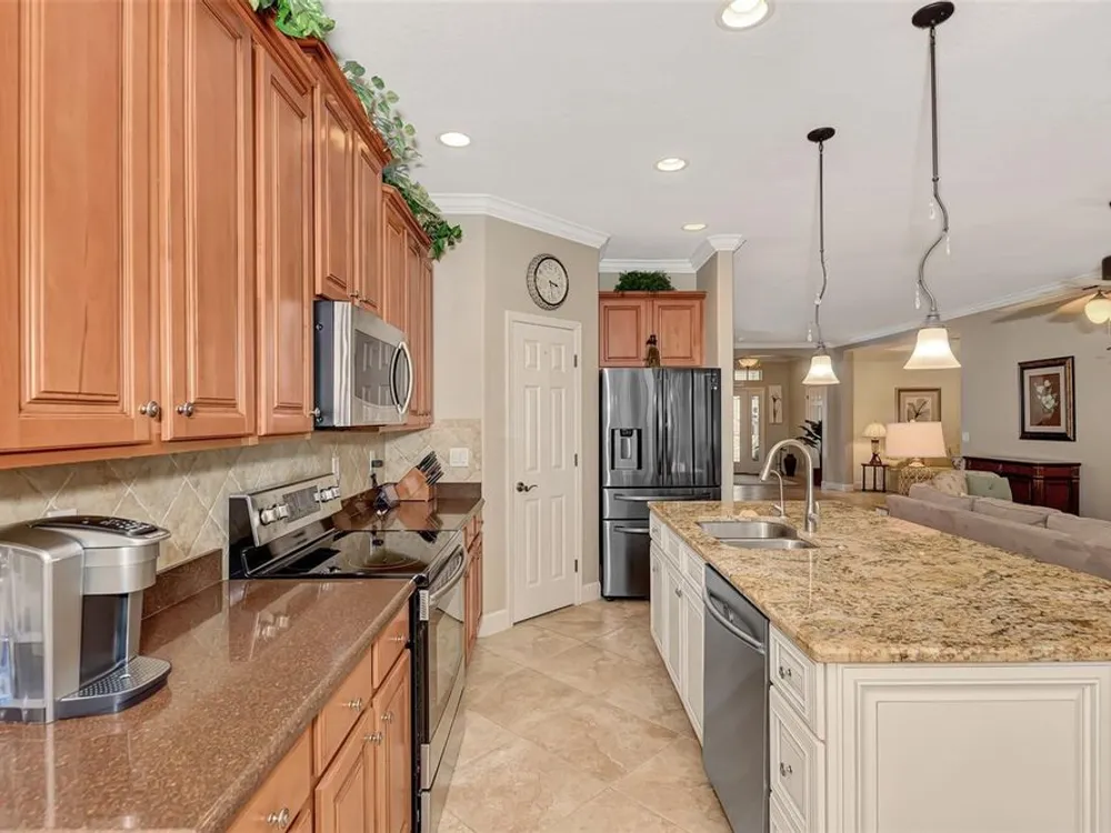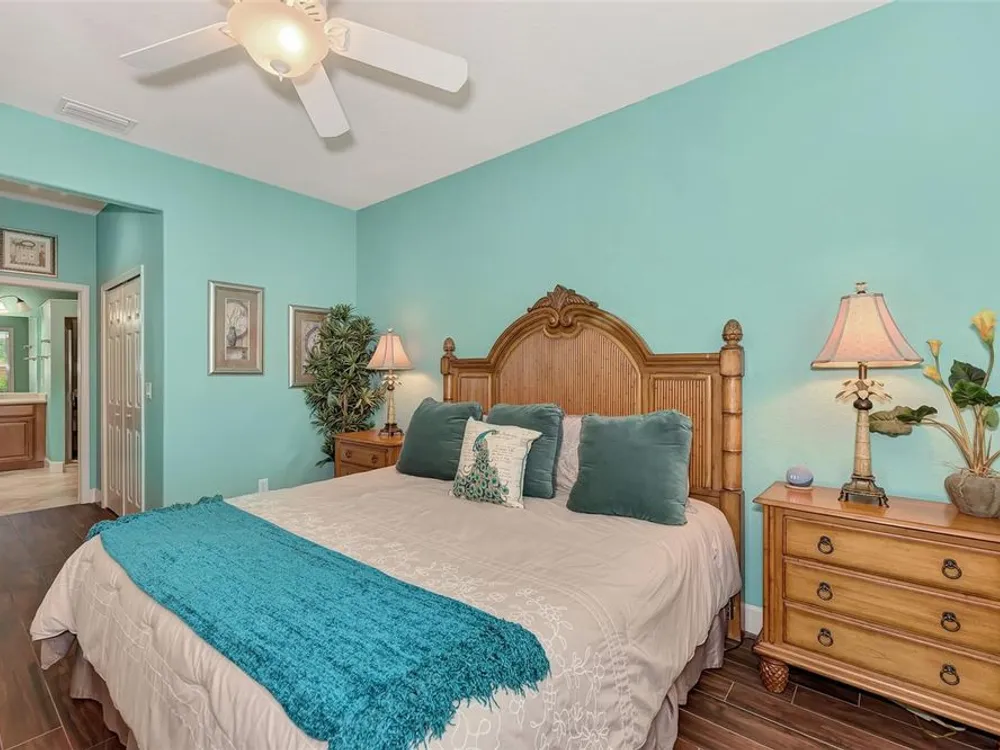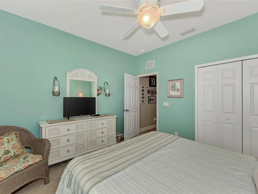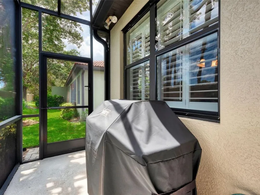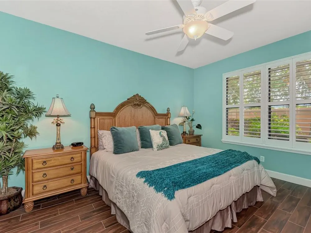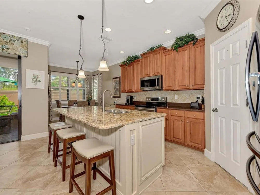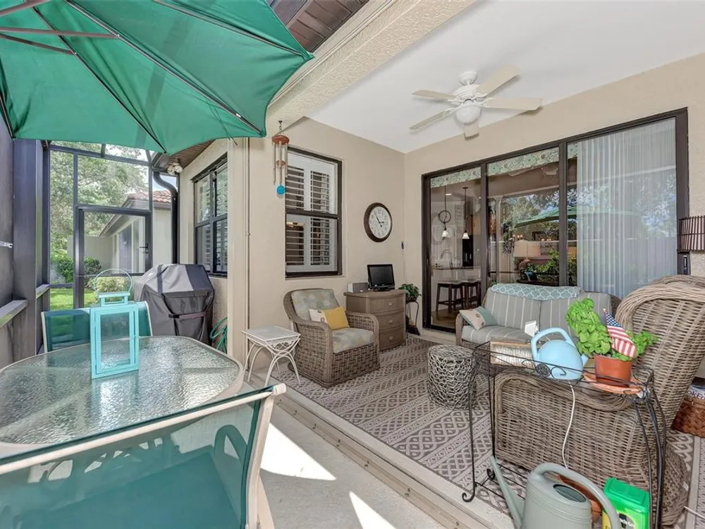 Welcome to your dream home in this exclusive 55+ gated community! This stunning 2006-built villa offers over 2,100 square feet of luxurious living with a spacious open floor plan, perfect for both relaxation and entertaining. Featuring 3 bedrooms, 2 bathrooms, and a versatile bonus room, this home is designed for comfort and style. Step through the elegant glass front door entry to find plantation shutters, crown molding, and 18-inch tile laid on the diagonal throughout much of the home, complemented by cozy carpeting in two of the bedrooms and bonus room. The modern kitchen boasts an updated breakfast bar, ideal for casual dining or hosting guests. Stay cool with a recently updated A/C system and enjoy peace of mind with impact windows and hurricane shutters. The extended lanai invites you to unwind and soak in the serene surroundings, while the attached 2-car garage provides ample storage and convenience. With low HOA fees and no CDD, this villa offers exceptional value in a vibrant community. Don’t miss the opportunity to own this beautifully appointed home—schedule your private tour today!