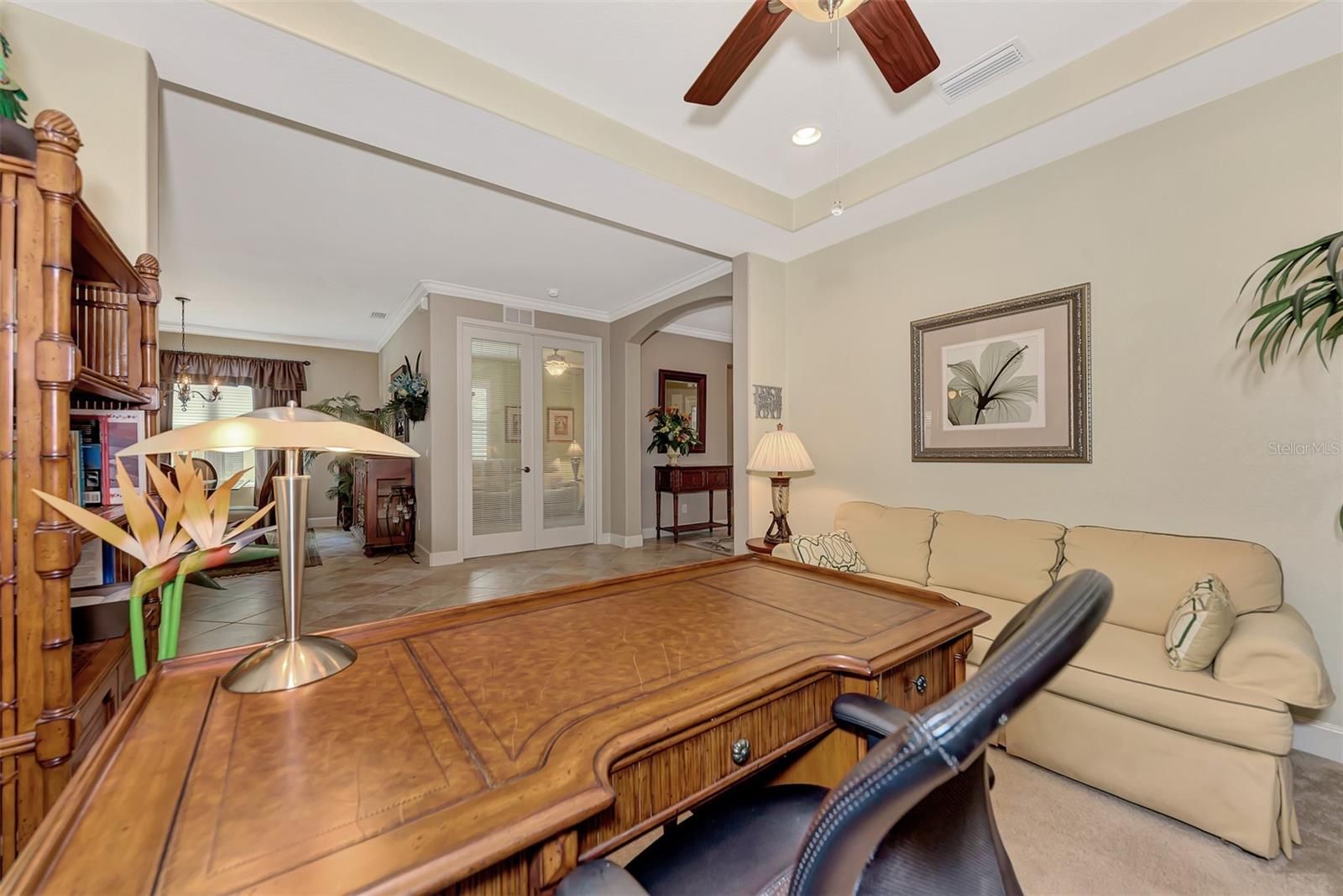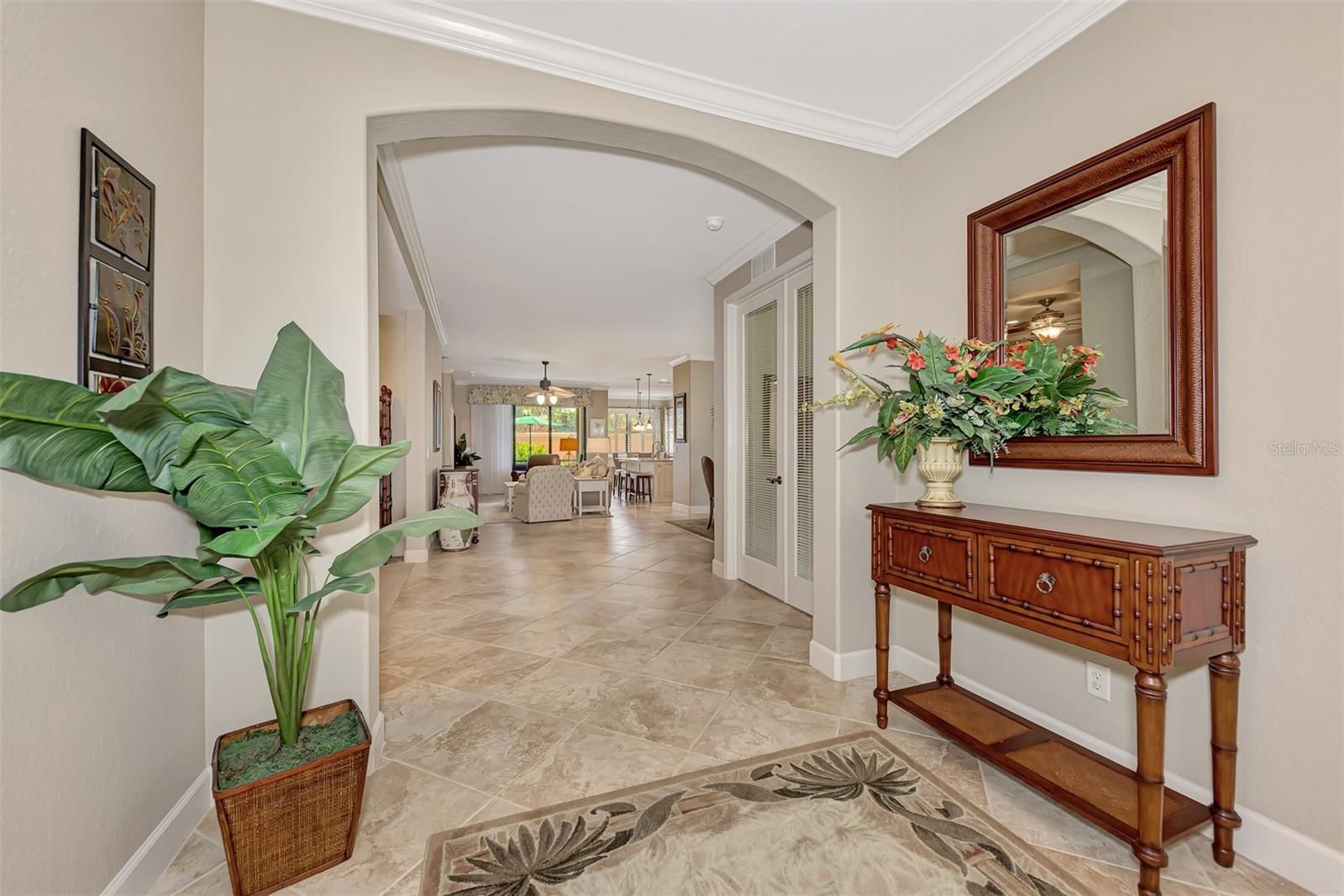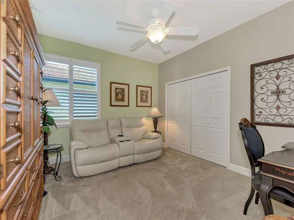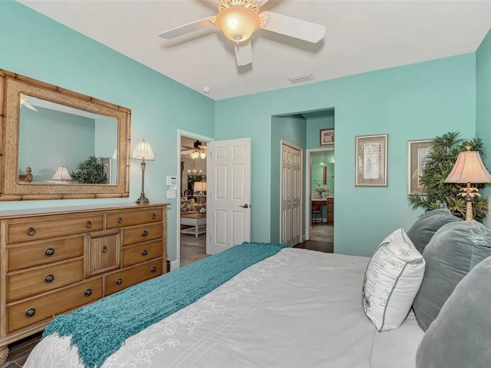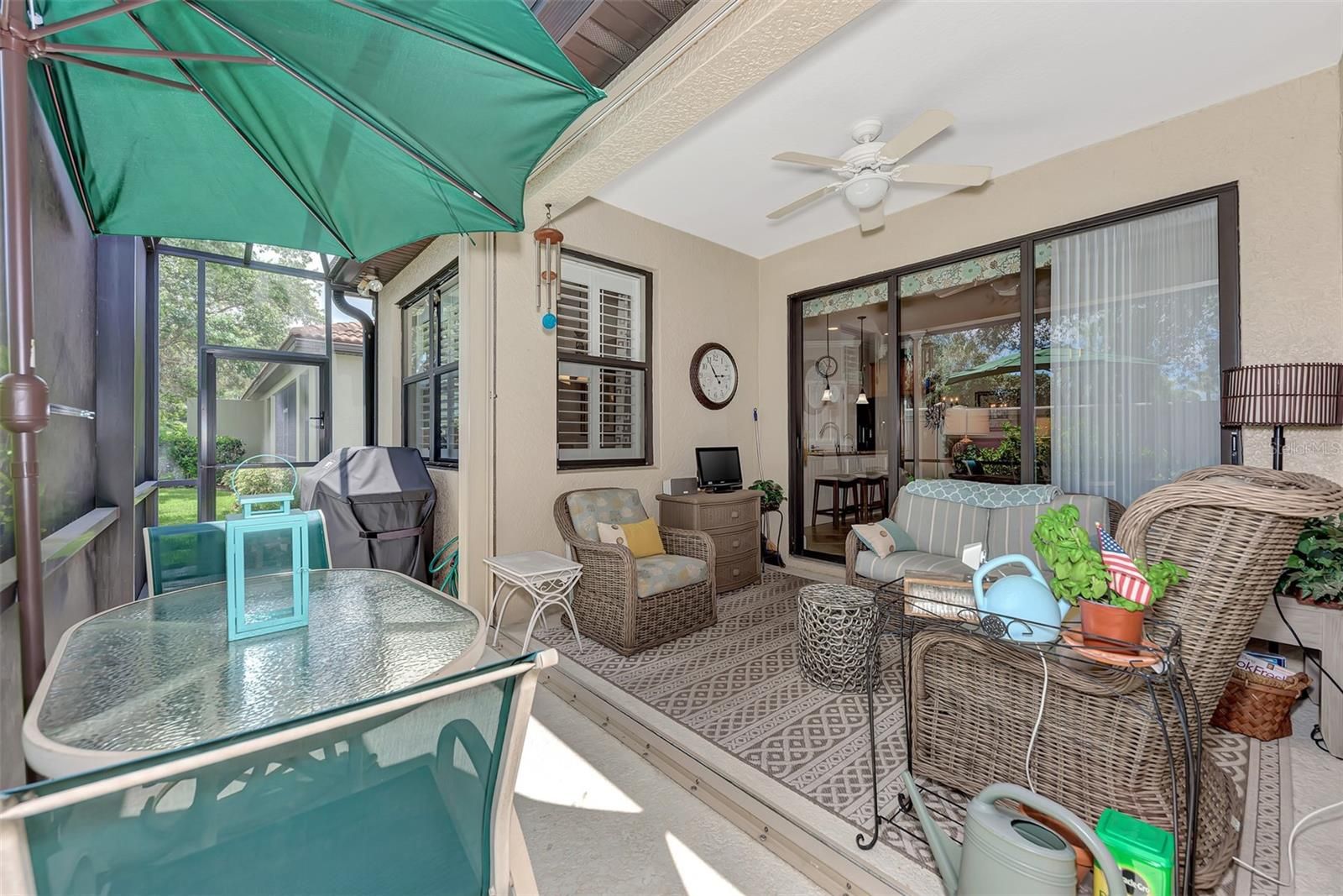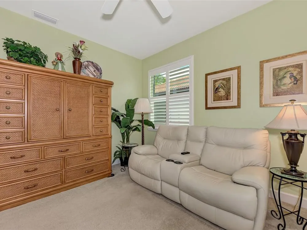 Welcome to your dream home in this exclusive 55+ gated community! This stunning 2006-built villa offers over 2,100 square feet of luxurious living with a spacious open floor plan, perfect for both relaxation and entertaining. Featuring 3 bedrooms, 2 bathrooms, and a versatile bonus room, this home is designed for comfort and style. Step through the elegant glass front door entry to find plantation shutters, crown molding, and 18-inch tile laid on the diagonal throughout much of the home, complemented by cozy carpeting in two of the bedrooms and bonus room. The modern kitchen boasts an updated breakfast bar, ideal for casual dining or hosting guests. Stay cool with a recently updated A/C system and enjoy peace of mind with impact windows and hurricane shutters. The extended lanai invites you to unwind and soak in the serene surroundings, while the attached 2-car garage provides ample storage and convenience. With low HOA fees and no CDD, this villa offers exceptional value in a vibrant community. Don’t miss the opportunity to own this beautifully appointed home—schedule your private tour today!