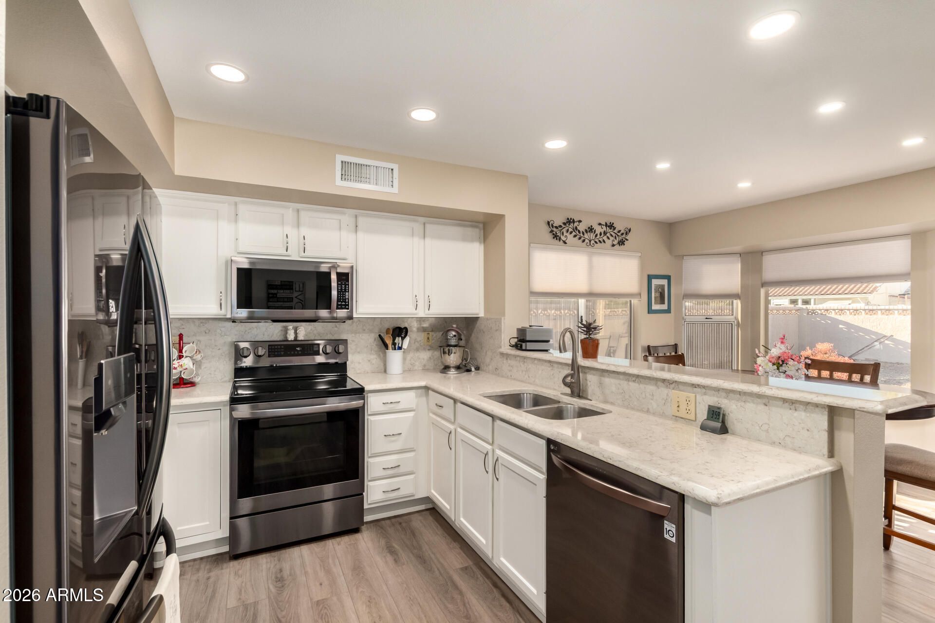 This home is a rare find! This is move in ready. New flooring throughout the whole home. No carpet anywhere for easy cleaning and an updated look. Freshly painted inside with a bright and neutral color, updated kitchen with all new appliances as of 2020. Bay window off of the kitchen for that morning cup of coffee. Granite countertops keeping the bright neutral color extending into the kitchen. The lighting and ceiling fans have also been updated for you, one less thing to think about. The Large back patio with an extended Pergola to enjoy your Large walled in back yard which makes for a perfect spot to entertain or just enjoy our Arizona weather. If you need a little more relaxation this backyard features a private spa for that little bit of extra time to enjoy the outdoors.