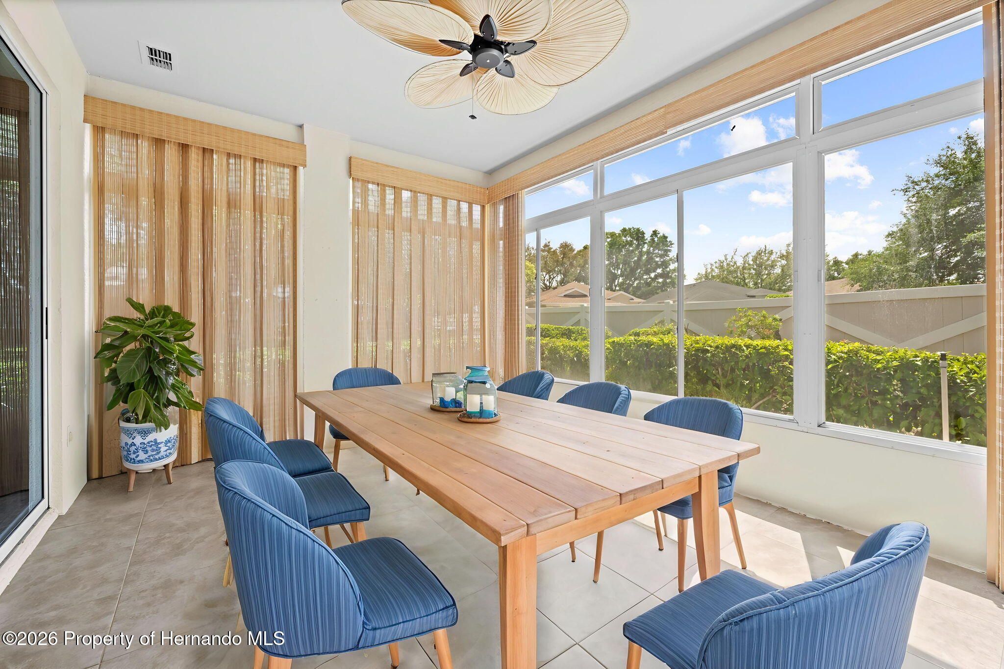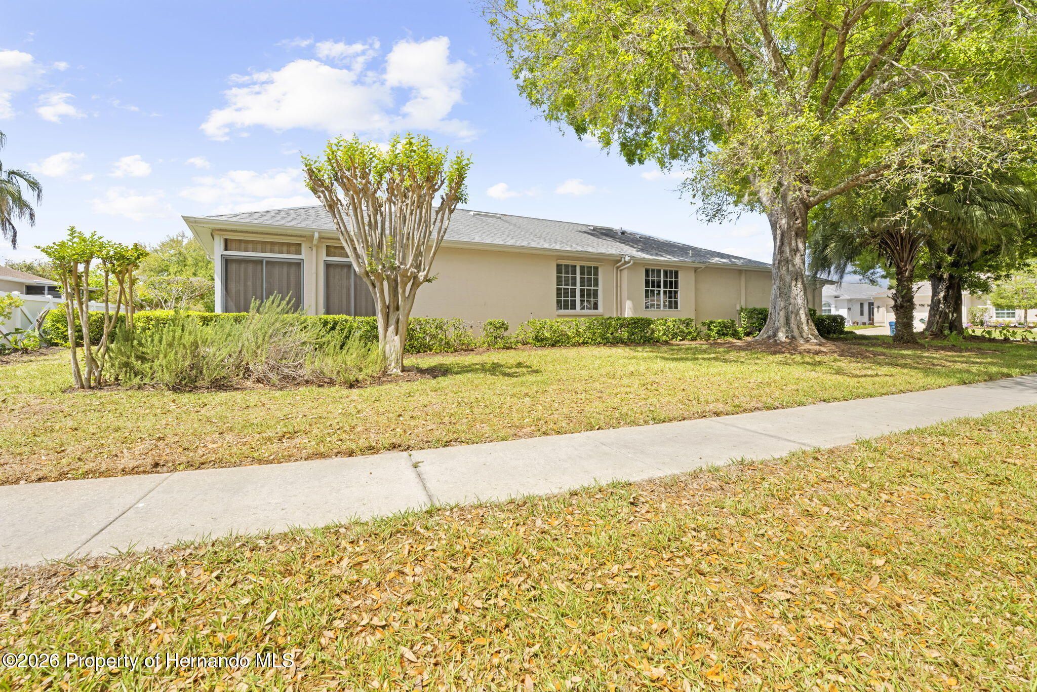 Located in the gated golf course community of Silverthorn, this well-maintained villa offers maintenance-free living, a functional layout, and expanded indoor living space, all positioned on a quiet corner lot in a peaceful Spring Hill setting. [Key Features] Built in 1997 and located within The Villas at Bristol Pond, this single-story residence offers approximately 1,757 square feet of living space with 2 bedrooms, 2 bathrooms, a dedicated office/den, and a 2-car garage. The home features concrete block and stucco construction, a newer roof (2016), and updated HVAC system (2019), providing added value and peace of mind . [Living Spaces] The home features an open and comfortable layout with connected living and dining areas designed for everyday living and entertaining. A separate office/den provides a dedicated workspace and offers flexibility as a potential third bedroom. [Kitchen] The centrally located kitchen offers ample cabinetry and counter space with a functional layout that supports both daily use and hosting. [Primary Suite] The primary suite offers privacy and comfort with an en-suite bathroom and the benefit of two walk-in closets, providing generous storage. [Flexible Layout] A thoughtfully designed floor plan enhances privacy, with the guest bedroom and adjacent full bathroom positioned in a way that allows this portion of the home to be separated from the main living area via a pocket door. This layout offers an ideal setup for guests, extended stays, or multi-generational living, often sought after as a 'mother-in-law' style arrangement. [Additional Features] An oversized laundry room includes added storage and a built-in workstation desk, offering practical space for organization and everyday tasks. [Outdoor Living] An enclosed lanai under heat and air adds nearly 200 square feet of additional year-round living space, offering flexibility for a sitting room, hobby area, or extended entertaining space while enjoying the surrounding community setting. [Community & Lifestyle] Silverthorn is a gated golf course community featuring an 18-hole course, clubhouse, fitness center, tennis courts, pickleball, and an on-site restaurant. Conveniently located near the Suncoast Parkway, the home offers easy access to the Tampa Bay area, with Clearwater and St. Pete beaches typically within about an hour's drive, and Tampa International Airport approximately 45 minutes to an hour away. Residents enjoy both an active lifestyle and everyday accessibility. A great opportunity to own in a sought-after Spring Hill golf community--schedule your private showing today. Some images have been virtually staged or digitally enhanced for illustrative purposes.