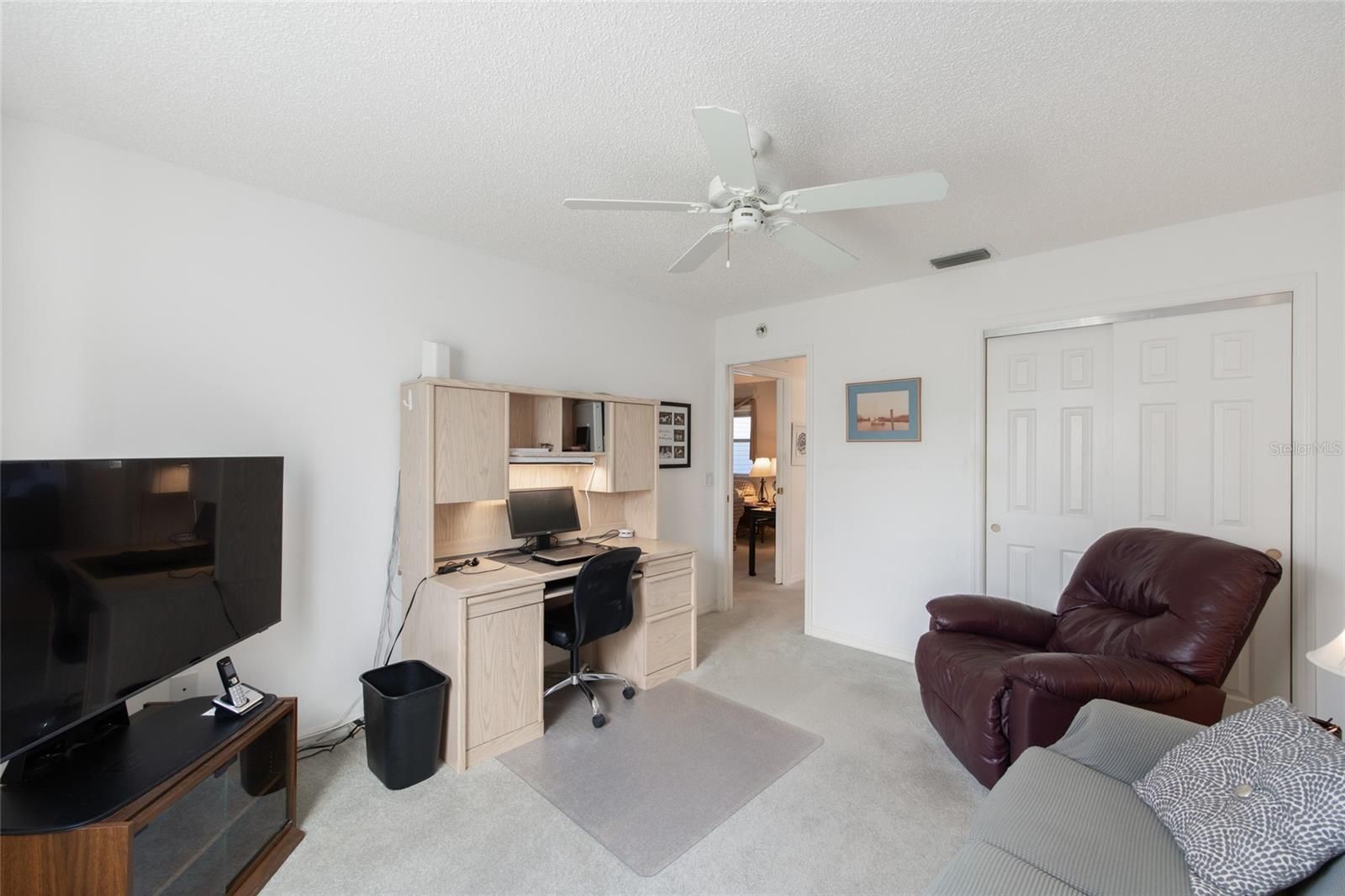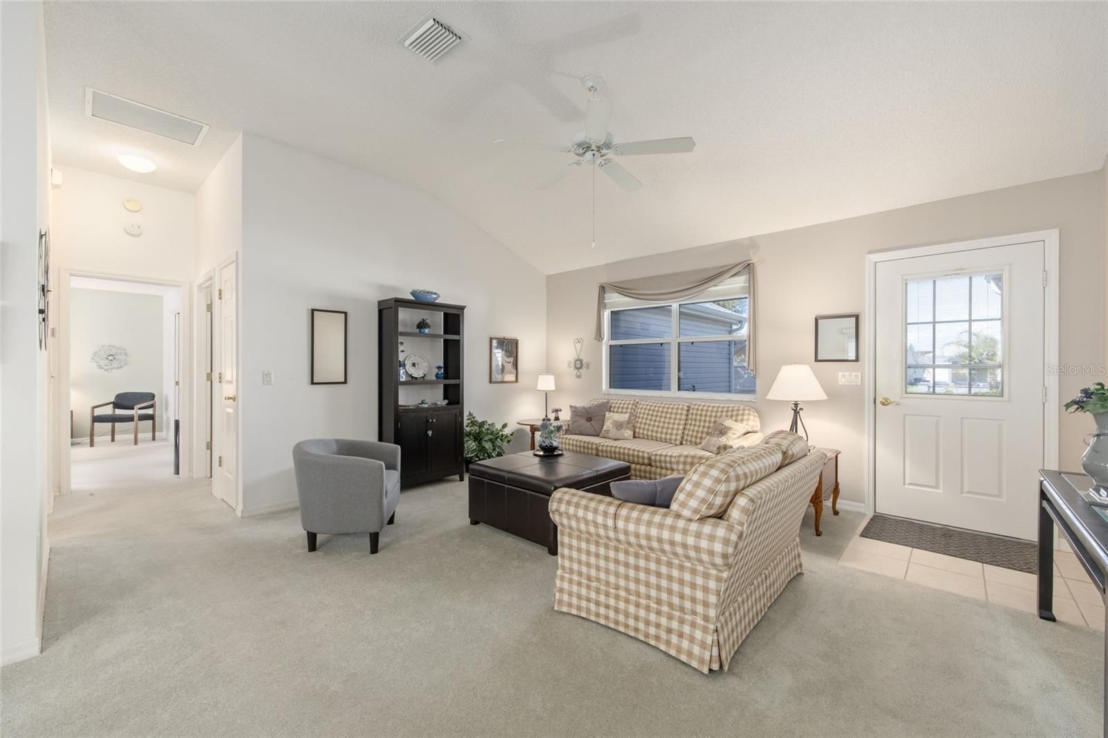 Welcome to this beautifully maintained, ONE OWNER, Catalina 3 Model home, offered TURNKEY. Facing west, this home boasts a spacious open living and dining area with vaulted ceilings and abundant natural light. 6 Pocket Doors make this home very efficient! The kitchen features custom white wood cabinetry, modern appliances, a breakfast bar, and a large pantry, perfect for both daily living and entertaining. Three comfortable bedrooms include a primary suite with a walk-in closet and a dual vanity en-suite bath. Enjoy year-round comfort in the enclosed lanai, enhanced with heating and air even a switch to turn off and conserve that energy, privacy shades, and views of the landscaped backyard. Recent upgrades include a newer roof (2018), HVAC system (2023), and water heater (2018), plus added insulation and thermal pane windows for energy efficiency. The expanded driveway and two-car garage offer ample parking and storage. With its inviting covered front porch, mature landscaping, and numerous thoughtful details, this home offers the perfect blend of comfort and style for Florida living. Great Location!! Close to hospital, shopping and 2 Town Squares. A nice mix of Designer and Premier homes in this quiet neighborhood! NO BOND! Watch our great video attached to the listing!