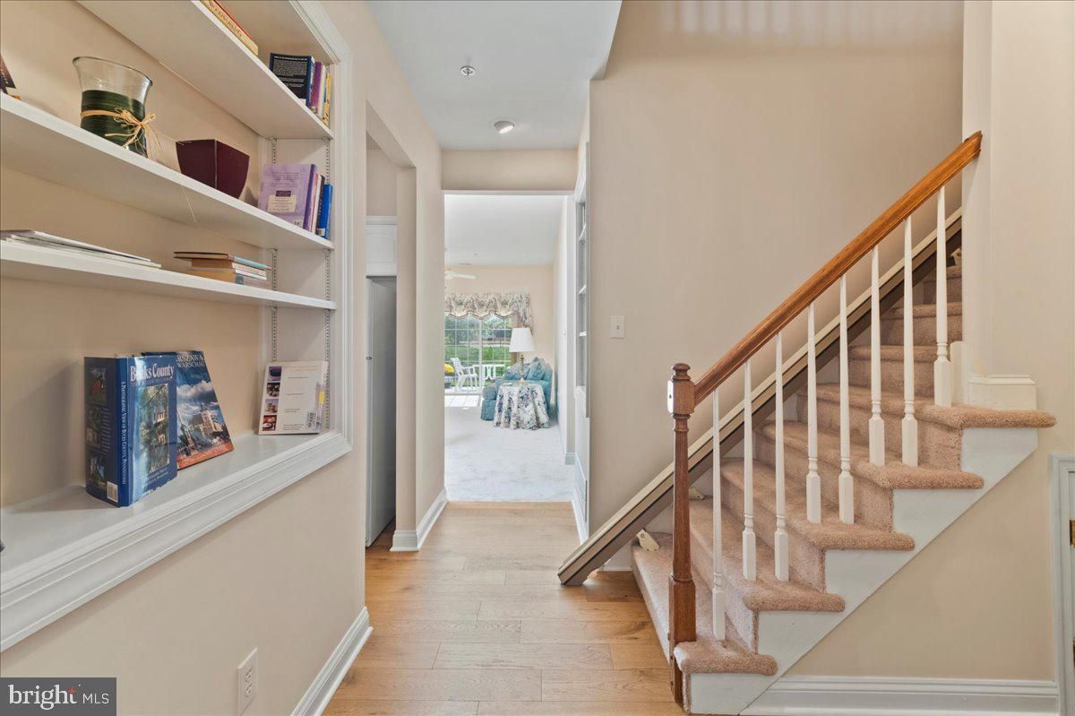 Experience comfortable and effortless living in this charming 3-bedroom home located at 1504 Springfield Court in the desirable 55+ community of Yorktown, Jamison, PA. The primary suite on the first floor boasts a spacious and luxurious en-suite bathroom with a walk-in shower and two spacious walk-in closets. The bright and inviting living room features high ceilings, oversized windows, and a cozy gas fireplace, creating a warm and welcoming atmosphere. A well-appointed kitchen offers spacious countertops, abundant cabinetry, and a sunny breakfast area perfect for morning coffee. The versatile den, complete with a closet, can serve as a fourth bedroom or a relaxing home office. Upstairs, there are two large bedrooms and a full bathroom, ideal for guests. The home is freshly painted with new flooring and built-ins, adding to its appeal. Step outside through sliding glass doors to a lovely patio, perfect for outdoor barbecues and relaxing warm weather days. Enjoy scenic walking trails and a beautiful park just steps away, all within a maintenance-free, carefree lifestyle in this sought-after community.