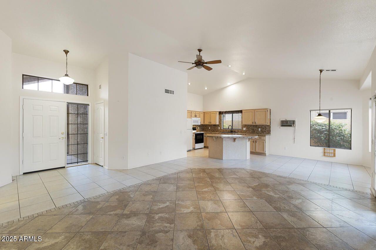 Open floor plan! A favorite for those wanting a smaller home (1445 sq ft)vaulted ceilings, 2 bedroom with den, owners suite with bath, 2 sink vanity, walk-in closet, access to outdoor living. Cozy, private backyard (no busy street). 2 car attached garage, newer water heater, HVAC Quiet area of the community, PebbleCreek is an age restricted community offering first class amentites to include 3-18 hole golf courses, Pickleball, Tennis, Bocce ball, restaurants, fitness centers, over 200 clubs, creative center and so much more!! Check us out!!!