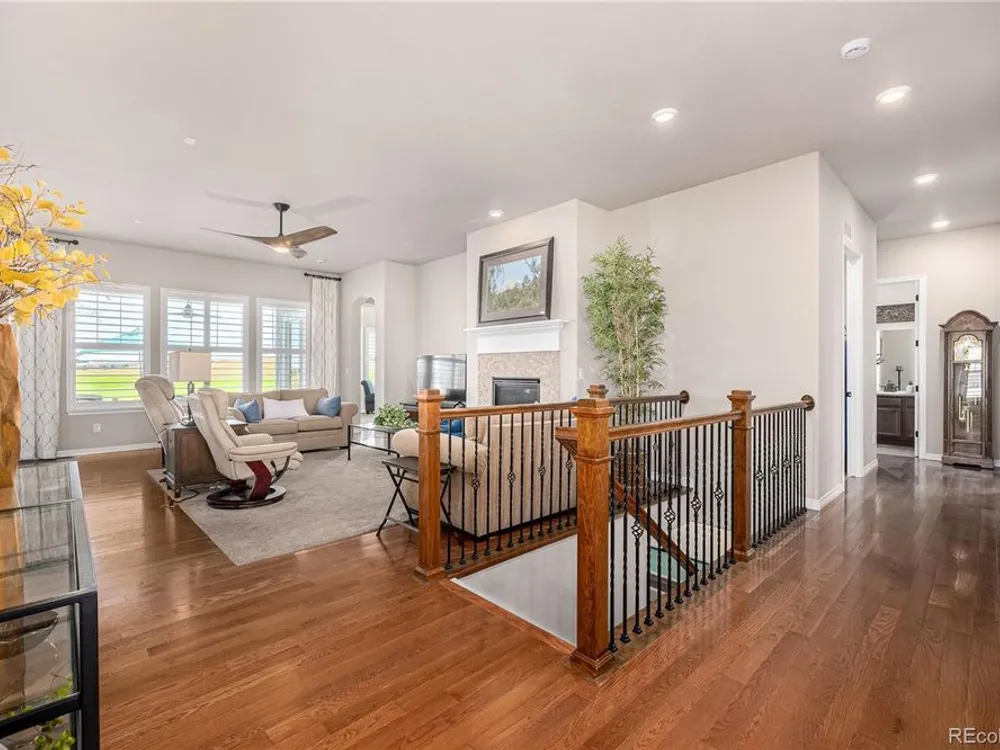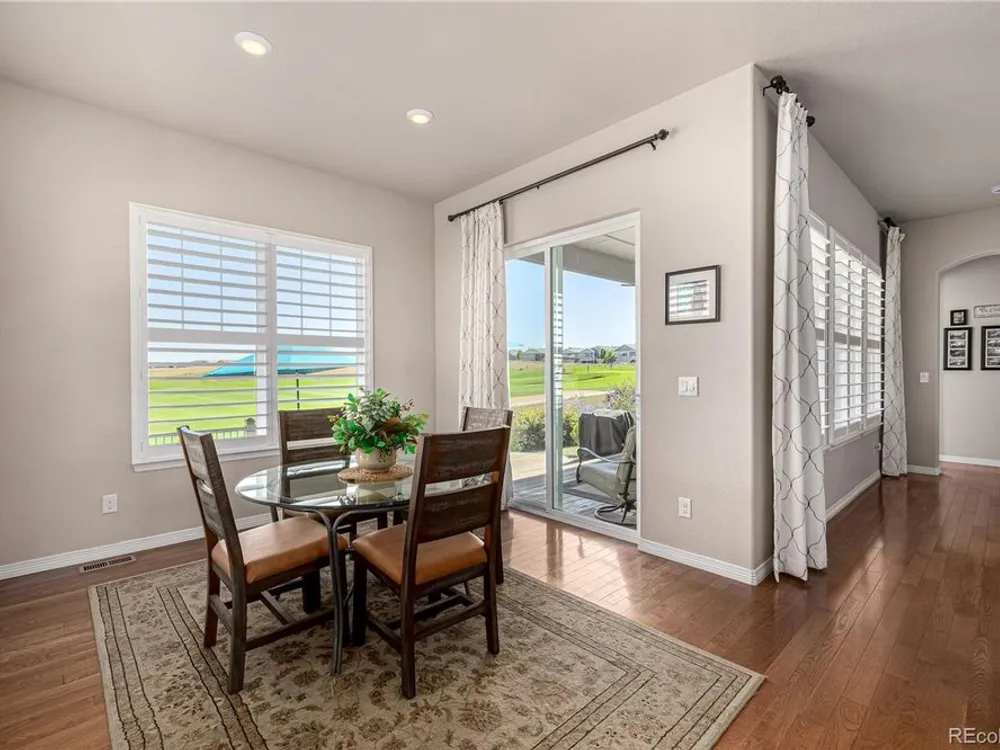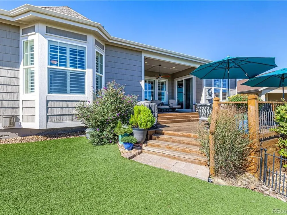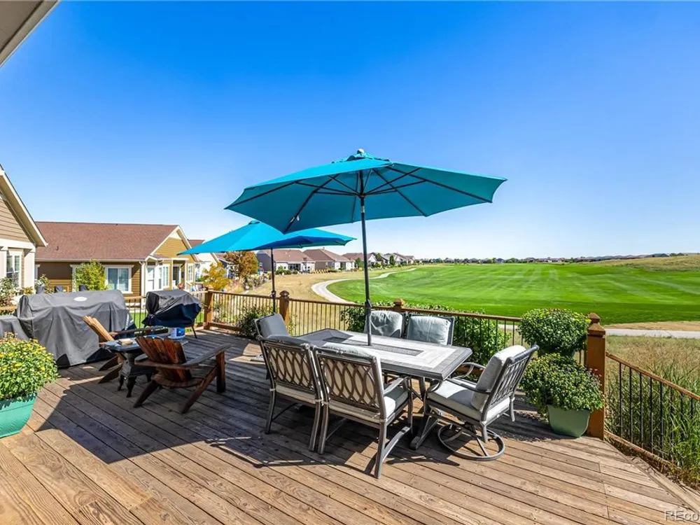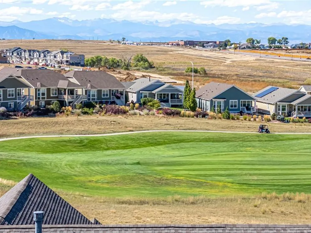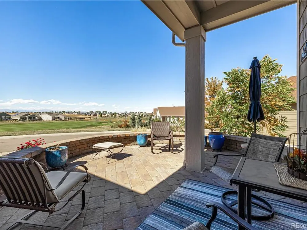 Welcome to your beautifully maintained home on a rare lot in sought after 55+ Heritage Todd Creek community! Nestled just off the 14th green, and across from the 15th fairway, the location offers a peaceful oasis off the back, and gorgeous views of the Rocky Mountains from a custom stone patio overlooking a beautifully manicured and professionally landscaped front yard. As you head inside, you are greeted by an abundance of natural light, an open floor plan, and hardwood floors. In the kitchen, you will find solid cherry cabinets accentuated w/ granite countertops, a bar-top island, upgraded gas range, upgraded dishwasher, dry bar, and butler’s pantry. The spacious breakfast nook is ideal for everyday dining and allows access to a large redwood deck overlooking the 14th fairway. Safely tucked back away from stray balls, this lot creates a perfect space to entertain, relax after a long day, or just take in the peace. Professionally landscaped backyard with low maintenance astroturf, and two raised gardens. As you head inside, warm your toes by the fireplace in your open living room. Off the primary bedroom, you will find a spacious bathroom with large shower, attached laundry, walk-in closet, and direct access to deck. In addition, the main level features plantation shutters, guest bedroom, dining room, and extra room that could be used as an office or 4th bedroom. As you head downstairs, you are greeted by a warm space, perfect for entertaining. It features 9-foot ceilings, guest room, bathroom with jacuzzi, an inviting family/game room w/ large fireplace & stone surround, a custom, built-in wet bar w/ beer tap, bar top w/ extra seating, tons of storage, and flex space for a workout or movie room. Heritage Todd Creek offers resort-style amenities, and a vibrant community that enhances everyday life. This home isn't just a residence—it's a lifestyle! Play some golf, relax by one of the two pools, enjoy a game of pickleball w/ friends, and soak in all that HTC offers!