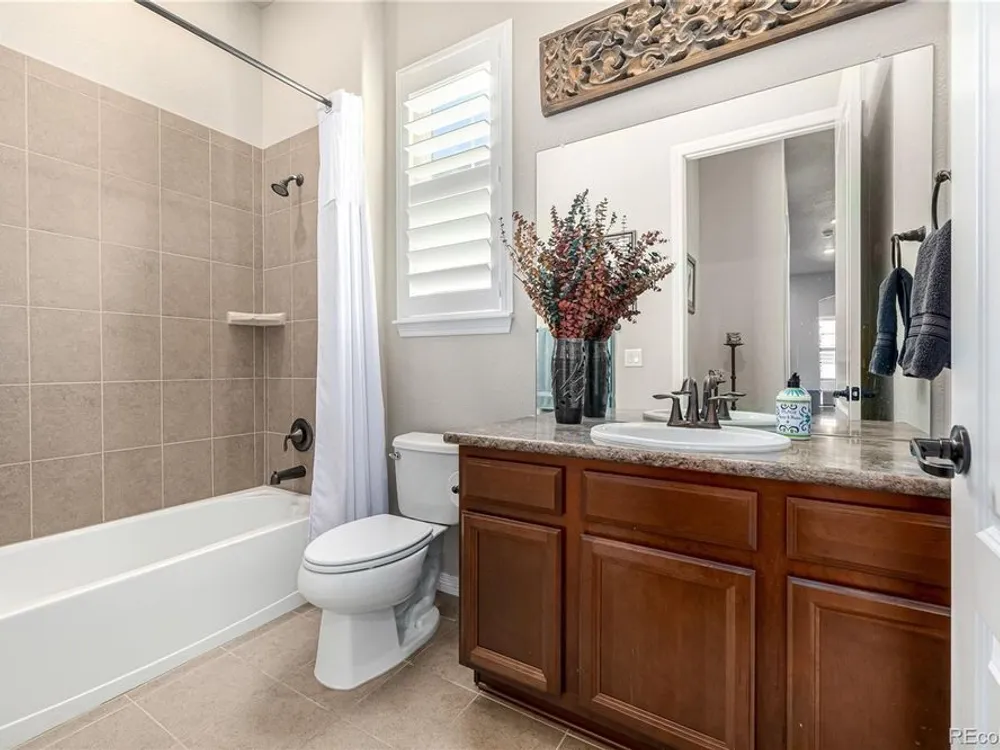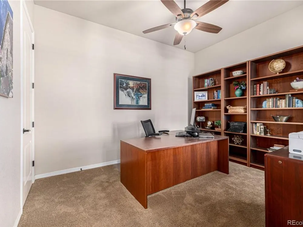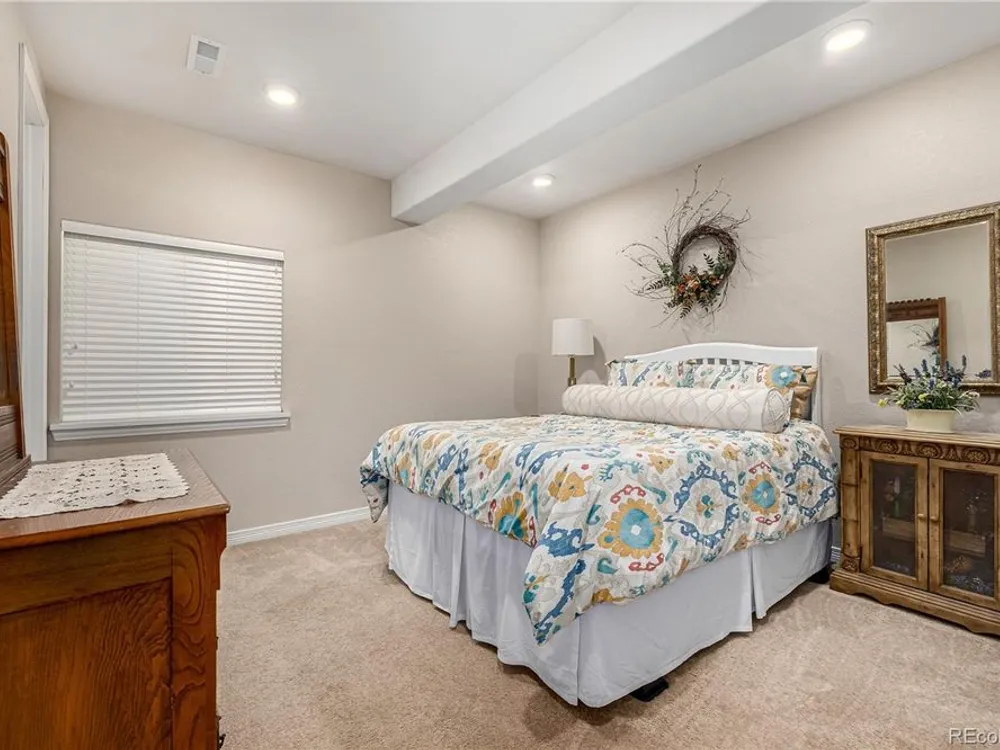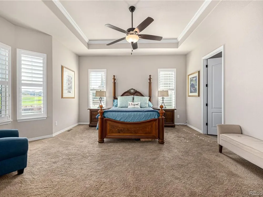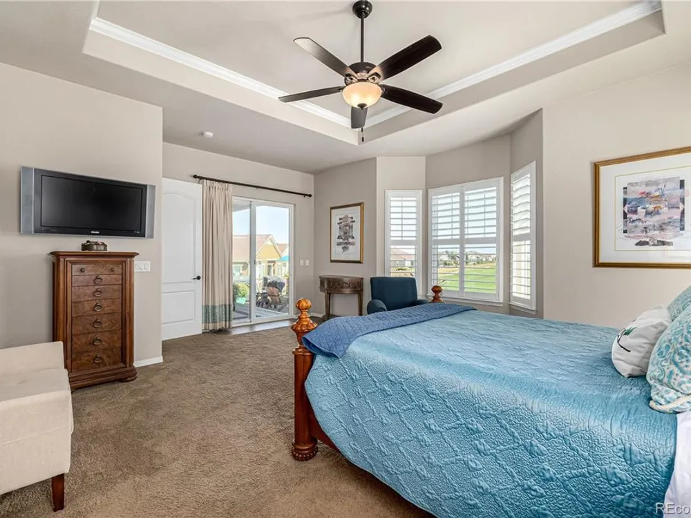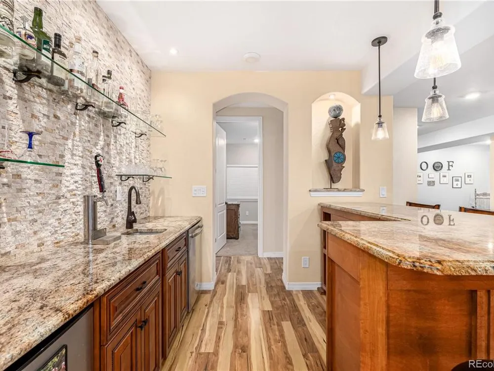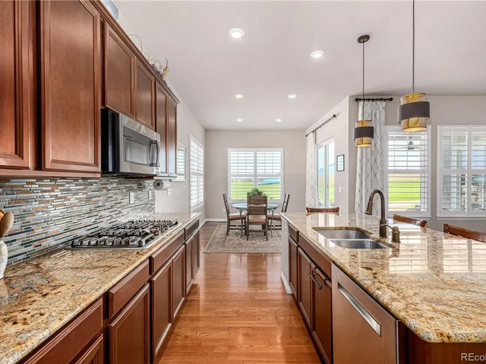 Welcome to your beautifully maintained home on a rare lot in sought after 55+ Heritage Todd Creek community! Nestled just off the 14th green, and across from the 15th fairway, the location offers a peaceful oasis off the back, and gorgeous views of the Rocky Mountains from a custom stone patio overlooking a beautifully manicured and professionally landscaped front yard. As you head inside, you are greeted by an abundance of natural light, an open floor plan, and hardwood floors. In the kitchen, you will find solid cherry cabinets accentuated w/ granite countertops, a bar-top island, upgraded gas range, upgraded dishwasher, dry bar, and butler’s pantry. The spacious breakfast nook is ideal for everyday dining and allows access to a large redwood deck overlooking the 14th fairway. Safely tucked back away from stray balls, this lot creates a perfect space to entertain, relax after a long day, or just take in the peace. Professionally landscaped backyard with low maintenance astroturf, and two raised gardens. As you head inside, warm your toes by the fireplace in your open living room. Off the primary bedroom, you will find a spacious bathroom with large shower, attached laundry, walk-in closet, and direct access to deck. In addition, the main level features plantation shutters, guest bedroom, dining room, and extra room that could be used as an office or 4th bedroom. As you head downstairs, you are greeted by a warm space, perfect for entertaining. It features 9-foot ceilings, guest room, bathroom with jacuzzi, an inviting family/game room w/ large fireplace & stone surround, a custom, built-in wet bar w/ beer tap, bar top w/ extra seating, tons of storage, and flex space for a workout or movie room. Heritage Todd Creek offers resort-style amenities, and a vibrant community that enhances everyday life. This home isn't just a residence—it's a lifestyle! Play some golf, relax by one of the two pools, enjoy a game of pickleball w/ friends, and soak in all that HTC offers!