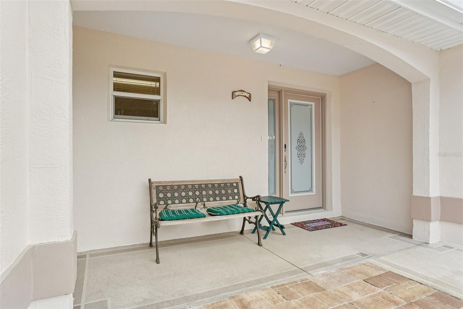 This No-Bond Fair Oak model offers 3 bedrooms, 2 baths, a rare 3-car garage, and sits on a desirable corner lot with block and stucco construction. Major updates provide peace of mind, including a 2022 roof, a 2025 Lennox HVAC system with a 10-year parts warranty, new exterior paint in 2025, and a 2025 water heater. Inside, the home features oak engineered hardwood flooring throughout with no carpet. The kitchen was completely renovated in 2021 with new cabinetry featuring pull-outs, granite countertops, stainless steel appliances, a refrigerator with dual ice makers, a super-heated instant hot water unit under the sink, and new LED lighting. Additional upgrades include a digital front door lock, remote-controlled brushed nickel LED ceiling fan/LED lights installed in 2026, new LED lighting in both bathrooms (2025–2026), and a second bath with a whirlpool tub. The exterior and mechanical systems have been thoughtfully improved with new gutters and downspouts (2021), a new sprinkler system installed by Massey (2021), a termite barrier system (2019), and a water softener updated in 2025 including the computer board. A newly built paver patio extends the front porch, adding outdoor living space. The rare 3-car garage includes a mini-split unit and extensive built-in cabinetry. The driveway connects from one street to another, allowing for additional guest parking. A mandatory amenity fee of $204 a month provides access to all The Villages’ amenities, and there is no HOA. Conveniently located close to shopping, dining, banking, grocery stores, and medical facilities. Schedule your private showing today or request a FaceTime tour if you are not local.