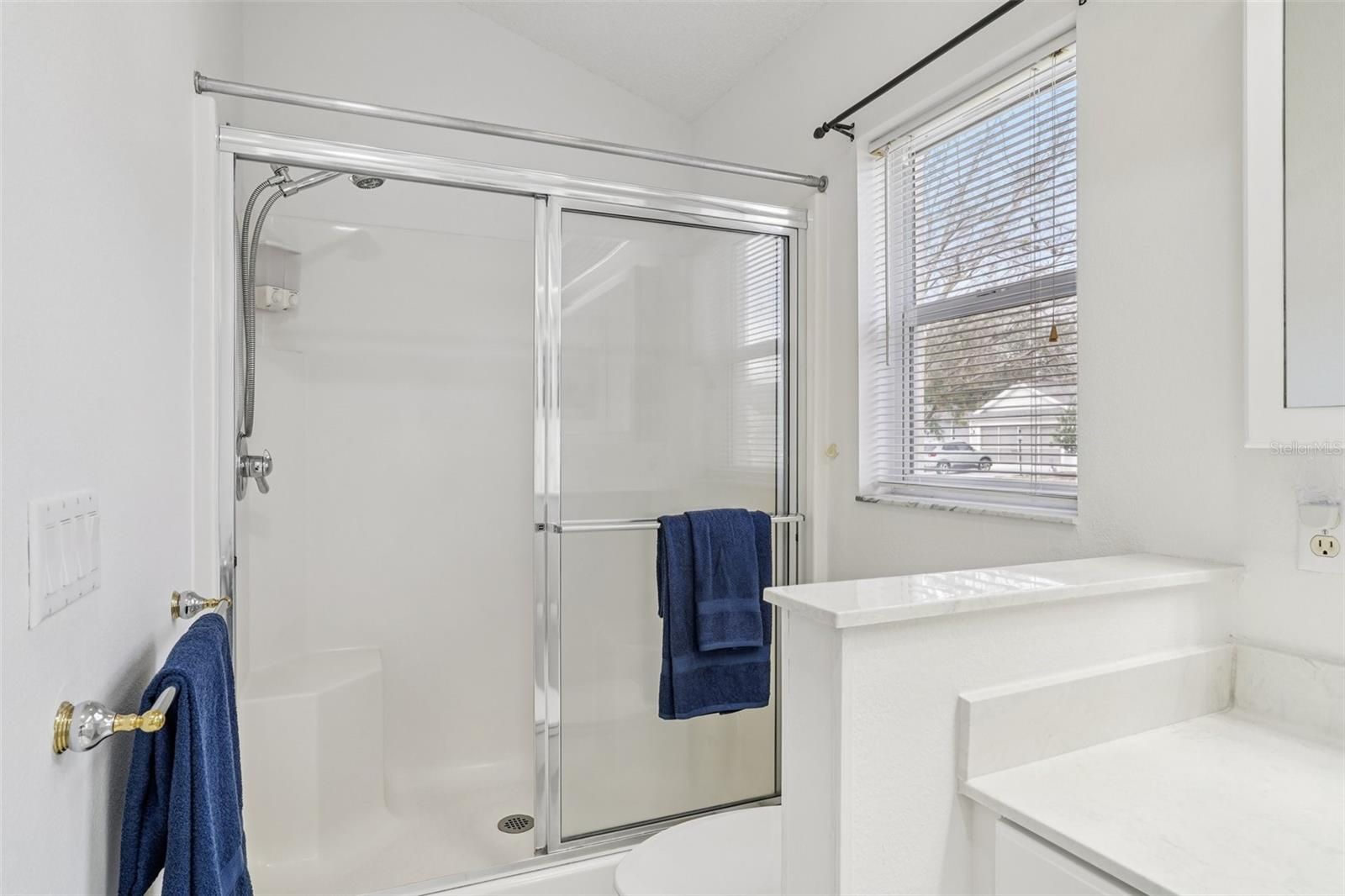 - Ceiling Fan(s), Eat-in Kitchen, High Ceilings, Main Level Primary, Stone Counters, Walk-In Closet(s), Window Treatments