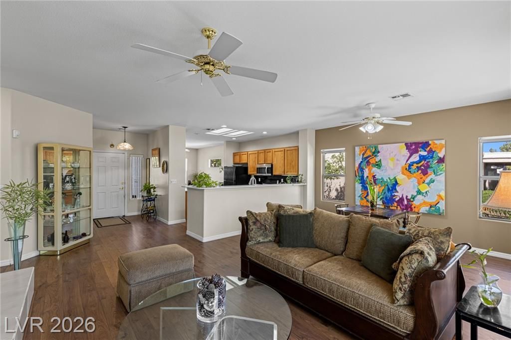 Discover refined living in one of Henderson’s premier 55+ communities. This bright, turnkey residence features thoughtfully curated finishes and a smart, functional layout tailored to active-adult lifestyles. The generous primary suite provides comfort and privacy, while inviting living spaces are ideal for relaxing or entertaining. Enjoy a vibrant calendar of clubs, fitness classes, and social events. Ideally situated near shopping, dining, golf, and medical services, this home offers an elegant blend of convenience, community, and elevated everyday living.