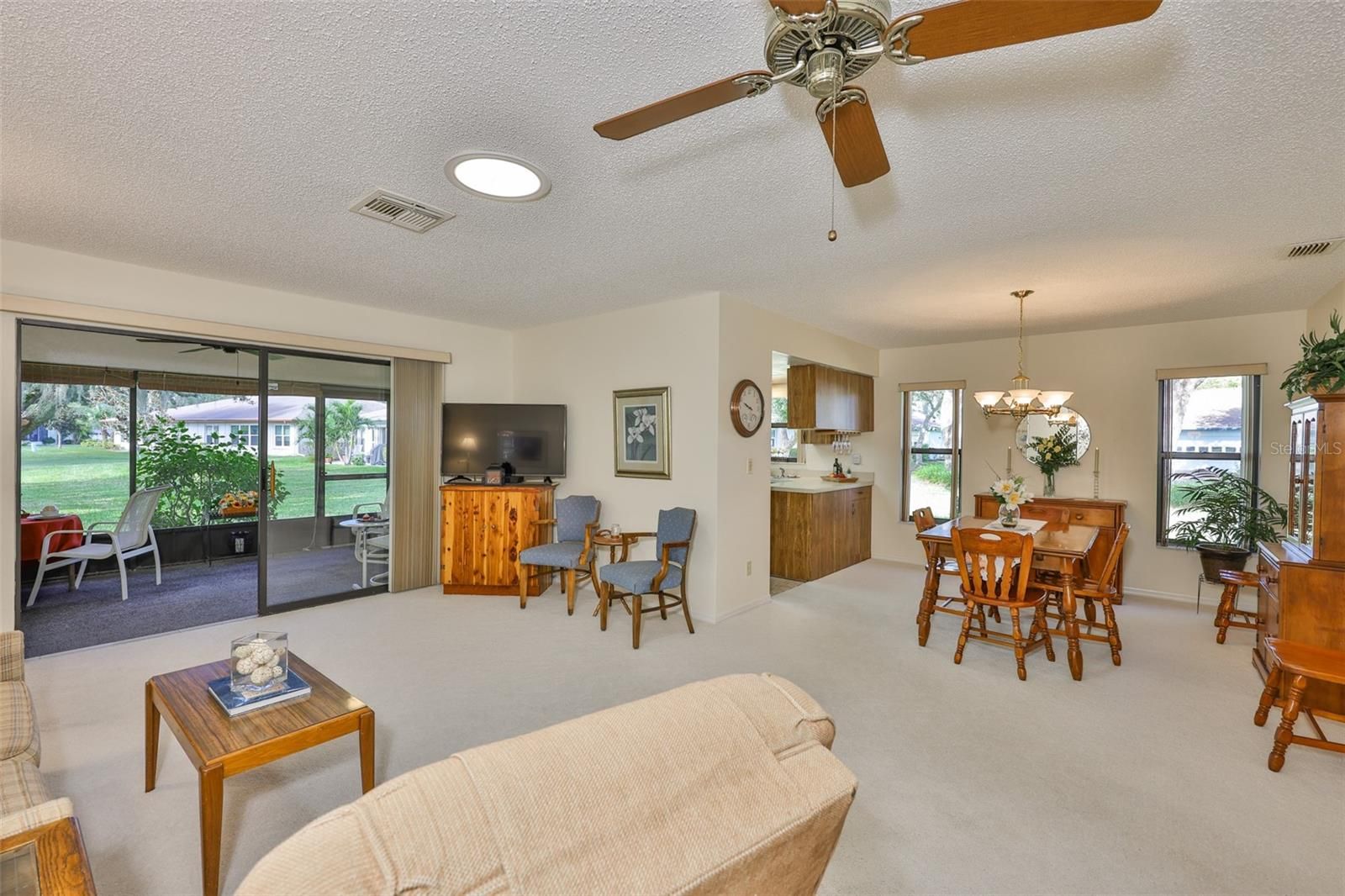 Welcome to this cozy and well-maintained Sunrise II model, featuring 2 bedrooms, 2 baths, and 1,394 sq. ft. of comfortable living space in the highly sought-after Lancaster III neighborhood of Kings Point. Perfectly situated in a rare private setting with no neighbors on either side, this home enjoys a peaceful tree-lined green space in the rear—creating a serene backdrop for everyday living. The eat-in kitchen with breakfast bar opens seamlessly to the dining and great room, ideal for both casual meals and entertaining. A thoughtfully designed split-bedroom floor plan ensures privacy, with the primary suite offering a private bath, a large linen closet, and two additional clothing closets. The guest bedroom and full bath are located separately with their own linen closet. An electrically operated solar tube in the living room provides adjustable natural light at the touch of a button. Additional highlights include ceramic tile in the foyer and baths, ceiling fans throughout, a spacious screened lanai with a Hunter fan, and generous extra storage in the garage with pull-down attic stairs. Recent upgrades provide added peace of mind: polybutylene plumbing has been replaced, electric roll-down hurricane shutters (back of home) with manual override installed, gutter guards added, and a painted garage floor with shelving. A water softener is also included. This home has been meticulously maintained with annual carpet cleaning, appliance servicing, and HVAC inspections through KPW Quality Complete Services. Residents will appreciate the close proximity to the heated community pool, as well as access to Kings Point’s many amenities—two additional clubhouses, multiple pools, fitness centers, tennis, pickleball, golf, restaurants, clubs, and social events. The Lancaster III association is known for strong financial management. The monthly COA fee of $798 covers internet, cable, water, sewer, exterior care, landscaping, pest control, insurance on the structure and common areas, irrigation, pool service, and 24-hour gated security. Kings Point’s golf cart–friendly lifestyle makes it easy to access shopping, dining, and medical facilities, with a community shuttle available for those who prefer not to drive. World-class Gulf Coast beaches are just a short drive away. This lovely condo is vacant and move-in ready. Some furnishings are available separately. Don’t miss the chance to own in one of Florida’s premier 55+ active lifestyle communities—schedule your private showing today!