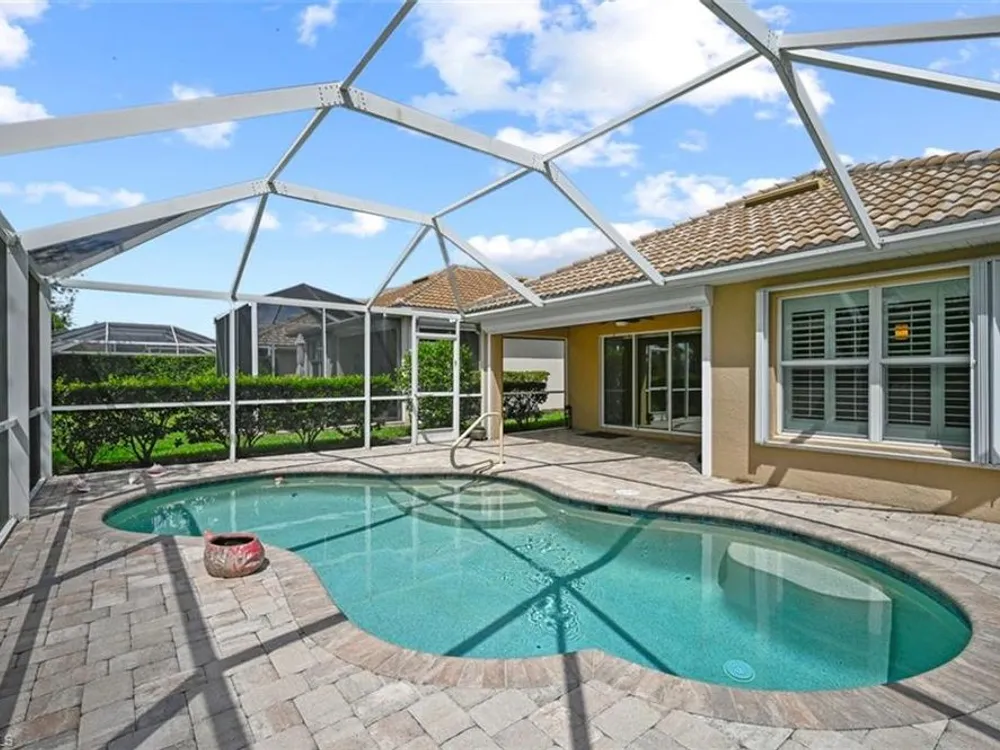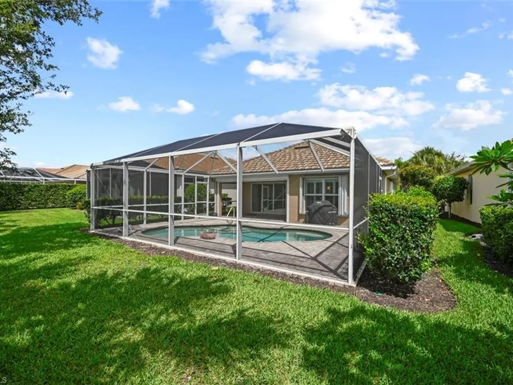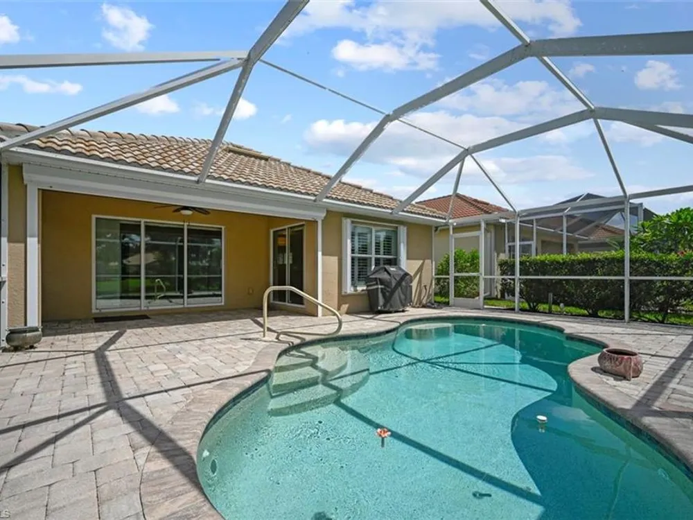 Come see this perfectly lovely & comfortable 3br/2bath/2 car garage home with a pool in the lovely Village Walk of Bonita Springs! Located on a tree lined street, this home has an open floor plan, gorgeous plantation shutters, a handsome kitchen overlooking the pool & lake view and has been well maintained. Take a short walk to the fantastic amenities with LOW HOA fees which include a gas station, car wash, tennis, pickle ball, 2 pools, fitness center, shops & restaurants - all inside the gates of Village Walk of Bonita! The easy lifestyle you've been looking for.