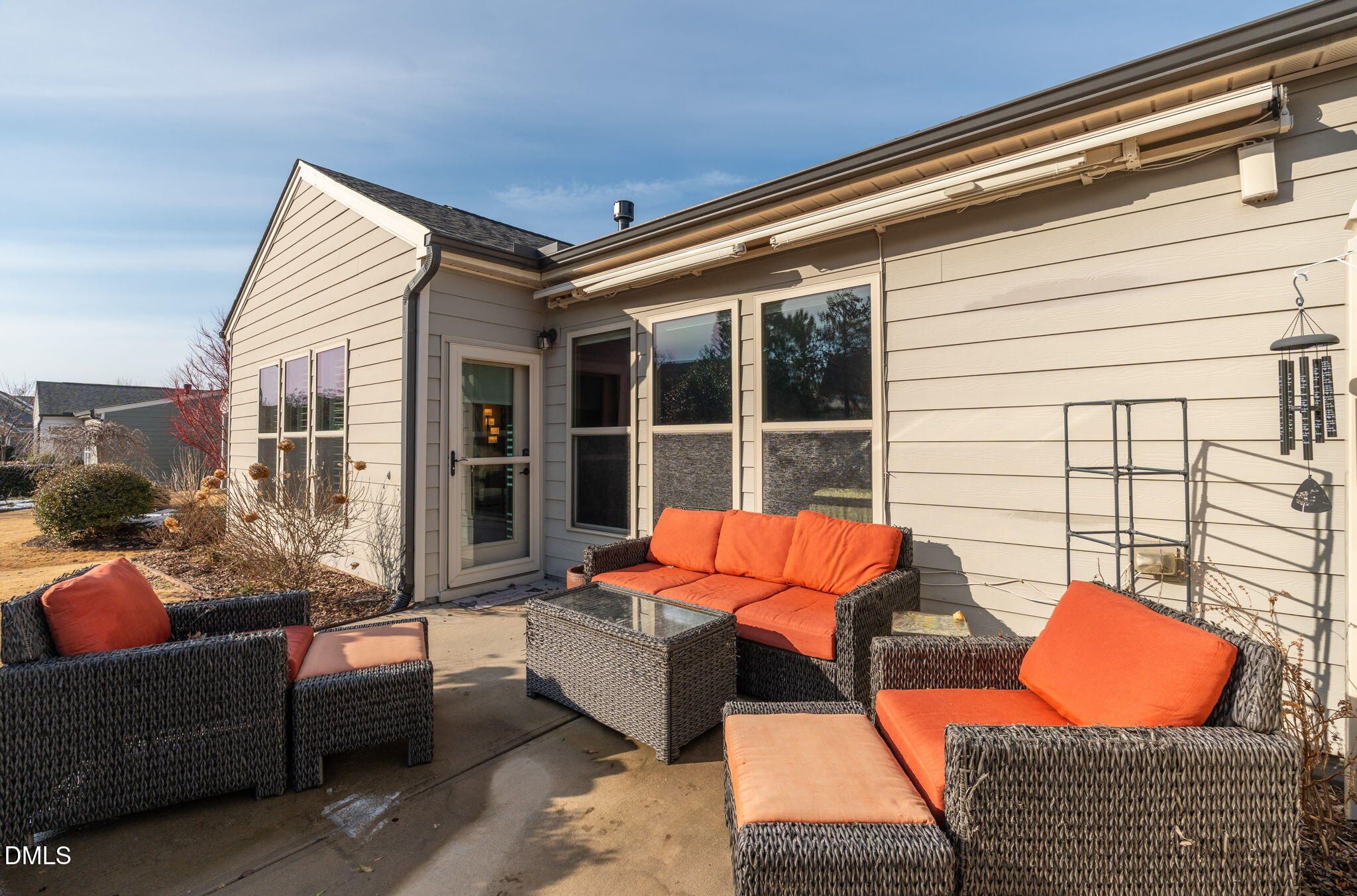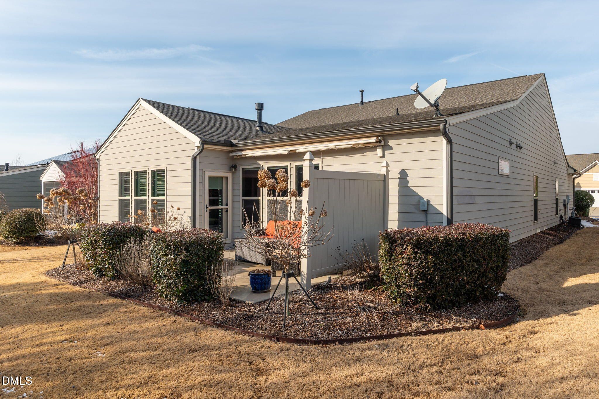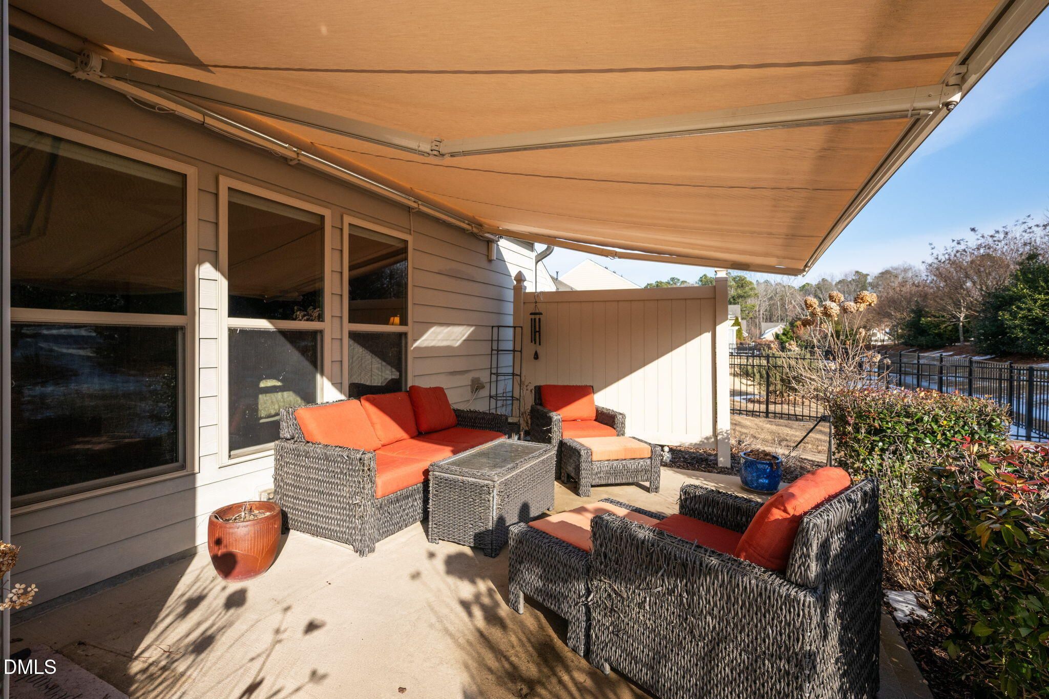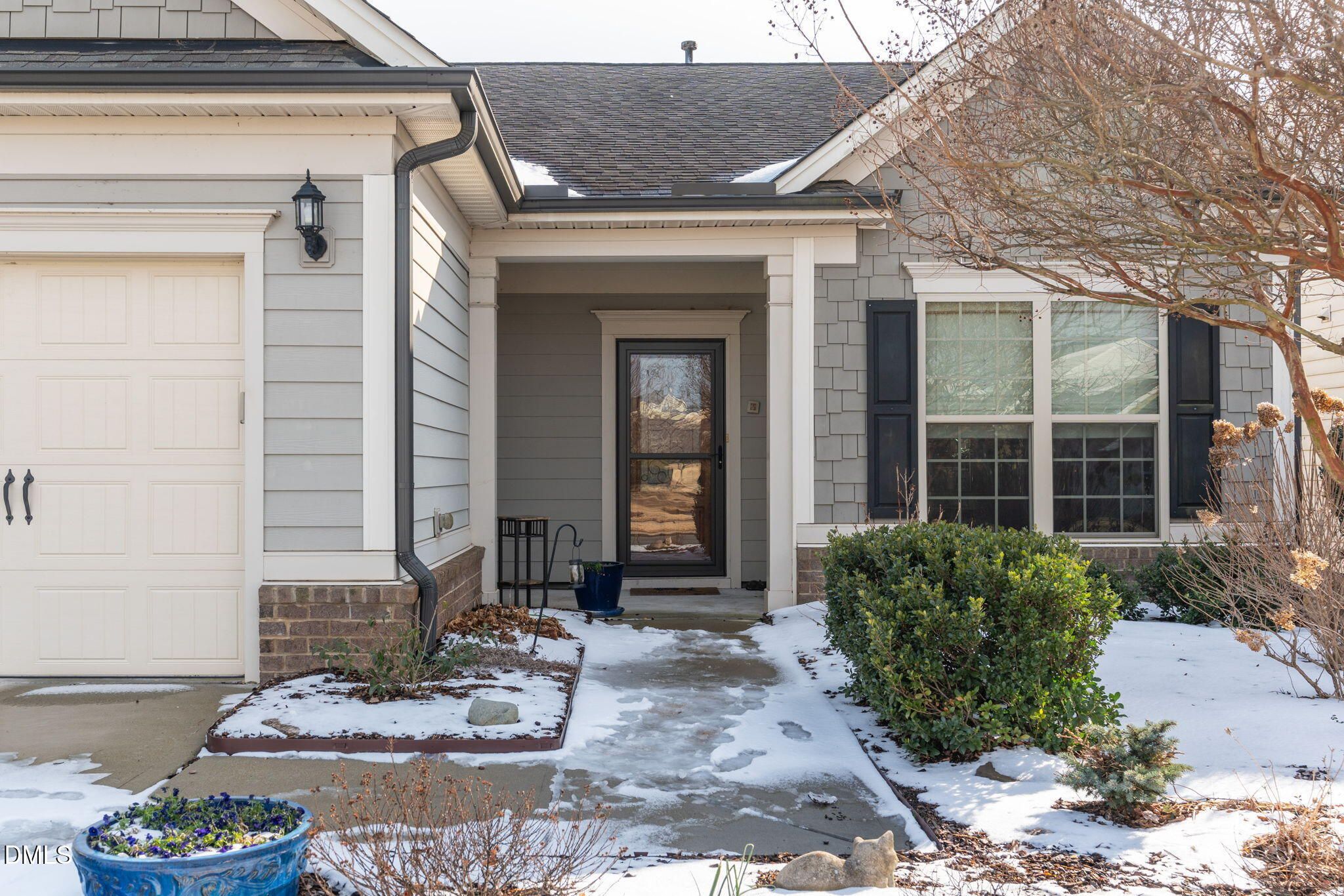 Beautifully refreshed and thoughtfully upgraded, this Martin Ray floor plan in Carolina Arbors offers refined 55+ living with comfort and style woven throughout. This spacious 3-bedroom, 2-bath ranch features brand new hard flooring throughout and fresh interior paint that creates a bright, cohesive feel from room to room. The sunroom is enhanced with classic plantation shutters, while custom shades add comfort and privacy throughout the rest of the home. Step outside onto the private patio and relax beneath the awning, recently serviced and ready to provide effortless shade. The kitchen is the heart of the home and is exceptionally well-appointed, featuring a large center island, granite countertops, rich wood cabinetry, stainless steel appliances, and a wall oven with built-in microwave. A wider walkway and raised dishwasher were thoughtfully designed for ease of use and aging in place. The adjoining butler's pantry includes added shelving for excellent organization and a small wine refrigerator, making entertaining both seamless and stylish. A dedicated office features custom built-ins, offering both function and polish. The primary suite includes a professionally designed custom closet system by Closets by Design, maximizing storage with style. Select upgraded light fixtures throughout the home add a fresh, modern touch. Additional practical enhancements include an EV charger in the garage and an invisible fence system for pets. Located just a short distance from the clubhouse and pool, and convenient to Brier Creek shopping and dining, residents enjoy resort-style amenities including a fitness center, indoor heated pool and spa, outdoor social pool, tennis, pickleball and bocce courts, croquet lawn, trails, arts and crafts studio, demonstration kitchen, ballroom, community garden, and more.