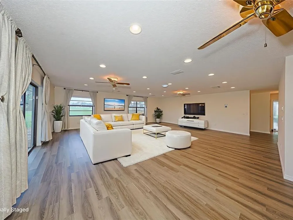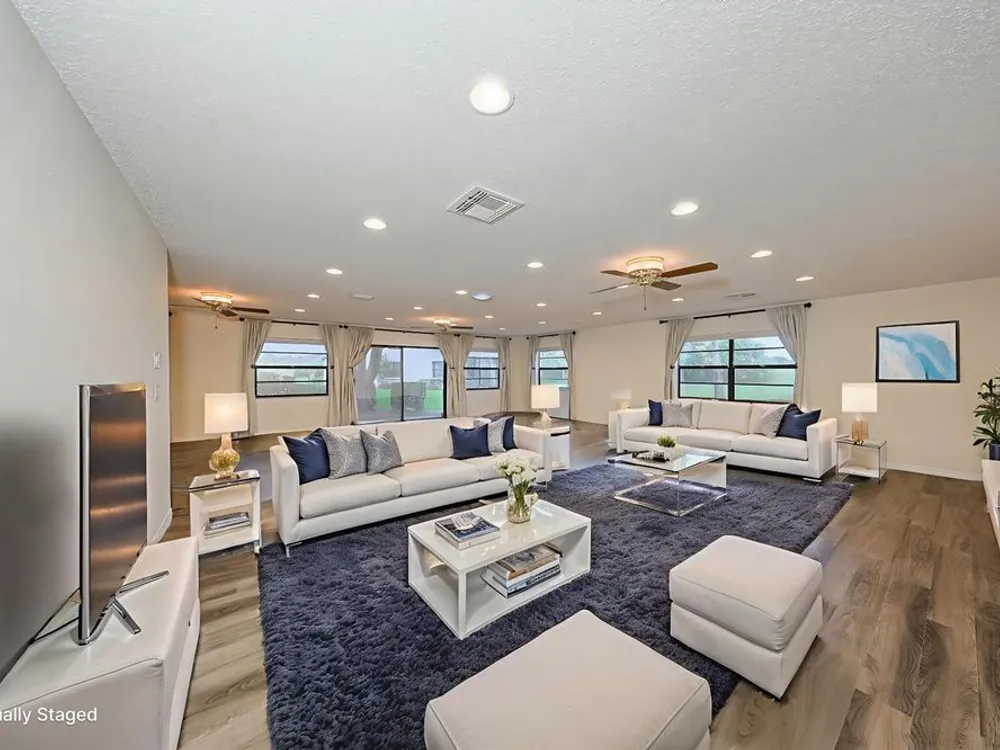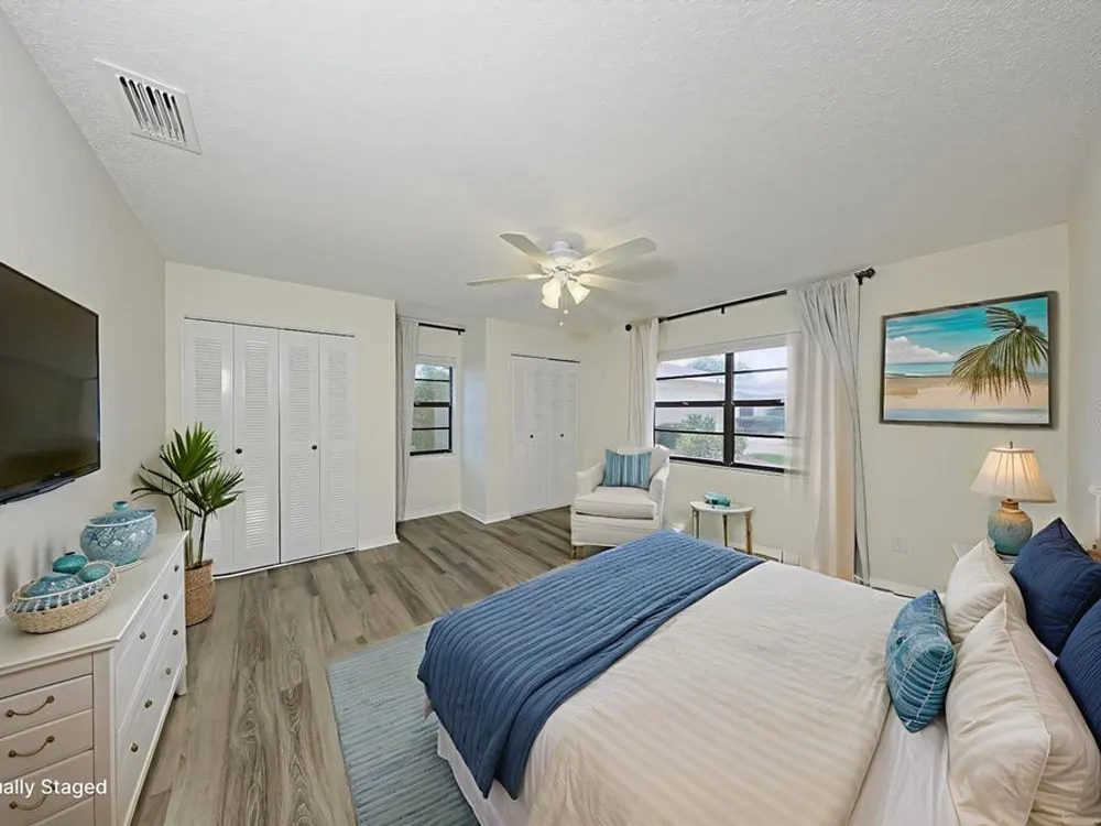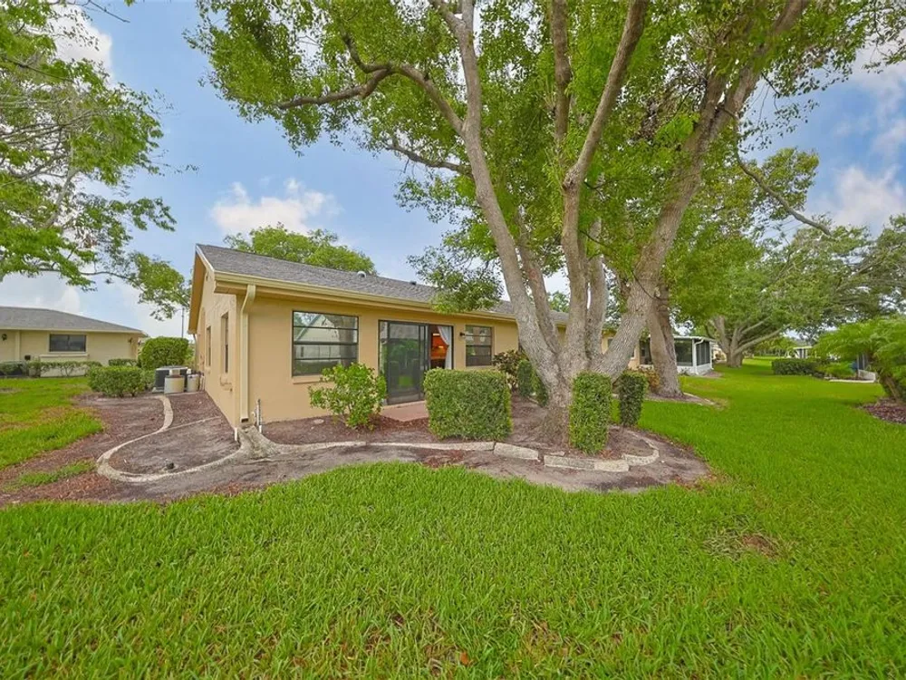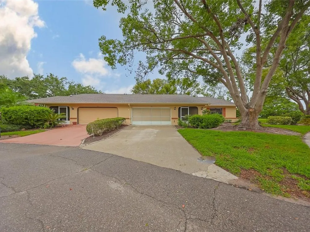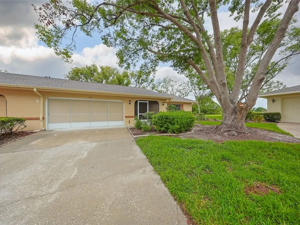 One or more photo(s) has been virtually staged. Discover abundant space and comfort in this expanded Sahara floor plan featuring a desirable split-bedroom layout. Situated in the Gated Community of Kings Point and a part of Sun City Center which was Recognized as the #1 Retirement Community for 2024 by Realtor.com and Travel + Leisure Magazine. This home has been nicely updated for modern living with expansive windows throughout the home offering peaceful views of surrounding green space. All windows have new blinds that may be raised from the bottom or lowered from the top for maximum flexibility. The garage is roomy enough for 2 cars and storage space. A fresh coat of paint was just completed for the exterior. Recent upgrades include new vanities in both the primary and guest bathrooms, luxury vinyl plank flooring (2022), a new electrical panel (2025), new roof (2025), new refrigerator (2025), hot water heater (2021), and HVAC system (2019). The generous primary suite boasts a custom-designed walk-in closet. All walls and ceilings have a fresh coat of paint. Enjoy your morning coffee or evening drink on the inviting screened front porch. Additional highlights include upgraded toilets with bidet attachments in both bathrooms and Updated LED recessed lighting with dimmer switches throughout the main living area. There is room on the back for the addition of a 10 X 25 Screened Lanai. Living in Kings Point means access to a truly resort-style lifestyle. Take advantage of world-class amenities including the North Clubhouse with indoor and outdoor pools, spas, and Veterans Theatre. The South Club has both indoor and outdoor pools and SPA/Hot tub, the popular Sports Bar for watching your favorite team and Palm Court Cafe for breakfast lunch and dinner, plus a fitness center and stained glass studio. Then there is the Nantucket Pool for quiet relaxation and another SPA/Hot tub. The 2020 Centre houses the Ladies Serenity SPA plus a world class fitness center. Other activities include pickleball, golf, lawn bowling, billiards, cards, model railroad, stained glass, pottery, and live shows at the Veterans Theater. The entire community is golf cart accessible for convenient access to shopping, medical facilities, and social events. Luxury, comfort, and community await, welcome to your new home!