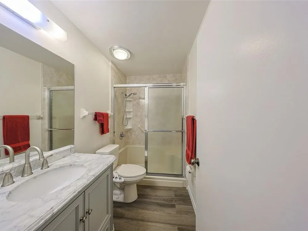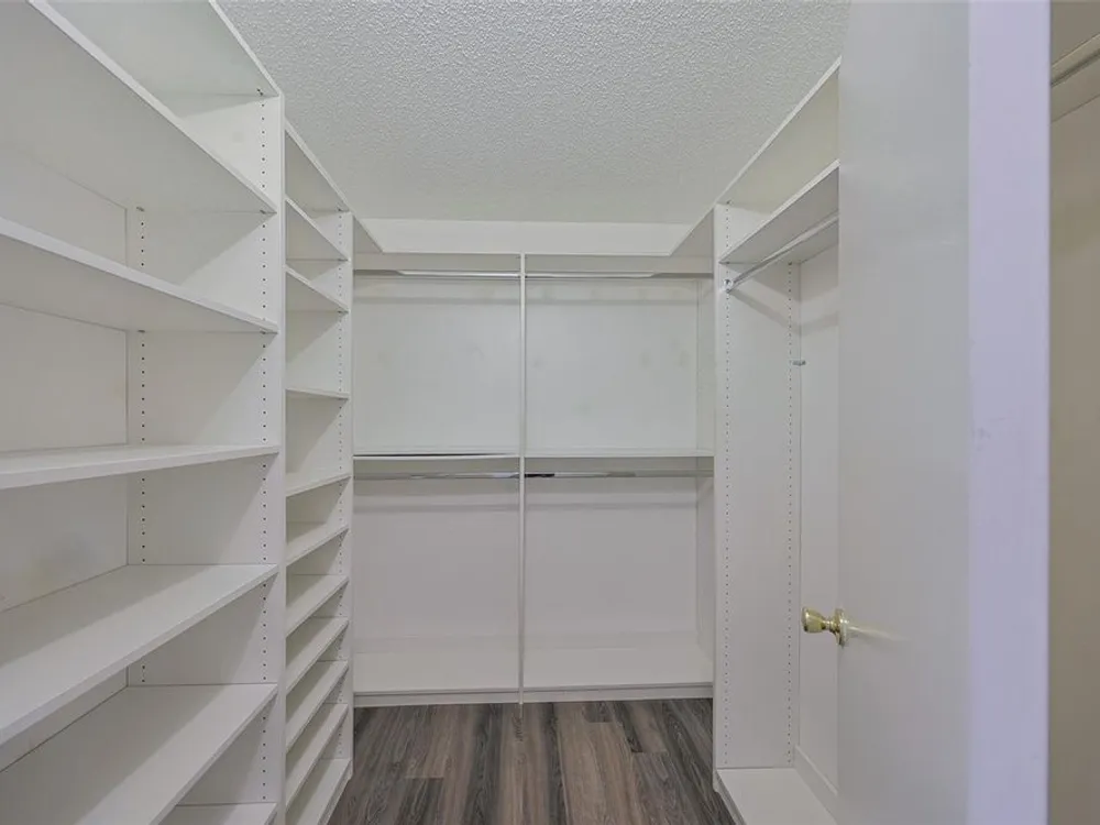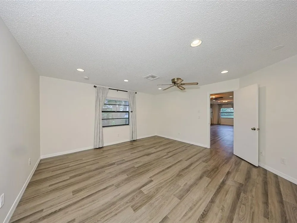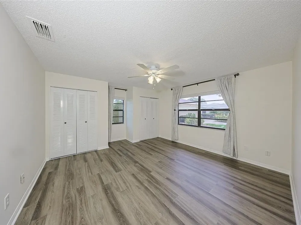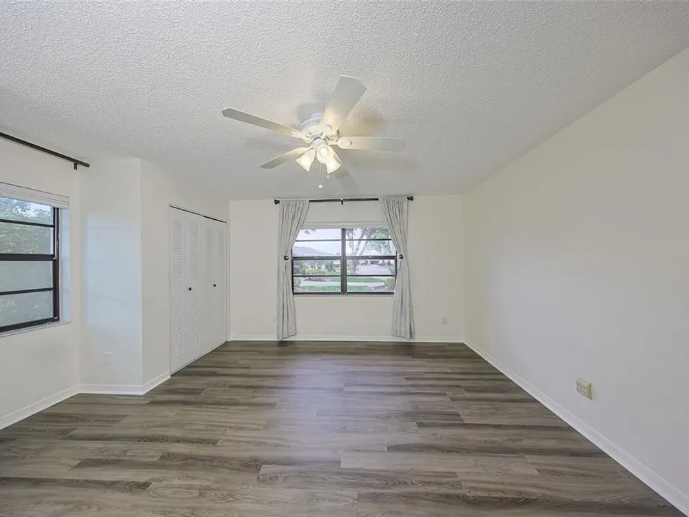 - Living/Dining Room, Main Level Primary, Split Bedrooms, Stone Counters, Thermostat, Walk-In Closet(s), Window Treatments