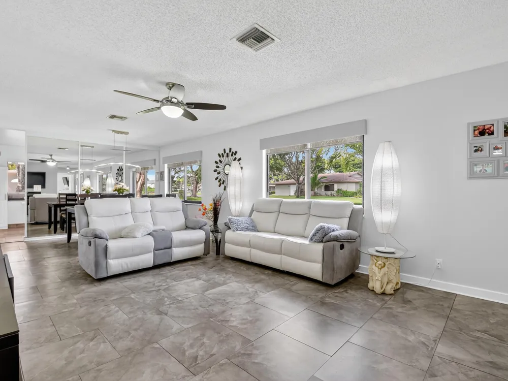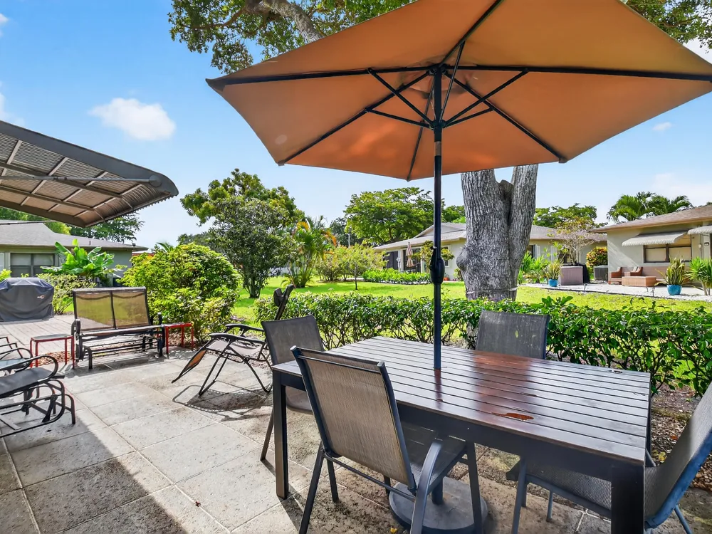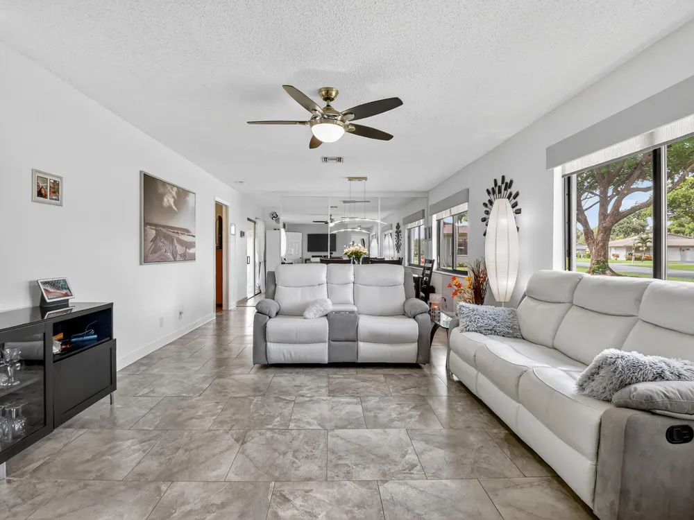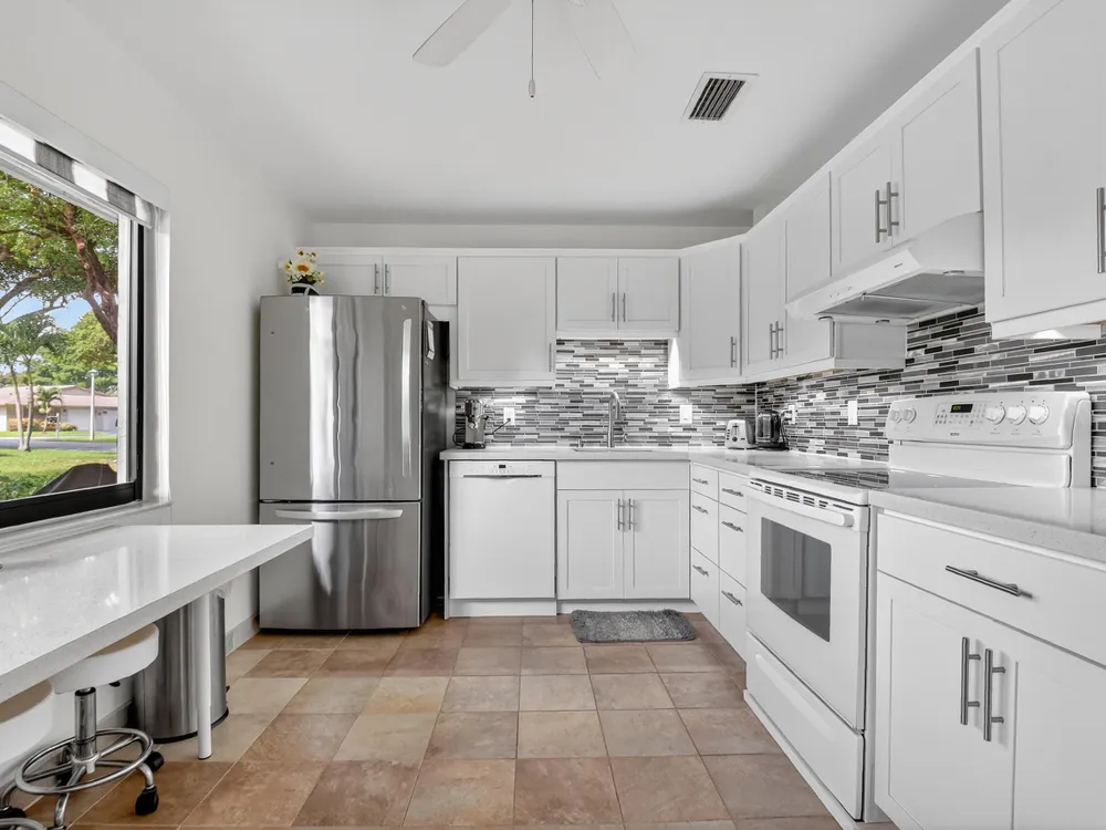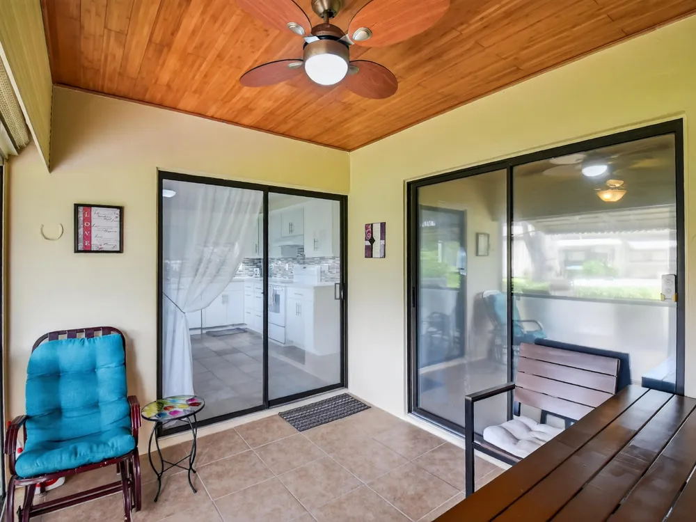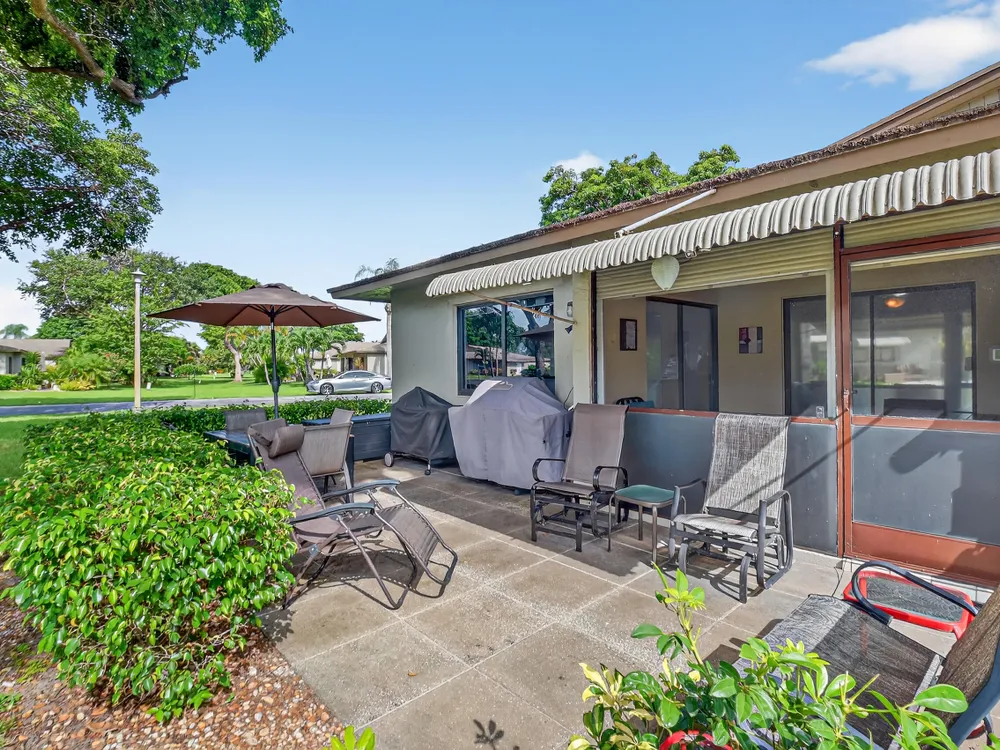 Pack your bags (offered turnkey or furnished subject to exclusions) and move into this ''stunning'' updated 2 bedroom/2bath/1car garage villa where all the work has been done for you. Step inside to a bright, open layout where modern upgrades meet timeless comfort. Just perfect for cooking and entertaining, the kitchen has been updated with quartz counters, tile back splash and newer appliances. Both bathrooms have been beautifully redone, showcasing quality finishes and a clean, contemporary design. Hurricane impact windows and Hurricane entry doors ( 2023) provides peace of mind and energy efficiency. New electric panel (2023). Outdoor patio, perfect for entertaining or relaxing has views of wide open spaces between well maintained green-belt areas. Maintenance includes water