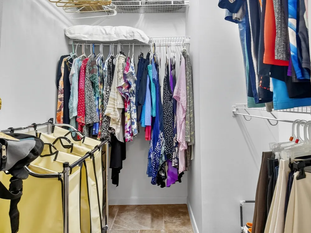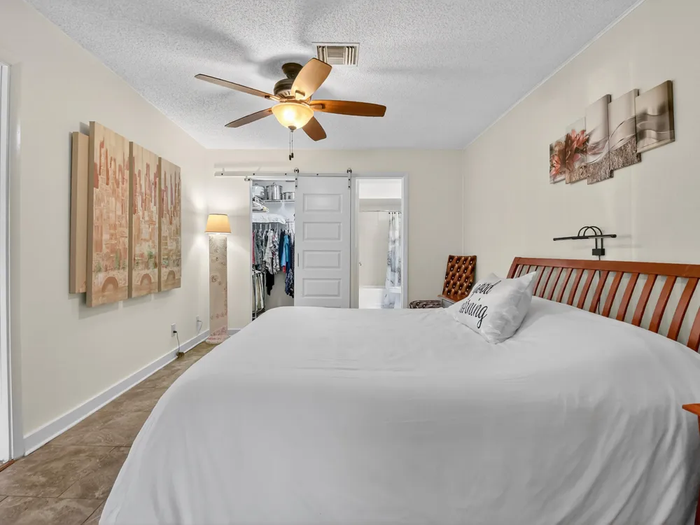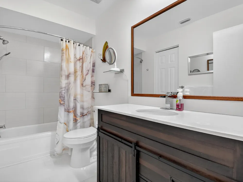 - Entry Level Living Area, Pull Down Attic Stairs, Split Bedrooms, Walk-In Closet(s), Florida Room, Living/Dining Room, Tub Shower