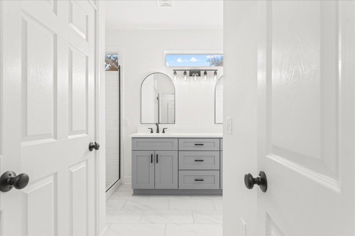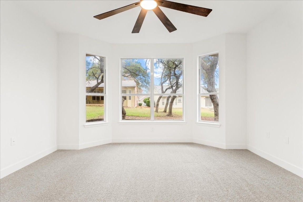Welcome to 151 Dan Moody Trail, this beautiful Sun City Texas residence has been COMPLETELY REMODELED! New finishes include stainless steel kitchen appliances, updated LED recessed lighting throughout, quartz countertops in the kitchen and bathrooms, new plumbing fixtures, new luxury vinyl plank flooring throughout the main living areas, new carpet in bedrooms, fresh interior paint, and new 42" pearl grey soft close cabinets throughout. The oversized primary suite features a bay window, walk-in closet, a brand new oversized walk-in shower with mudset flooring, a frameless glass enclosure and double vanity with upgraded fixtures and lighting. The utility room has upgraded upper and lower cabinets for ample storage and is the access point to the 2 car garage, refreshed for your immediate move-in. This popular open concept floorplan with high ceilings is perfect for entertaining family and friends. The large covered front porch is the perfect spot to enjoy morning coffee and the large back porch has plenty of space for outdoor dining and seating. Sun City is a 55+ community offering a vibrant lifestyle and luxurious living with world-class amenities including several golf courses, fitness centers, swimming pools, library, dog park, walking trails, ponds, pickleball, tennis, bocce ball, shuffleboard, table tennis, woodworking, and so much more! Located just a few minutes from historic and charming Georgetown, I-35, retail, medical, and restaurants.