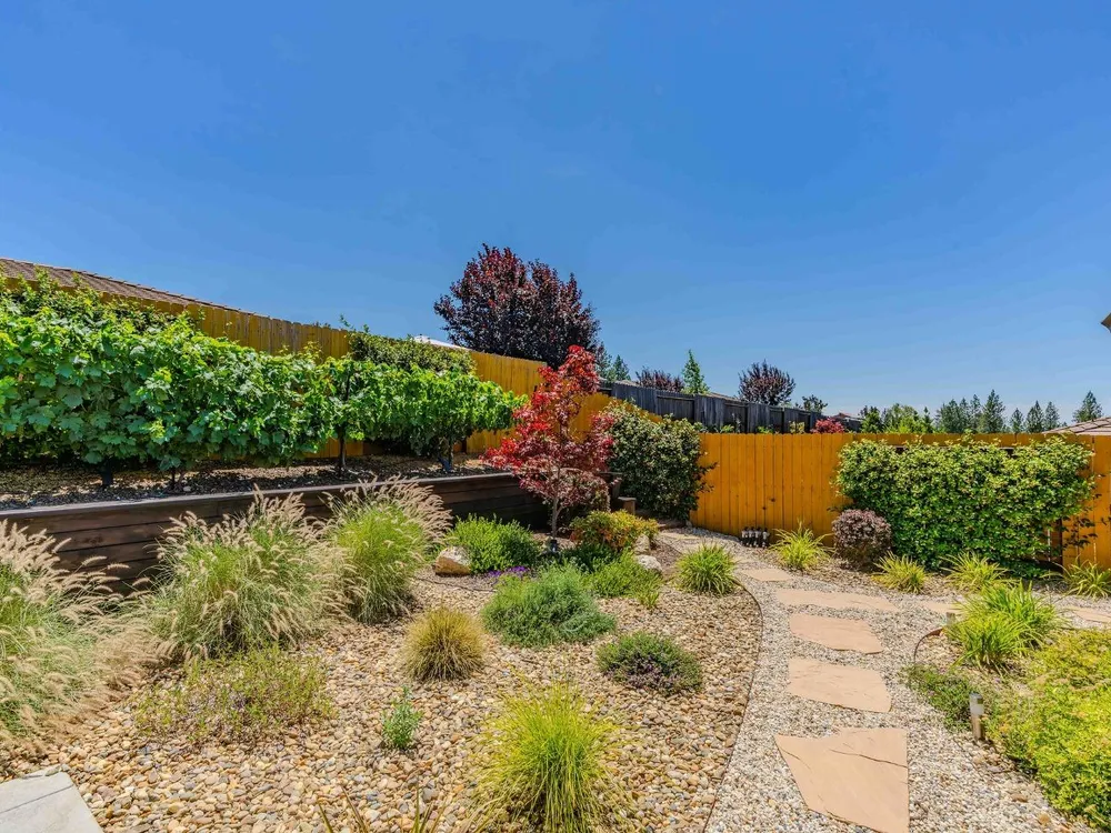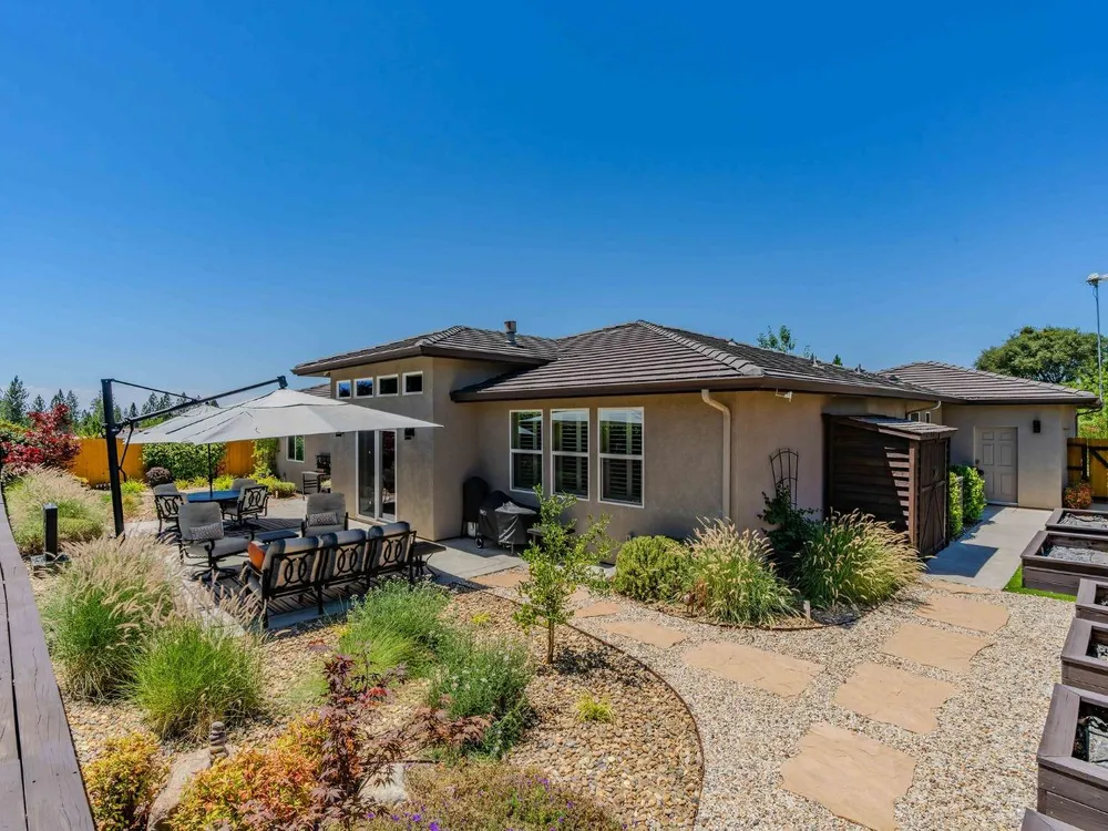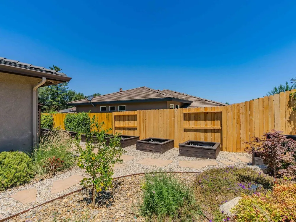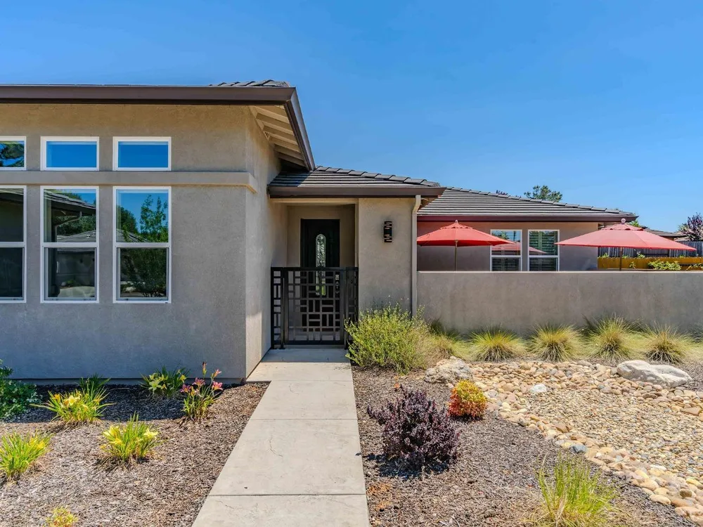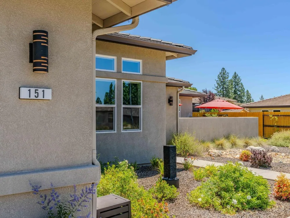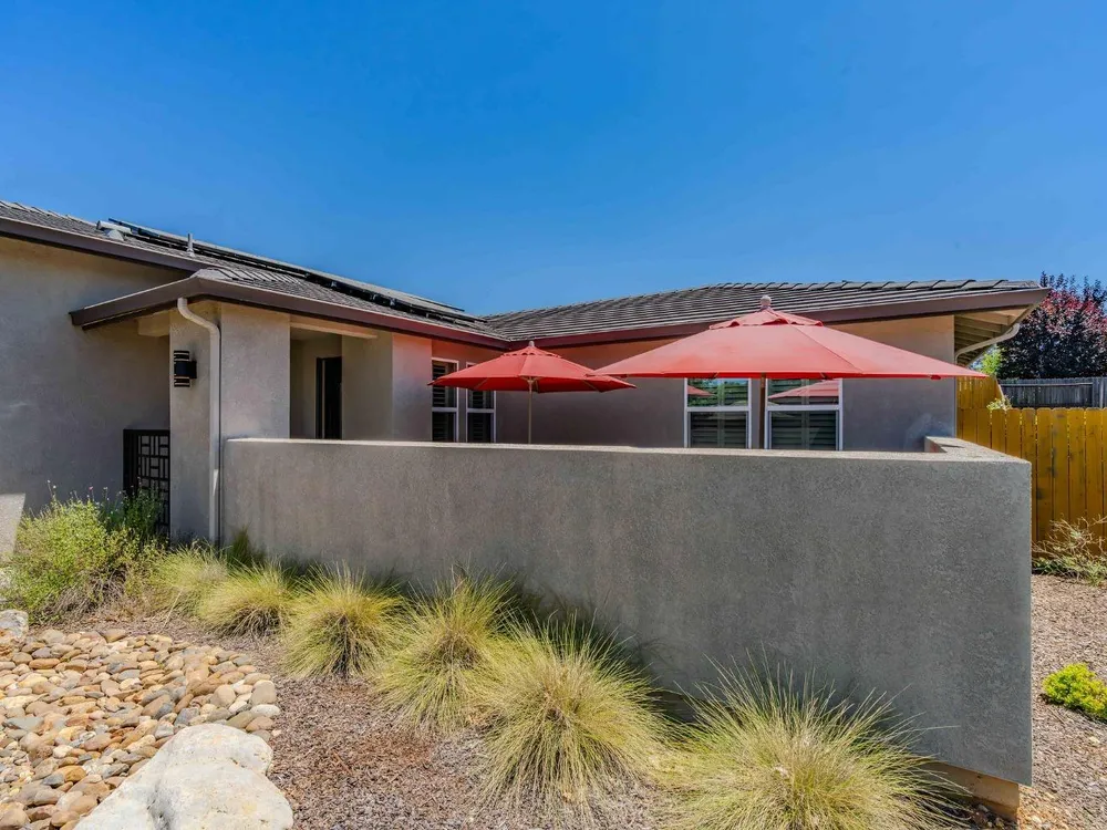 If you're looking for a gorgeous 3 bedroom, 2 bath contemporary home in a quiet, gated 55+ adult community, you've found it. From the moment you step through the home's custom front gate into the cozy courtyard, you feel a sense of peace. The open concept floor plan and large kitchen make cooking and socializing easy. Neutral flooring and decor are suitable for any decorating style. This home has over $85K in exterior and interior upgrades, including an owned solar system, a wine bar with two 175-bottle wine refrigerators, roll-out drawers in all the kitchen base cabinets, custom plantation shutters and window shades, a primary bedroom closet system, and lush landscaping including eleven Zinfandel grape vines. The spacious, private backyard with its large patio is perfect for lounging and entertaining. The six raised bed garden boxes and gardener's shed that run along one side of the yard are a vegetable/herb gardener's dream. The community offers a beautiful clubhouse that includes workout equipment, a game room, a kitchen and two community rooms. The home is conveniently located right around the corner from historic downtown Jackson and other shopping and dining and is a 20-minute drive to nearby Amador wine country.