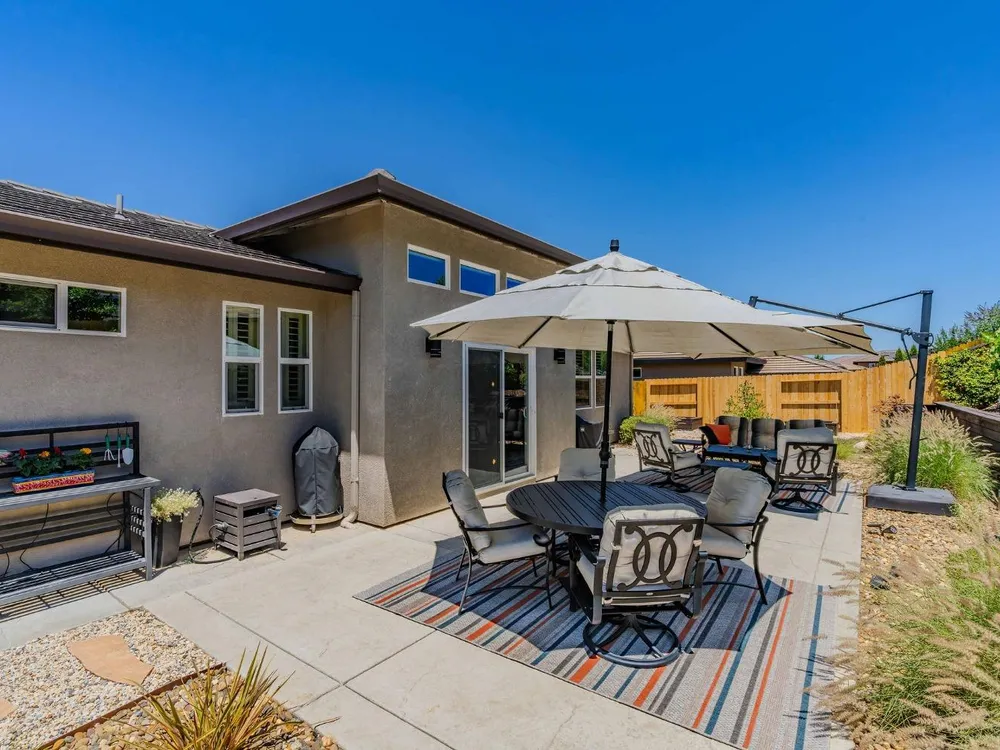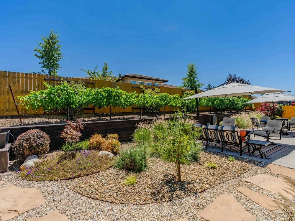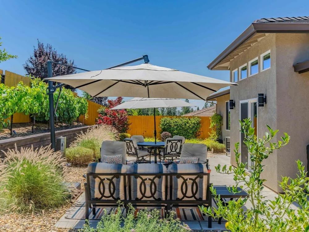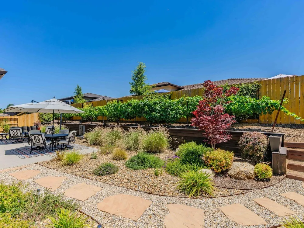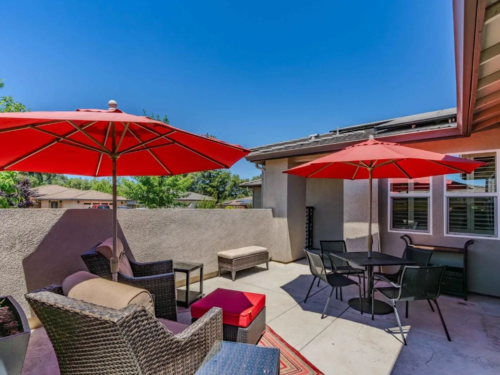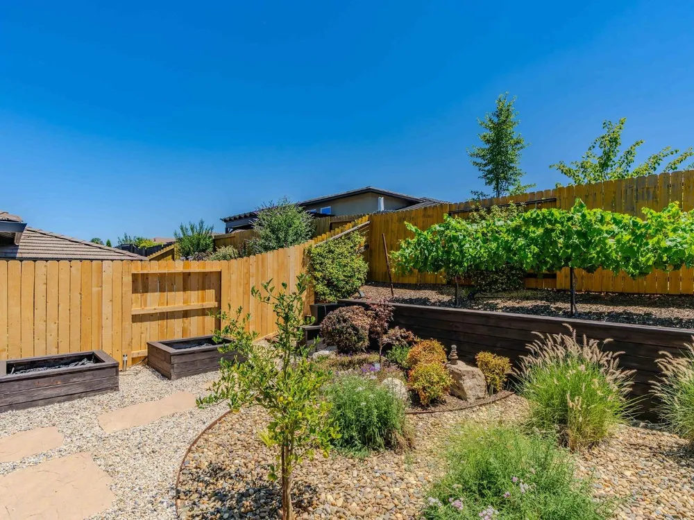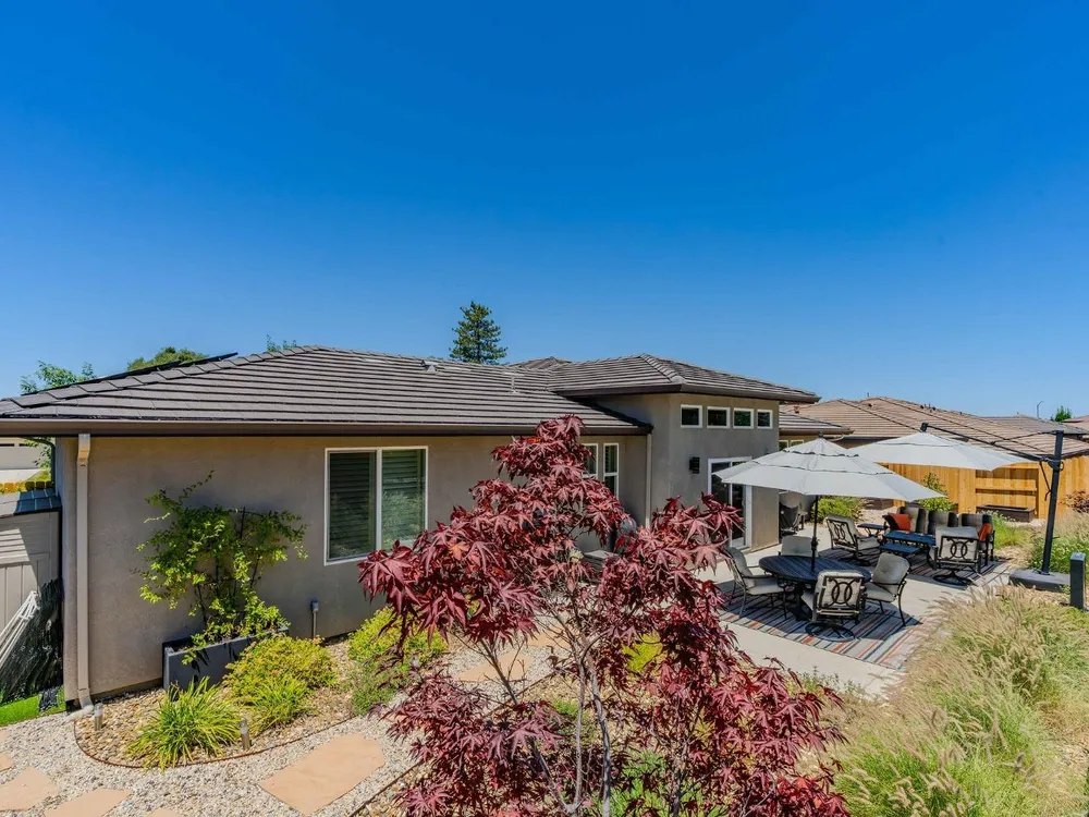 If you're looking for a gorgeous 3 bedroom, 2 bath contemporary home in a quiet, gated 55+ adult community, you've found it. From the moment you step through the home's custom front gate into the cozy courtyard, you feel a sense of peace. The open concept floor plan and large kitchen make cooking and socializing easy. Neutral flooring and decor are suitable for any decorating style. This home has over $85K in exterior and interior upgrades, including an owned solar system, a wine bar with two 175-bottle wine refrigerators, roll-out drawers in all the kitchen base cabinets, custom plantation shutters and window shades, a primary bedroom closet system, and lush landscaping including eleven Zinfandel grape vines. The spacious, private backyard with its large patio is perfect for lounging and entertaining. The six raised bed garden boxes and gardener's shed that run along one side of the yard are a vegetable/herb gardener's dream. The community offers a beautiful clubhouse that includes workout equipment, a game room, a kitchen and two community rooms. The home is conveniently located right around the corner from historic downtown Jackson and other shopping and dining and is a 20-minute drive to nearby Amador wine country.