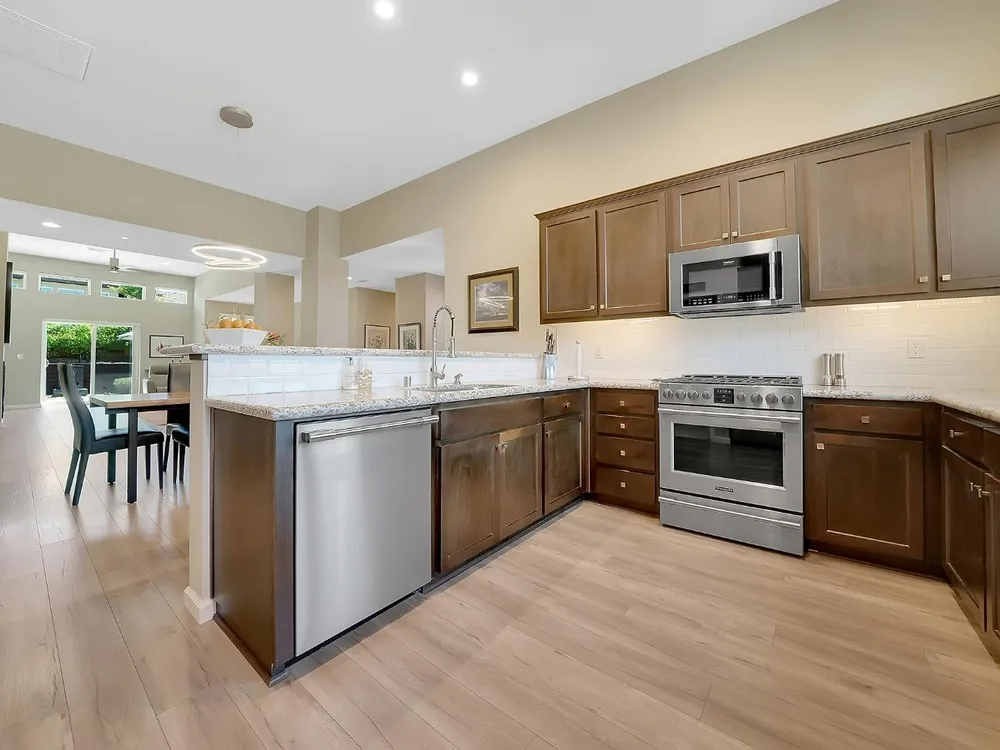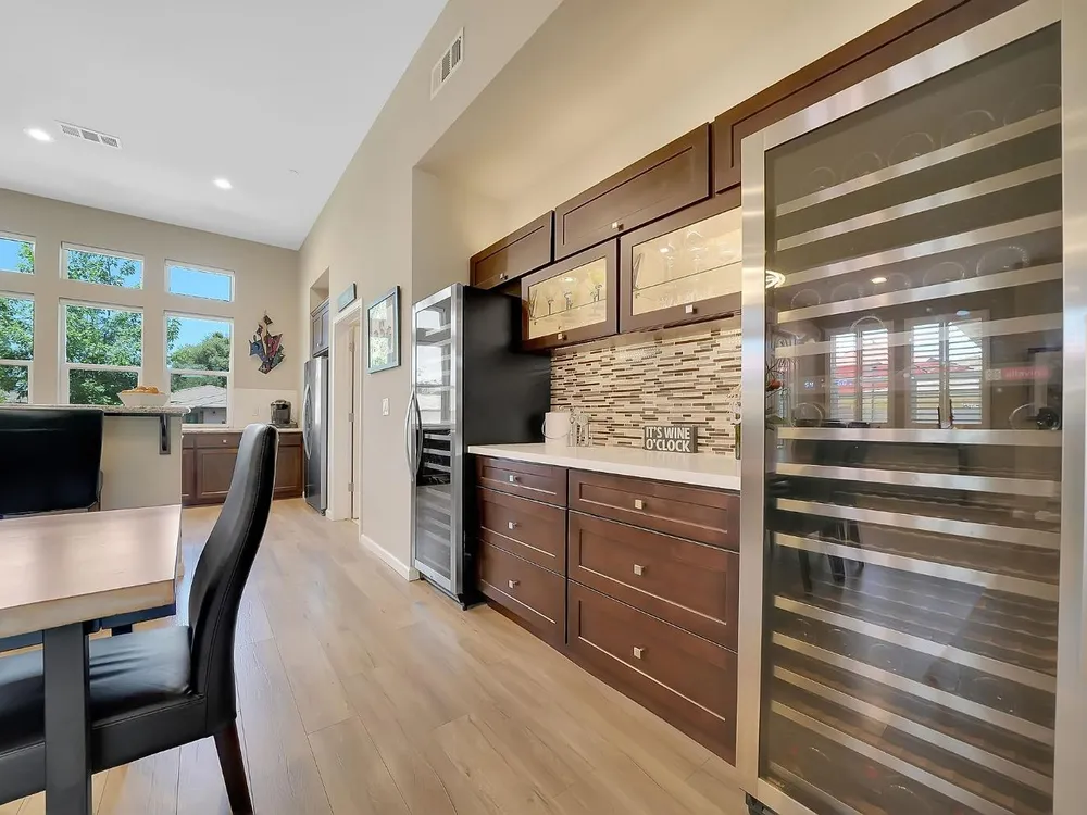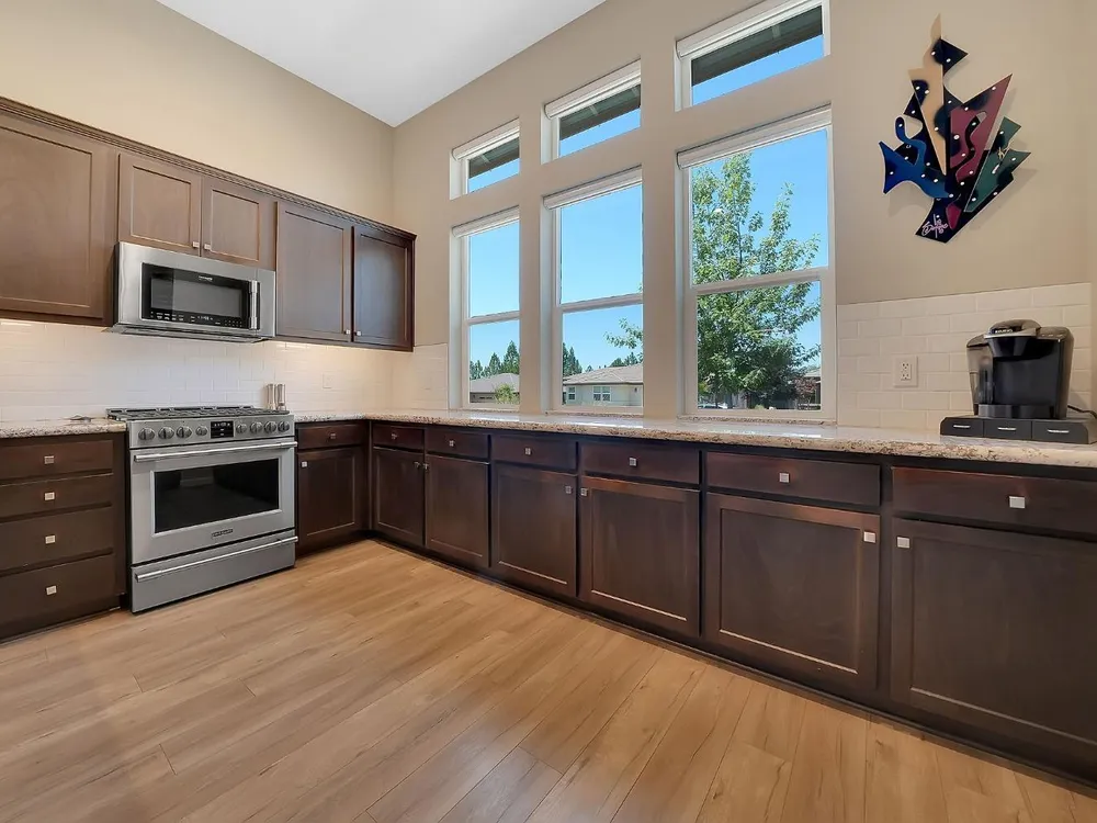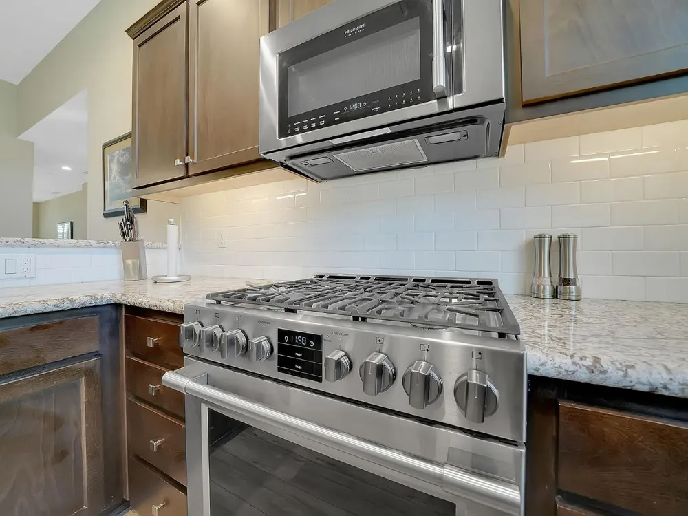 - Built-In Gas Range, Ice Maker, Dishwasher, Disposal, Microwave, Plumbed For Ice Maker, Self Cleaning Oven, Tankless Water Heater, Wine Refrigerator