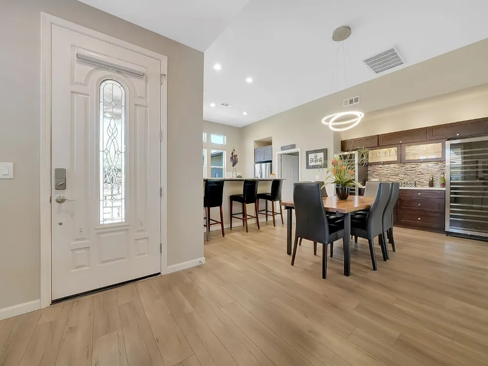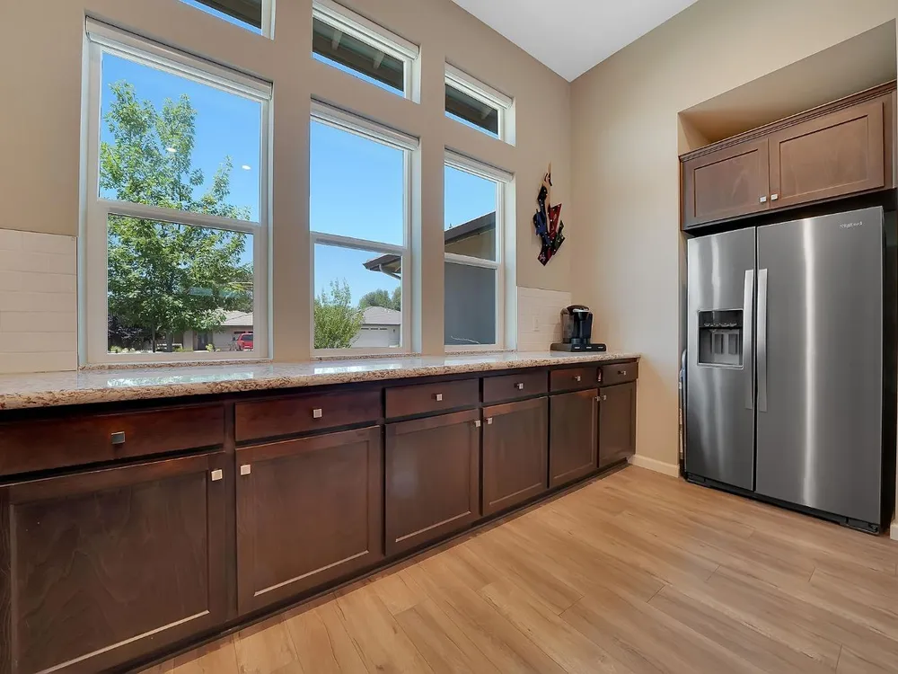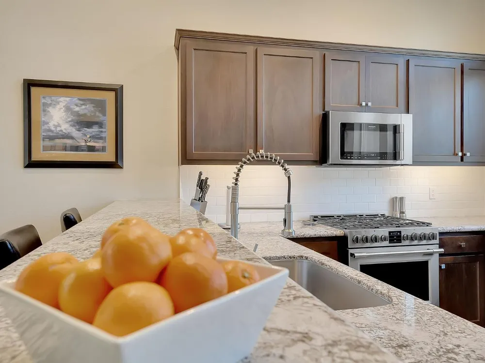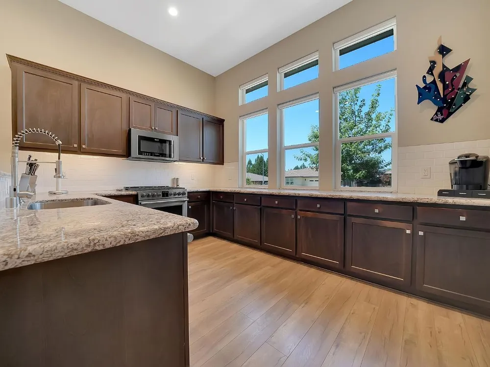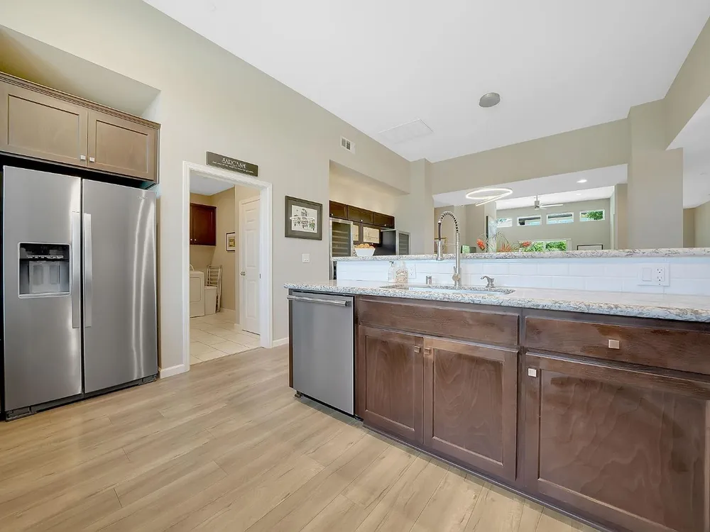- Built-In Gas Range, Ice Maker, Dishwasher, Disposal, Microwave, Plumbed For Ice Maker, Self Cleaning Oven, Tankless Water Heater, Wine Refrigerator
