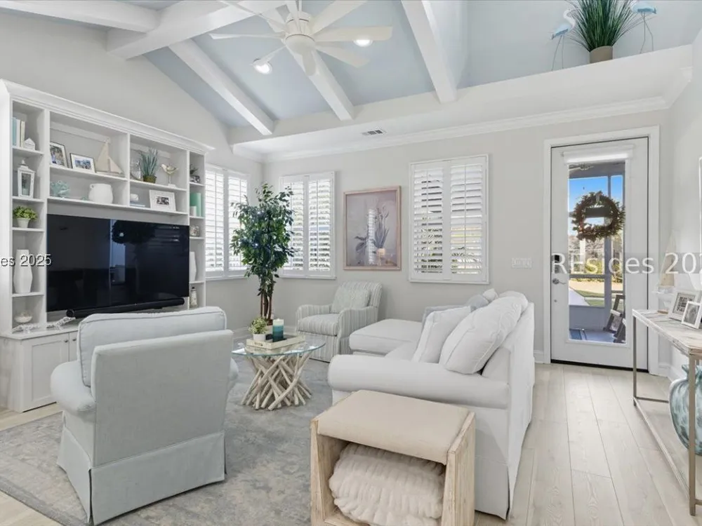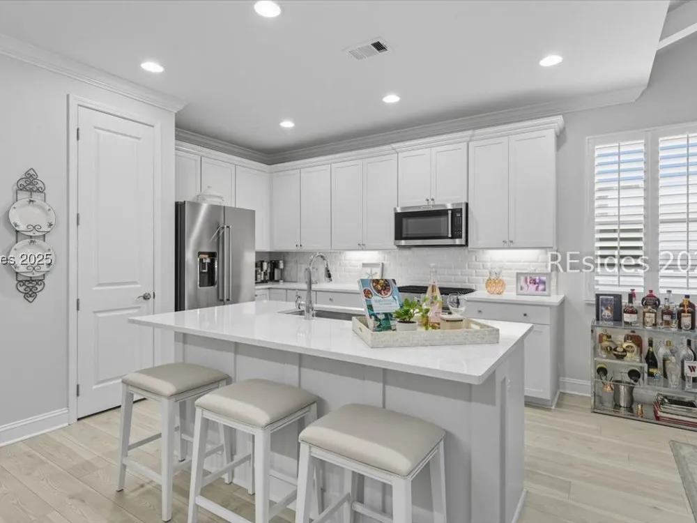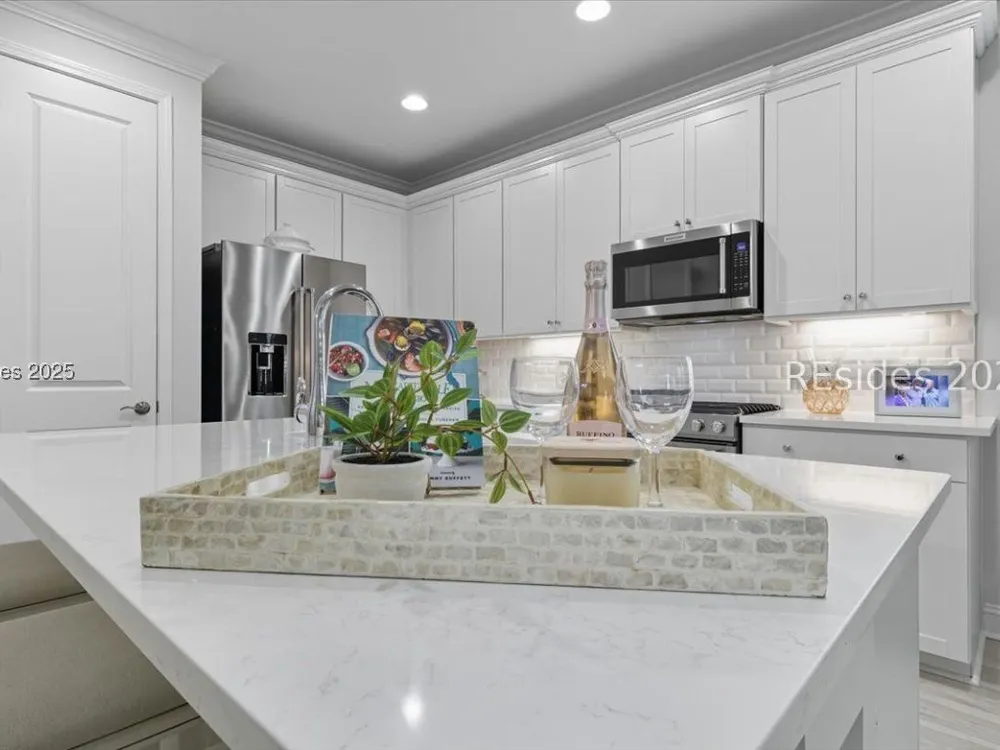 Discover a cottage that rises above the rest in Margaritaville! This stunning home is loaded with options and custom upgrades that set it apart from the others listed. From the moment you step inside, you will notice the bright, open layout and upgraded finishes. Highlights include premium KitchenAid appliances, quartz countertops, 42" cabinets, tile back splash, undercounter lighting, 8 ft. door openings, crown molding, recessed lighting, laminate wood flooring, plantation shutters, beams in great room, custom bookshelf, screened porch, Innovative concrete, sun shades on porch, seamless shower in primary bath, tile in all wet areas, cabinets in laundry room, utility sink in garage, and more than $25,000 in additional upgrades after initial construction. Oversized homesite. Don't miss the chance to own a cottage that checks all the boxes, and more! Owner is licensed SCREA.