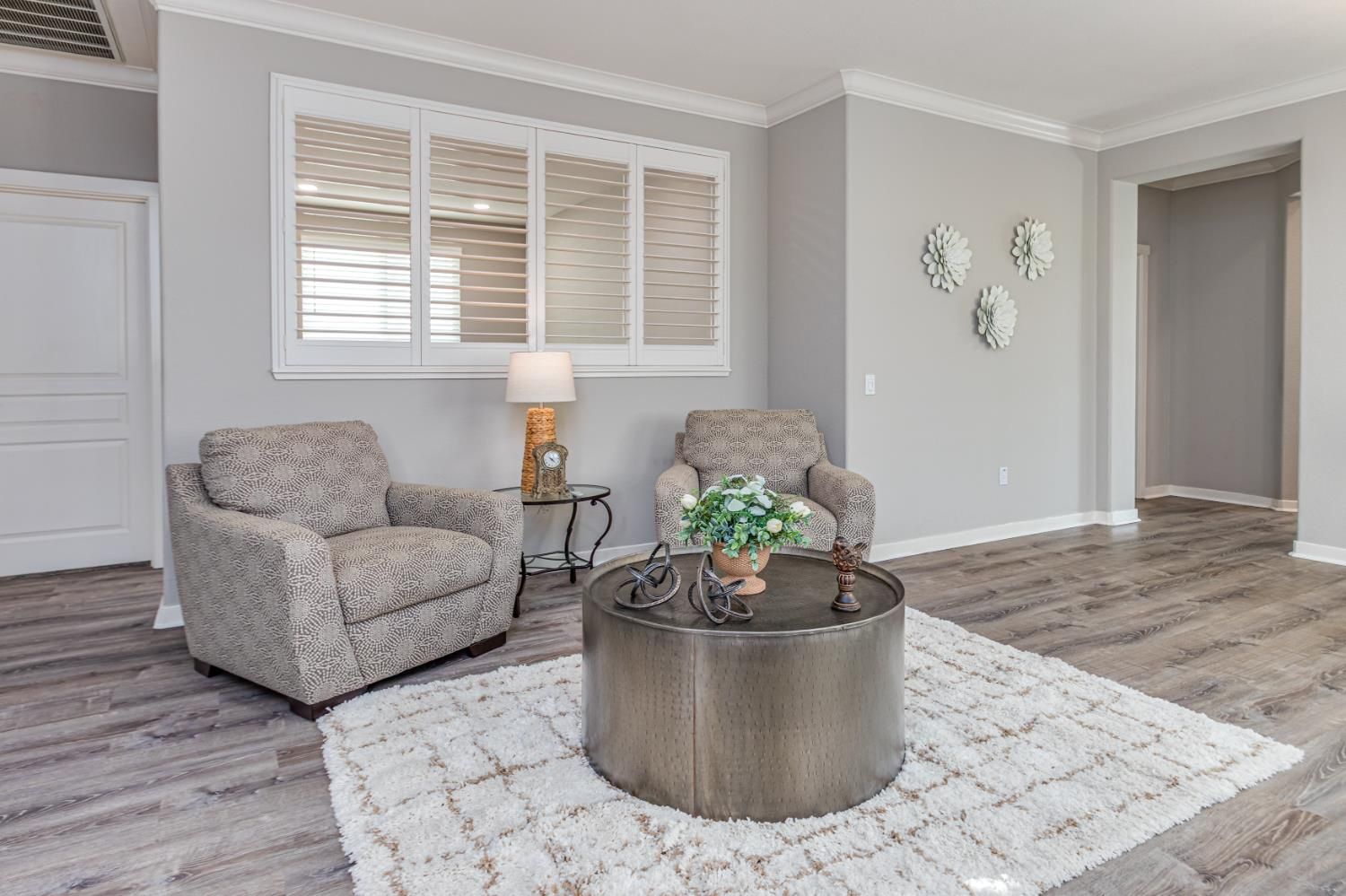 Step into this cozy and well-cared-for 1,349 sq. ft. Madera model that instantly feels like home. Thoughtfully maintained with pride, this home offers a welcoming layout and tasteful touches throughout from the updated window coverings to the ceiling fans that add comfort and style. Enjoy peace of mind with a newer HVAC system, and spend your days in the low-maintenance backyard with turf and a covered patio, perfect for relaxing or entertaining. The washer, dryer, and refrigerator are all included, making this home truly move-in ready. Located just a short walk to the Kilaga Spring Lodge, you'll have quick access to all the wonderful amenities this 55+ community offers. A great value and a floor plan that doesn't come up often this one's a must-see.