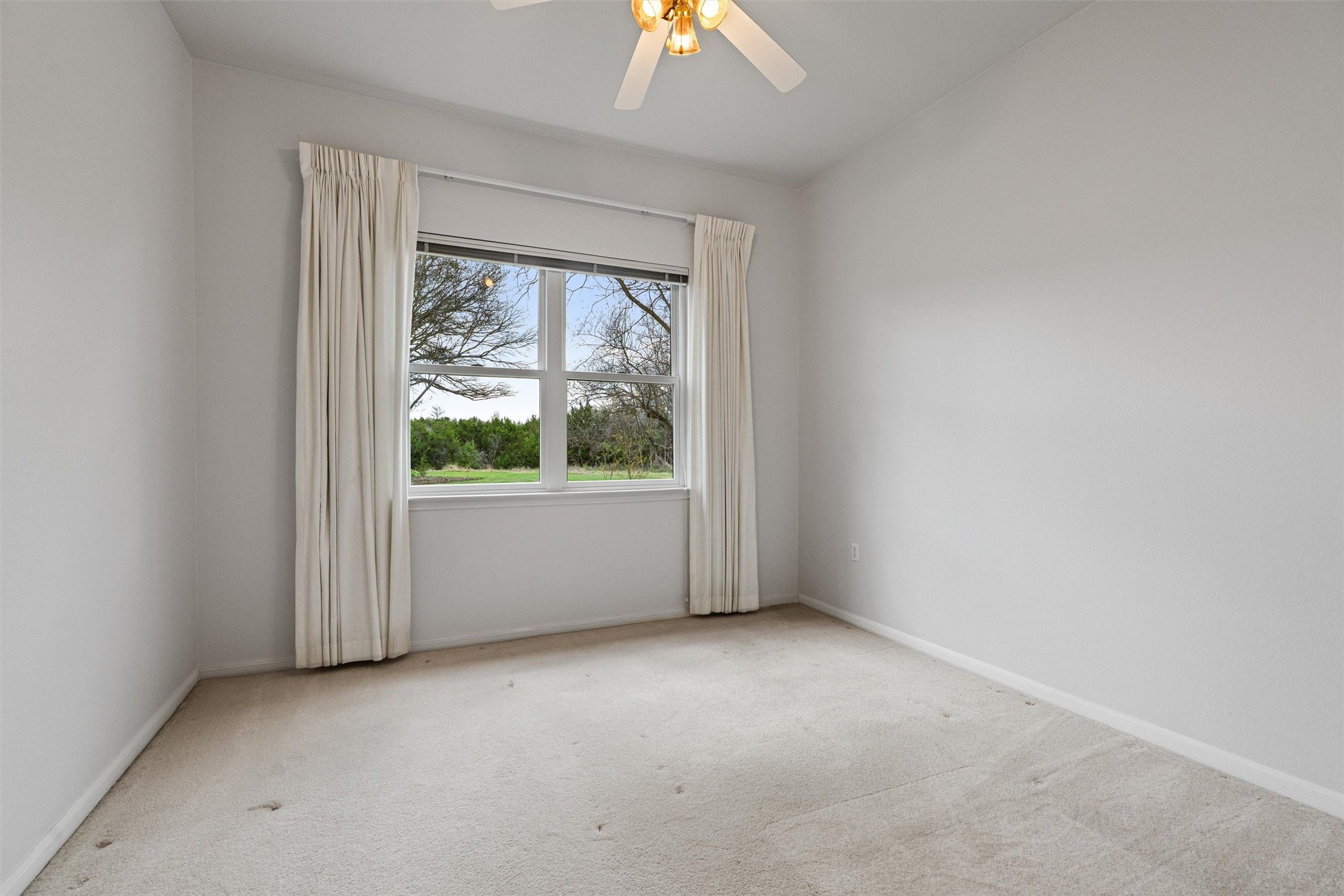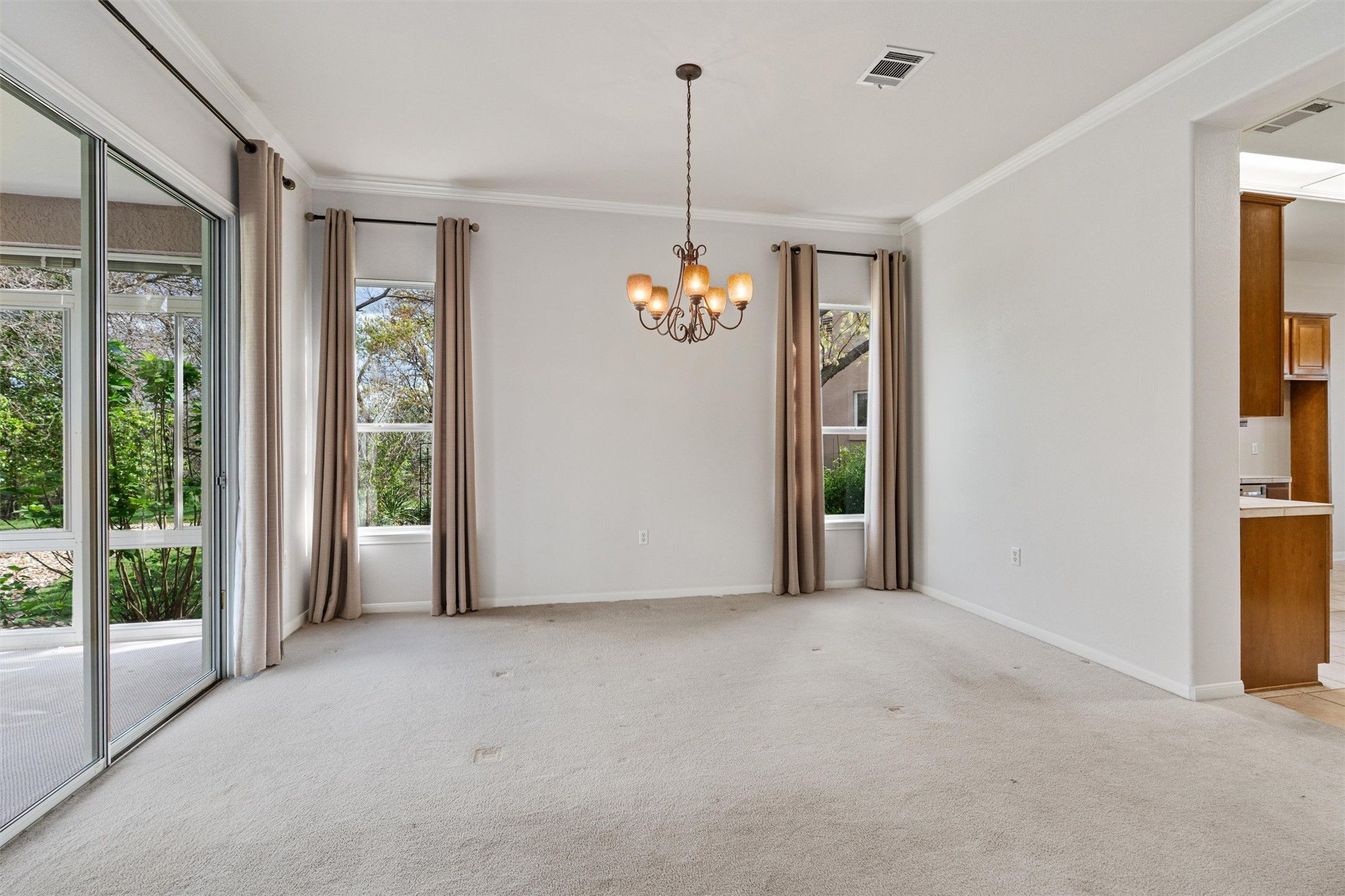 Located high above winding Berry Creek, this one-owner Sun City Texas Trinity Premier Home (Williamson) offers a pie-shaped back yard abutting a wooded preserve. At the head of the cul-de-sac, privacy abounds at this unique location, where the former Extended Covered Patio is now a glassed Sun Room opening onto a beautiful added Patio in a picture-perfect setting. Inside, a Foyer introduces the Study/Computer Room, the ultimate Office-at-Home, where twin windows reveal the landscaped front yard and cul-de-sac setting. Across the Foyer, the spacious Island Kitchen includes additional custom cabinets, stainless steel appliances including gas cooking and a Pantry Closet that will stow the goodies. A bay-windowed Breakfast Room includes wall-space for a hutch, while more front yard vistas prevail. Ahead from the Foyer, the Great Room grants a gas-log Fireplace plus custom built-ins, while a wall of windows view the Sun Room and the great outdoor scenery. Those same views repeat in the Dining portion of the Great Room, where full-view glass doors open onto the before-mentioned Sun Room. At the rear of the home, the Primary Bedroom offers more glass doors opening onto the Sun Room, while yet another bay-window views the wonderful back yard setting. The ensuite Primary Bath hosts dual vanities, a soothing tub, separate shower and a generous Walk-In Closet. On the side of the home, the Guest Bedroom is adjacent to the full Guest Bath. Nearby, the Laundry includes the Hobby Room option, a perfect extra space for sewing, scrapbooking and more. This extra room is not included on every home of this plan. The Laundry is also the access point to the Extended Two-Car Garage with area for golf cart parking. If Location, Location, Location is high on your wish list, this is the home to see!