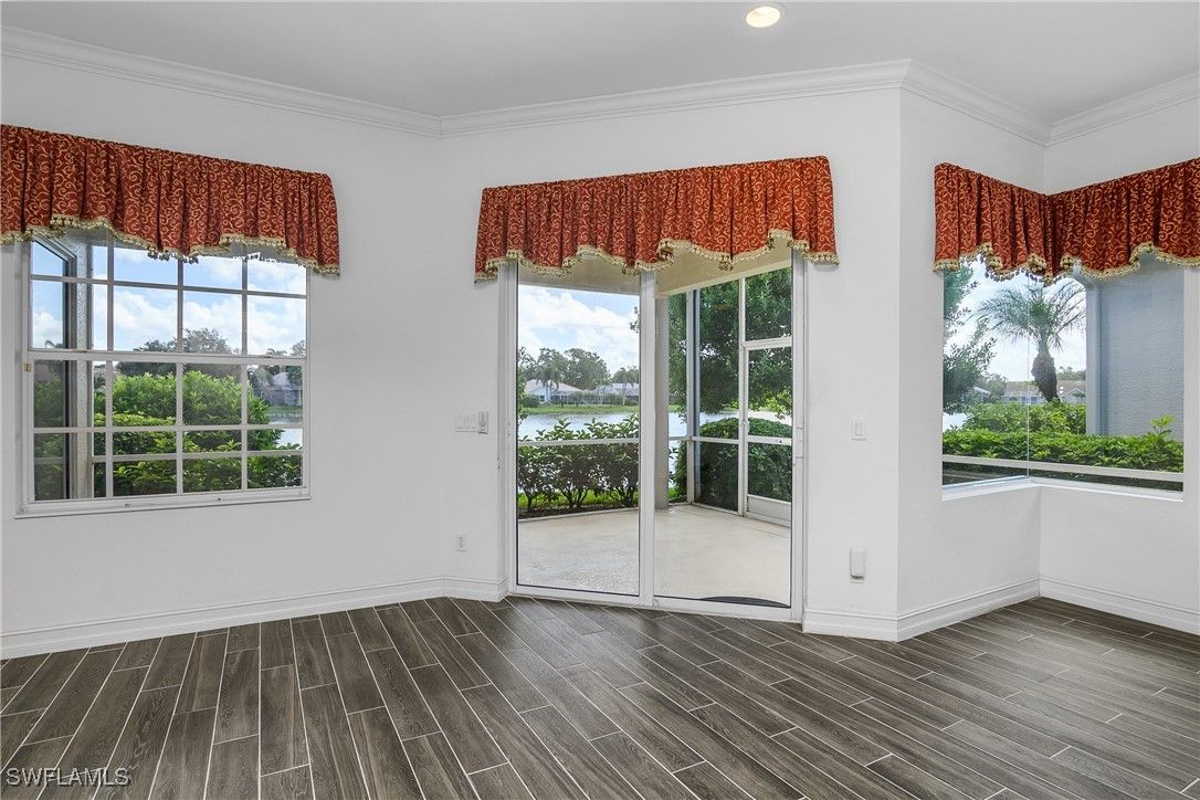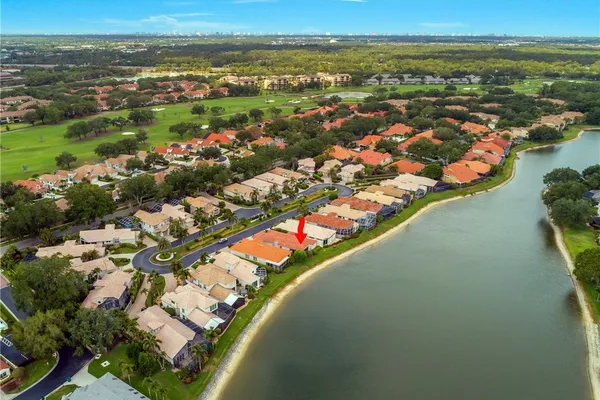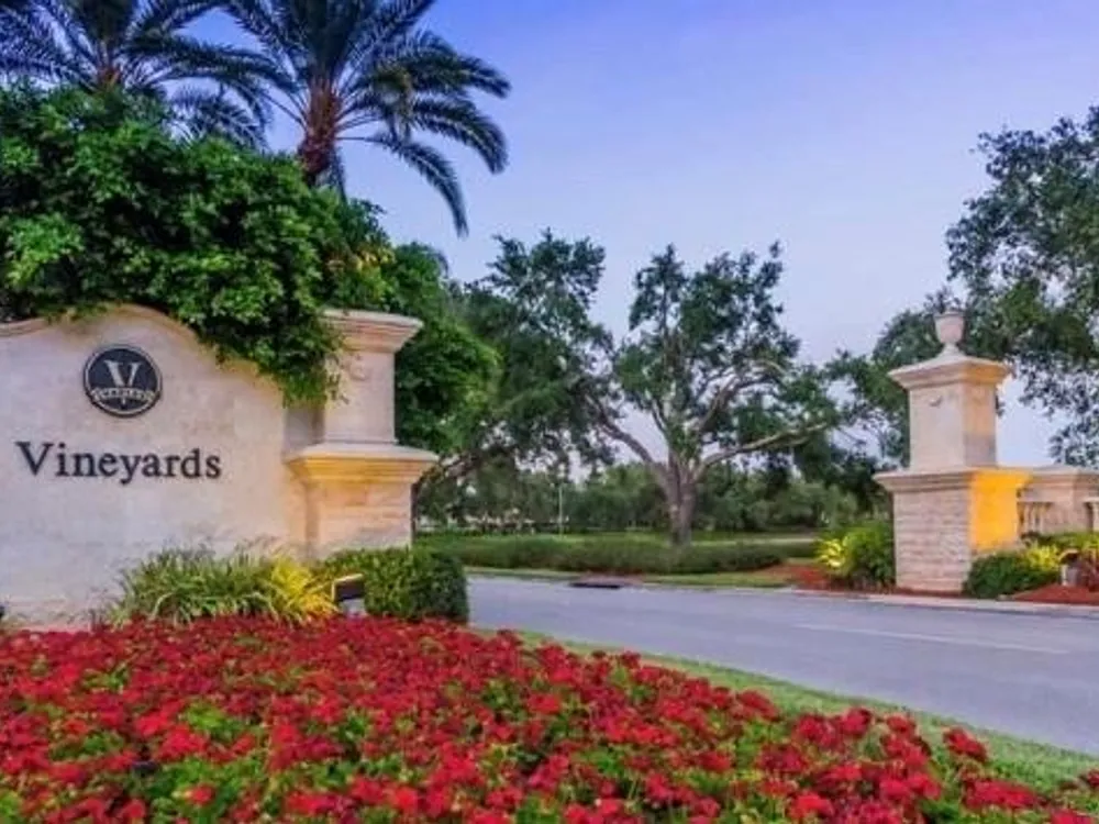 Welcome to San Miguel in The Vineyards, an intimate community of only 28 homes... San Miguel is Pet Friendly and "Fun Friendly" with a yearly "San Miguel Social" Block Party! Lovely low maintenance single family villa with beautiful, peaceful lake views and stunning sunrises! This 3 Bedroom with den, 2 & 1/2 bath home has 10' ceilings, crown molding throughout, wood tile in living areas, newer fans, water filtration system, roof installed in 2018, air conditioning system installed in 2020 etc. HOA fees include painting the home and pressure washing the roof... This is a home without the "homework"! Fiber Optic integration to support High-Definition TV, next generation Internet & carrier class telephone services included in Association Quarterly fees. Vineyards offers an On-Site Shopping Center w/Dining, Shopping, Medical Center w/Hospital & Emergency Room, CRUNCH Gym, Walgreens, Publix etc, as well as Vineyards 32-acre Community Park & Vineyards Elementary School! VINEYARDS COUNTRY CLUB WITH AWARD WINNING FITNESS/SPA & WELLNESS CENTER is OPTIONAL and available at an additional cost & offers 2 championship Golf Courses, 12 Tennis Courts, Bocce Ball Courts, Pickle Ball Courts, 2 Restaurants/Bars, 2 pools, etc.