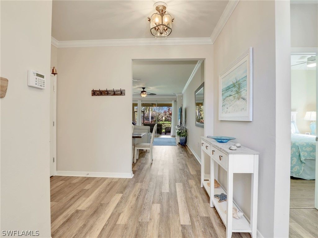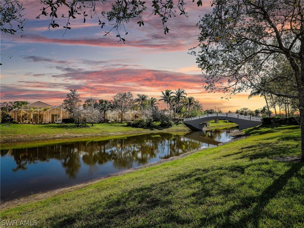 Escape the winter chill and discover your own coastal-inspired Southwest Florida retreat, where warm breezes and golden sunsets become part of your everyday routine. This beautifully designed 4-bedroom, 2-bath residence offers a spacious open-concept floor plan that lives comfortably and entertains effortlessly. The screened brick-paved rear lanai, perfectly positioned with a scenic southern exposure, invites you to host sunset gatherings, enjoy relaxed outdoor dining, or simply unwind in the privacy of your own backyard oasis. Privately situated at the end of a quiet cul-de-sac, the home offers both tranquility and convenience. A short, scenic walk or bike ride — brings you to the vibrant Town Center and the heart of the community’s amenities. Located within the highly desirable VillageWalk of Bonita, residents enjoy a true resort-style lifestyle in a guard-gated setting just minutes from Southwest Florida’s pristine Gulf beaches, premier shopping, dining, and nature preserves. The community features an impressive array of amenities including resort and lap pools, a state-of-the-art fitness center with group classes, tennis, pickleball, bocce, and basketball courts, as well as a ballroom, card rooms, library, restaurant and bar, deli, salon, spa, gas station, post office, and over 22 miles of scenic walking and biking trails. Whether you are seeking a seasonal escape or a full-time residence in one of the area’s most vibrant communities, this home presents an exceptional opportunity to embrace the Southwest Florida lifestyle.