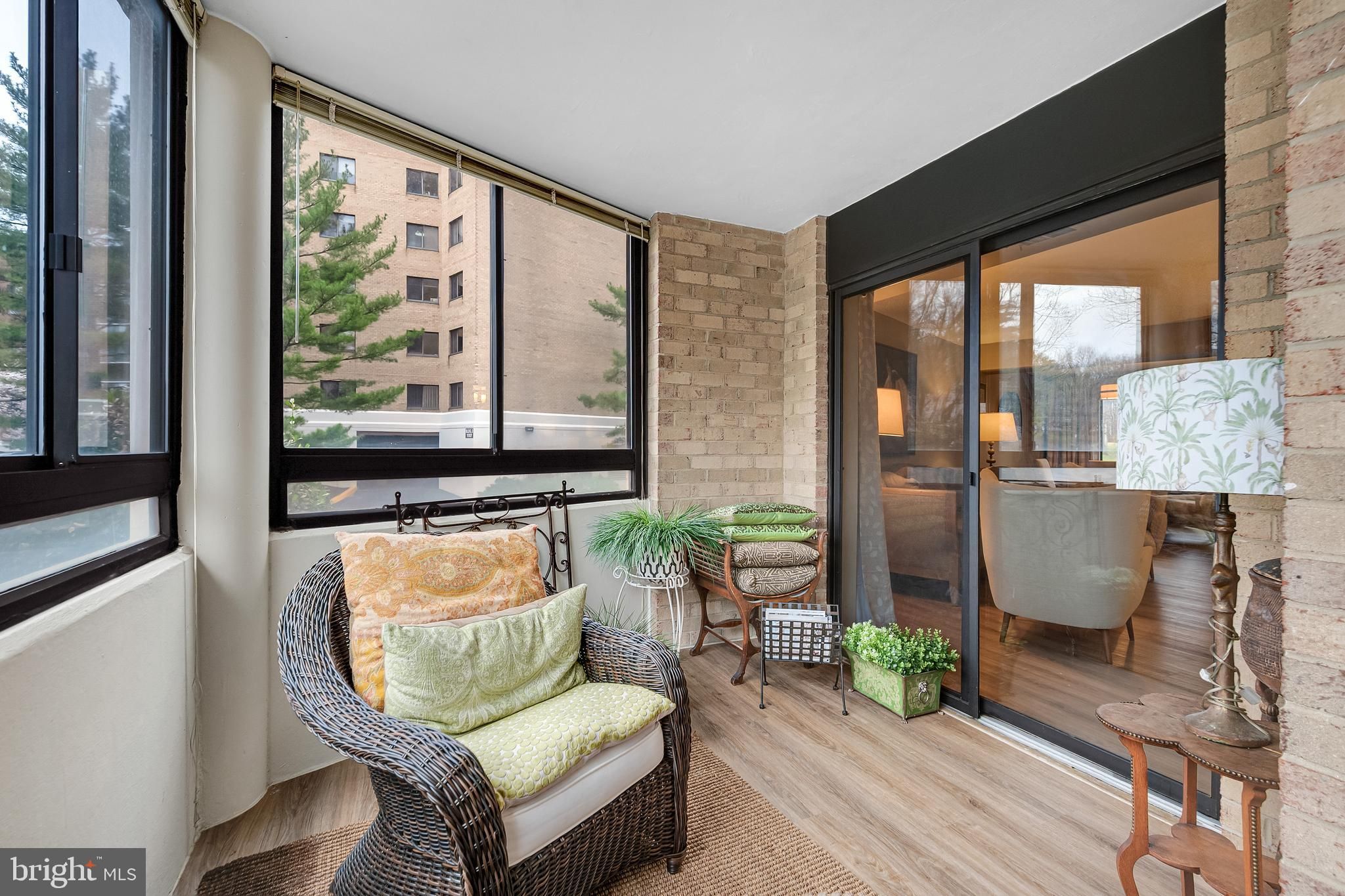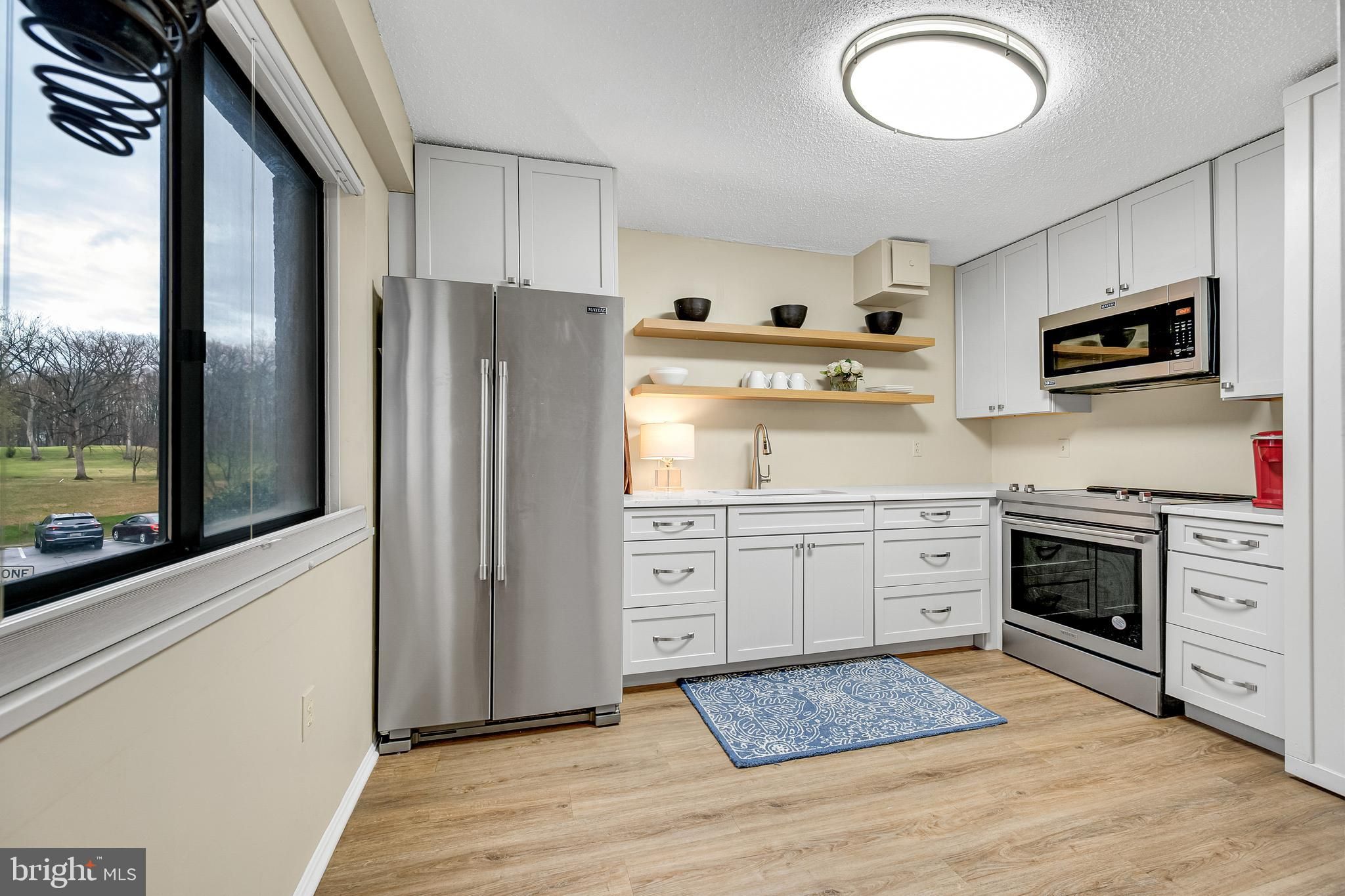 Welcome to The Greens in Leisure World, Montgomery County’s premier 55+ gated community known for its elegance, exclusivity, and vibrant lifestyle. This bright fully renovated corner residence offers approximately 1,320 square feet of thoughtfully designed living space, featuring two spacious bedrooms and two well appointed bathrooms. Modern sophistication and timeless design create a refined ambiance. The spacious remodeled kitchen showcases quartz countertops, custom cabinetry, and stainless steel appliances, all complemented by stylish luxury vinyl plank flooring that flows throughout the home. Warm tones and refined finishes create an inviting yet elevated ambiance in every room. The expansive main living area seamlessly transitions into a light-filled enclosed sunroom - perfect for relaxing or entertaining - where you can take in peaceful views of the golf course and surrounding greenery, bringing the outdoors in year-round. Ideally situated just one level above the lobby, this home offers exceptional convenience with easy elevator access as well as a nearby stairway leading directly to the parking area. As an end-unit, it provides added privacy and a quiet, serene setting. Residents of Leisure World enjoy an unparalleled lifestyle with access to multiple clubhouses, golf courses, swimming pools, tennis courts, fitness centers, dining venues, walking paths, and on-site healthcare services. This is more than a home—it’s a community designed for comfort, connection, and enjoying life to the fullest.