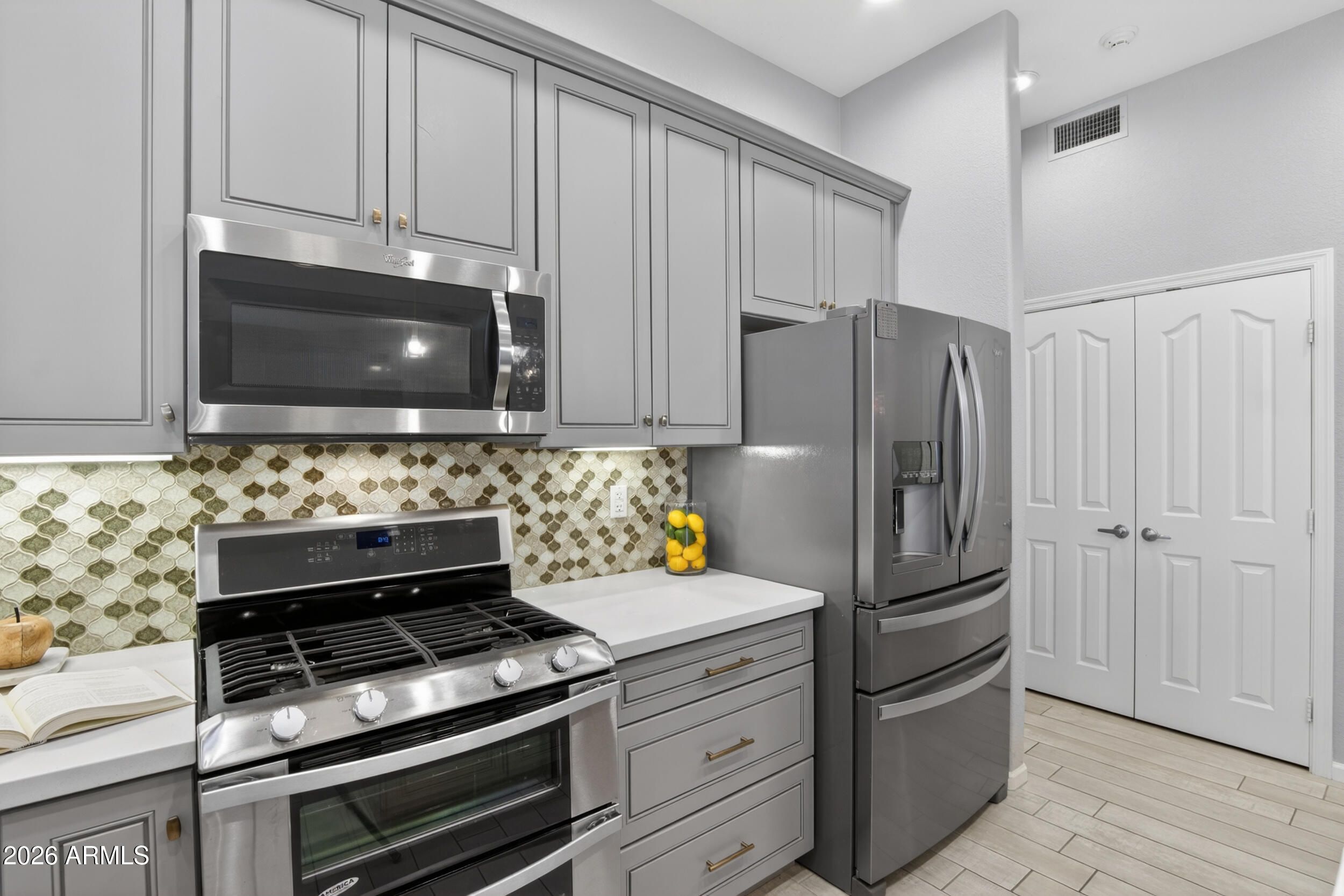 - Washer, Reverse Osmosis, Refrigerator, Built-in Microwave, Dishwasher, Disposal, Electric Range