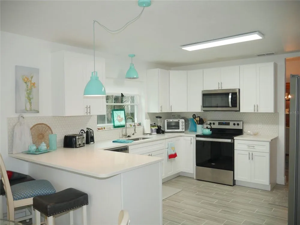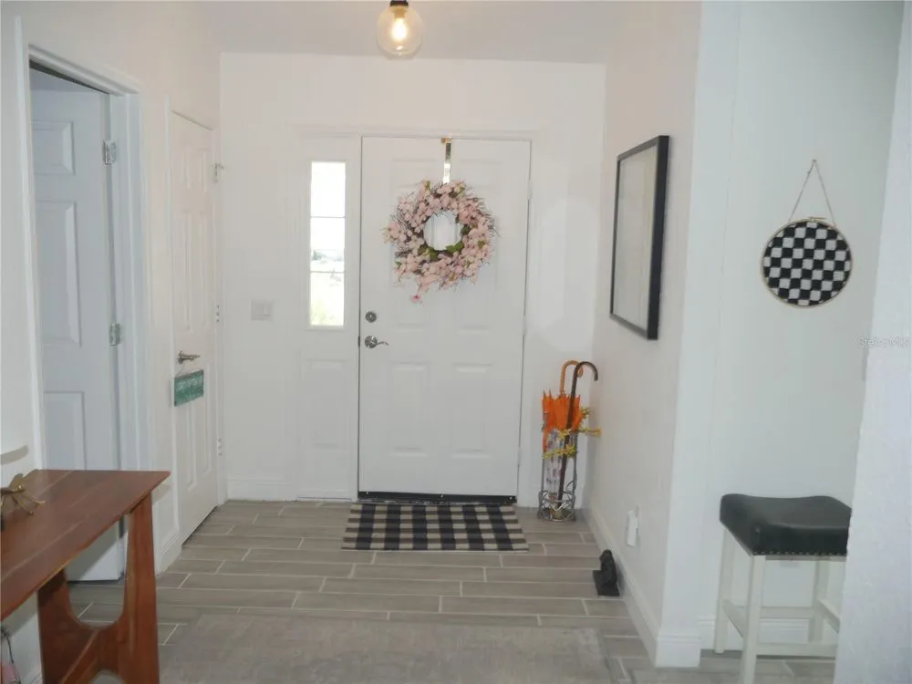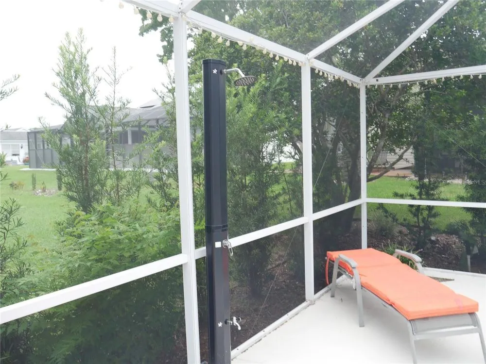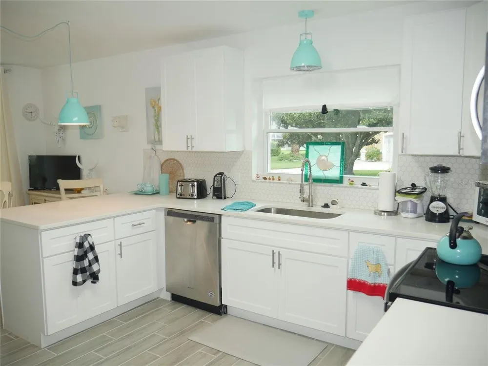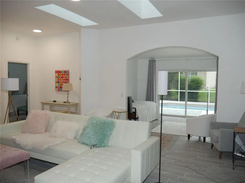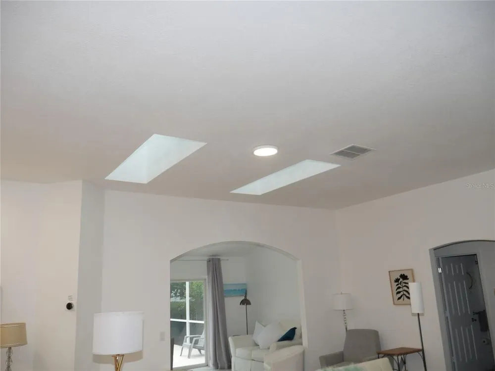 Bond Paid - Turn Key with Golf Cart Immaculate 3 Bedroom/2 Bath Block/Stucco Designer Home with Beautifully Updated Interior Located in the Village of HACIENDA SOUTH. Many Updated Features Including New Roof (2025), Private/Screened Saltwater Pool (marcite resurfaced in 2025) plus Newer Filter/Heater,skylights(2025), HVAC (2 years), Water Heater (3 years) Irrigation solonoid (2025) Upgraded Cabinetry/Quartz Counters Kitchen and Baths, Ceramic Wood Plank Tile throughout, Washer/Dryer(3 years), Storms Door 2024, Pool Bird Cage Screens (2023). Newer Light fixtures Kitchen,Dining, Hall plus many others inside/outside,Other Features Include Solar Shower (Pool), Nest Thermostat, Newer Triple Pane Hurricane Windows, and Many More Upgraded Deluxe Features. This Homes Shows Very Well. Property is Located only a few minutes from the Spanish Springs and Lake Sumter Landing Town Centers, Dining ,Stores,Grocery Stores, Banking, Medical/Hospital, Golf, and. Recreation Centers