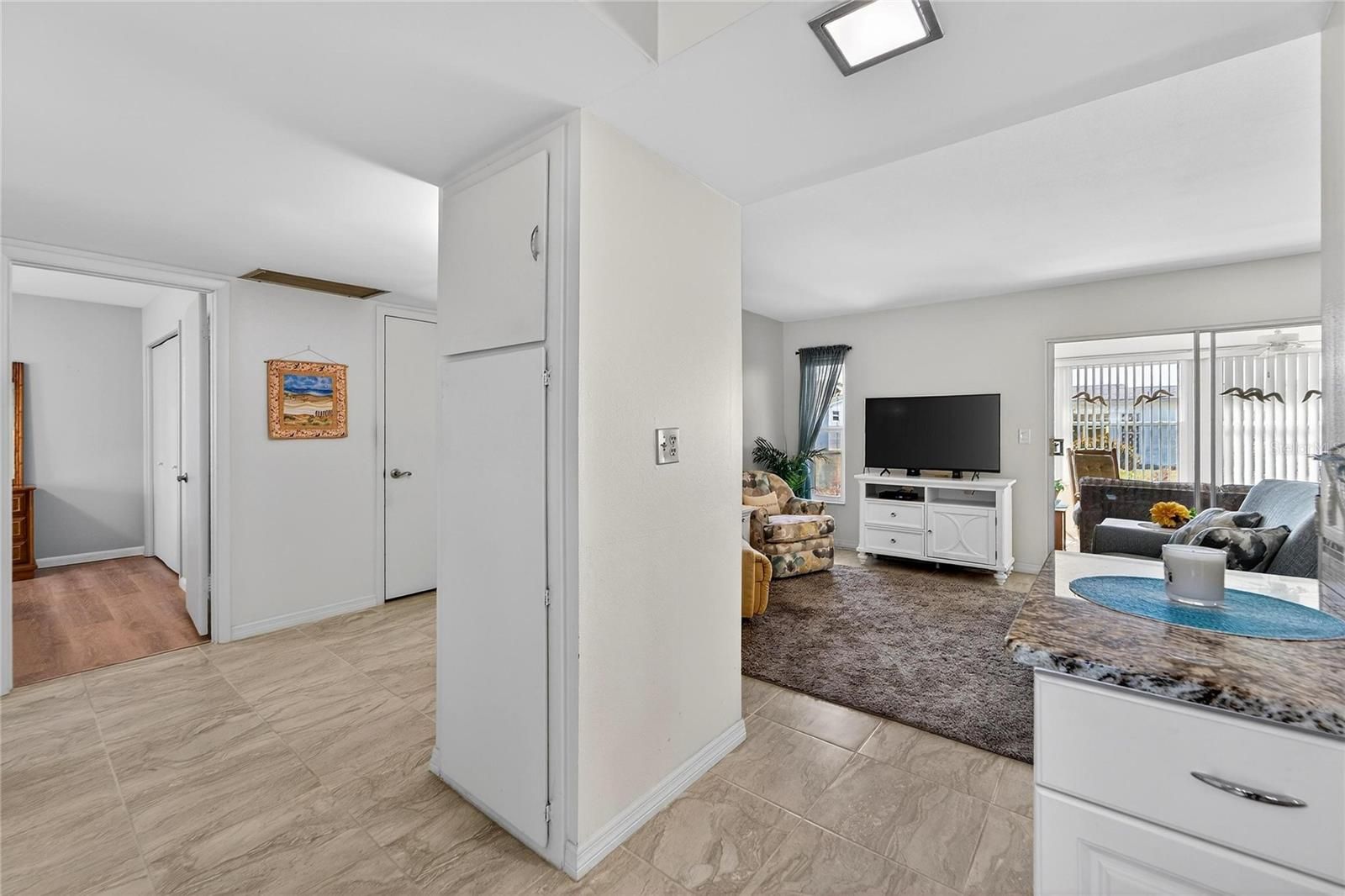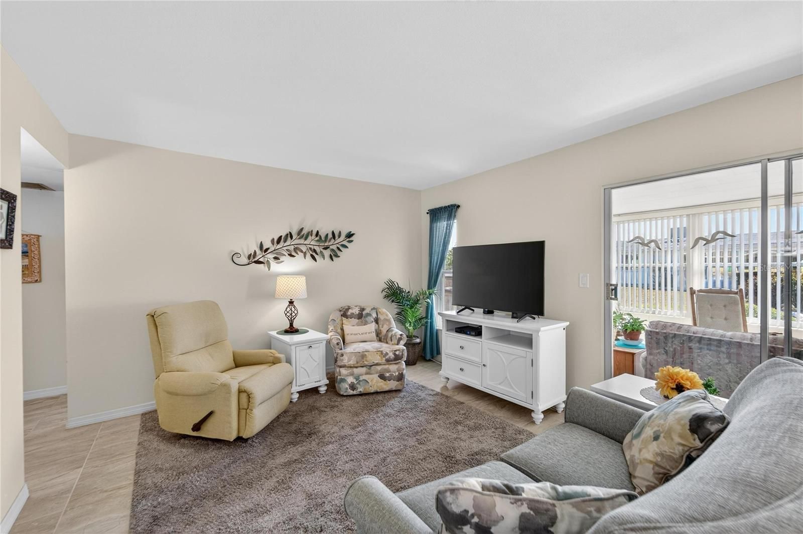 Welcome to this charming, tastefully updated 2-bedroom, 2-bath, 1-car garage home in the heart of Sun City Center, Florida’s premier 55+ community. This light and bright home features neutral tones throughout, NO carpet, and easy-care flooring. The kitchen offers granite countertops with an eat-in space, while the Florida room provides additional living area perfect for relaxing or entertaining. The primary suite includes a walk-in shower, and the guest bath features a tub/shower combination. Both bathrooms include accessibility bars for added comfort and convenience. Inside laundry with stylish barn door. Major system updates include Roof (2021), A/C (2021), water heater (2020) making this home truly move-in ready. Water and lawn are included in the HOA fee. Enjoy golf-cart-friendly streets and access to multiple community centers, indoor and outdoor pools, fitness facilities, pickleball, an abundance of clubs and activities such as billiards, card clubs, dance, lawn bowling, ceramics, stained glass, and so much more! Convenient to shopping, dining, and healthcare—ideal Florida living. Schedule your personal tour today!