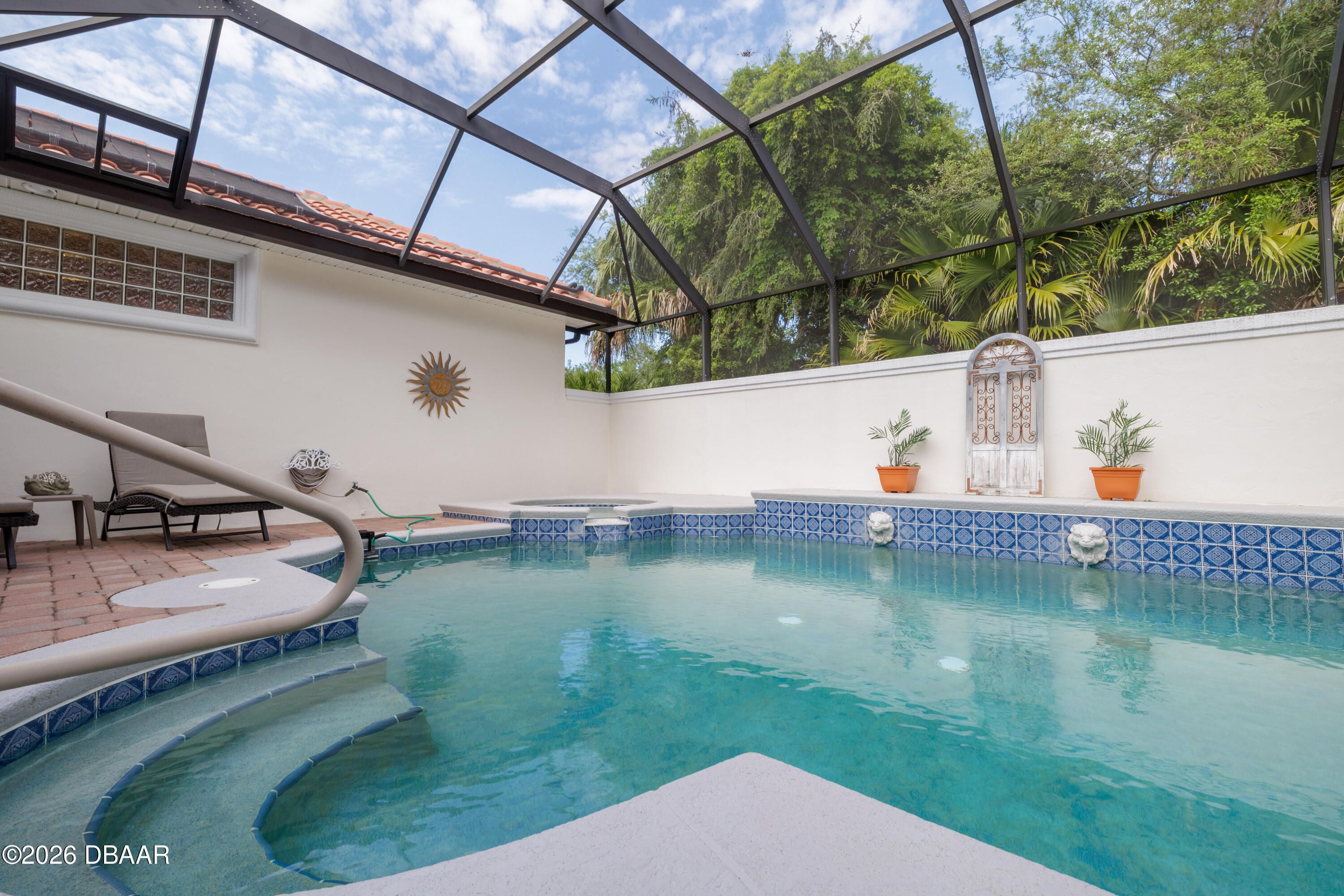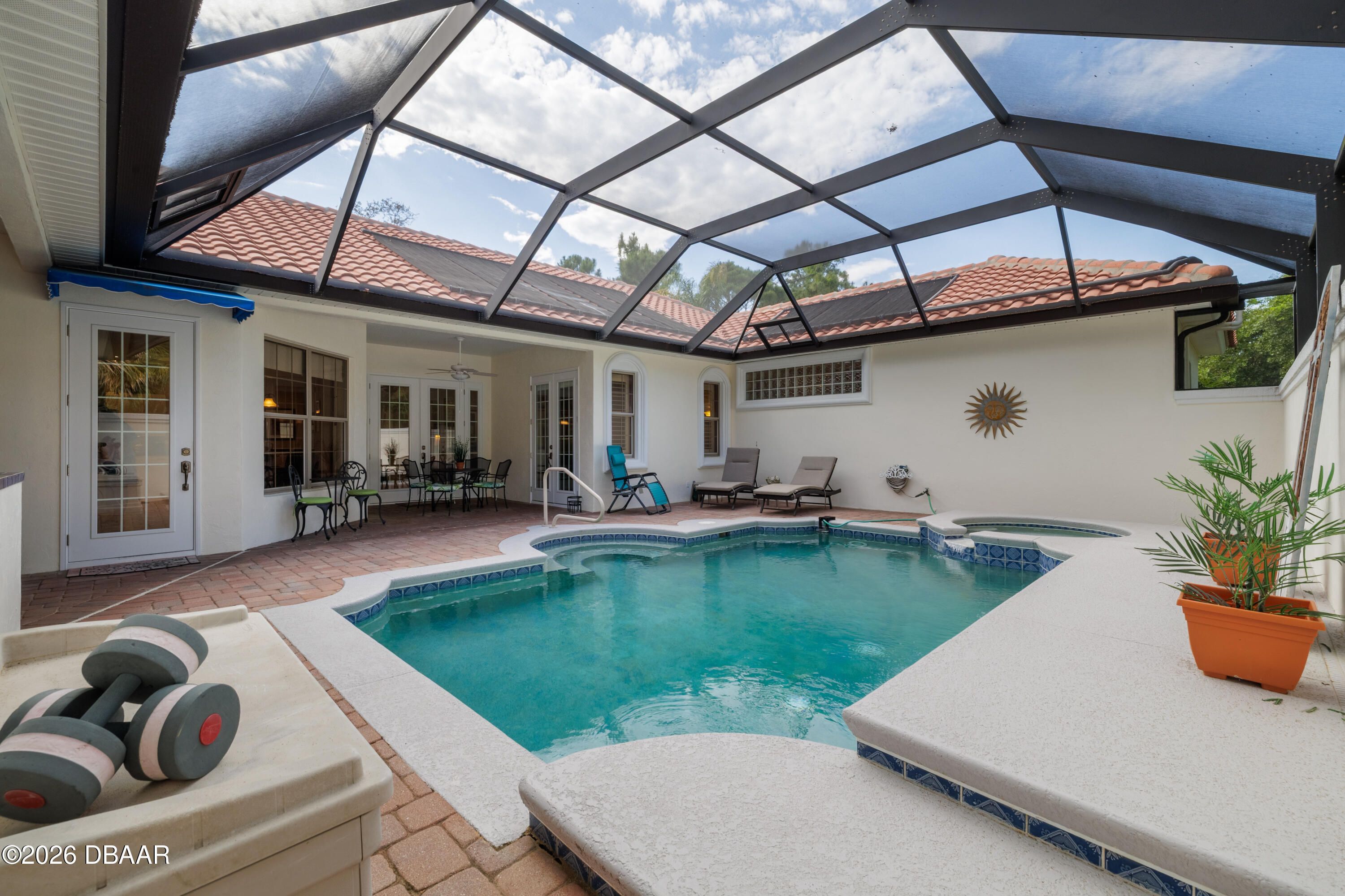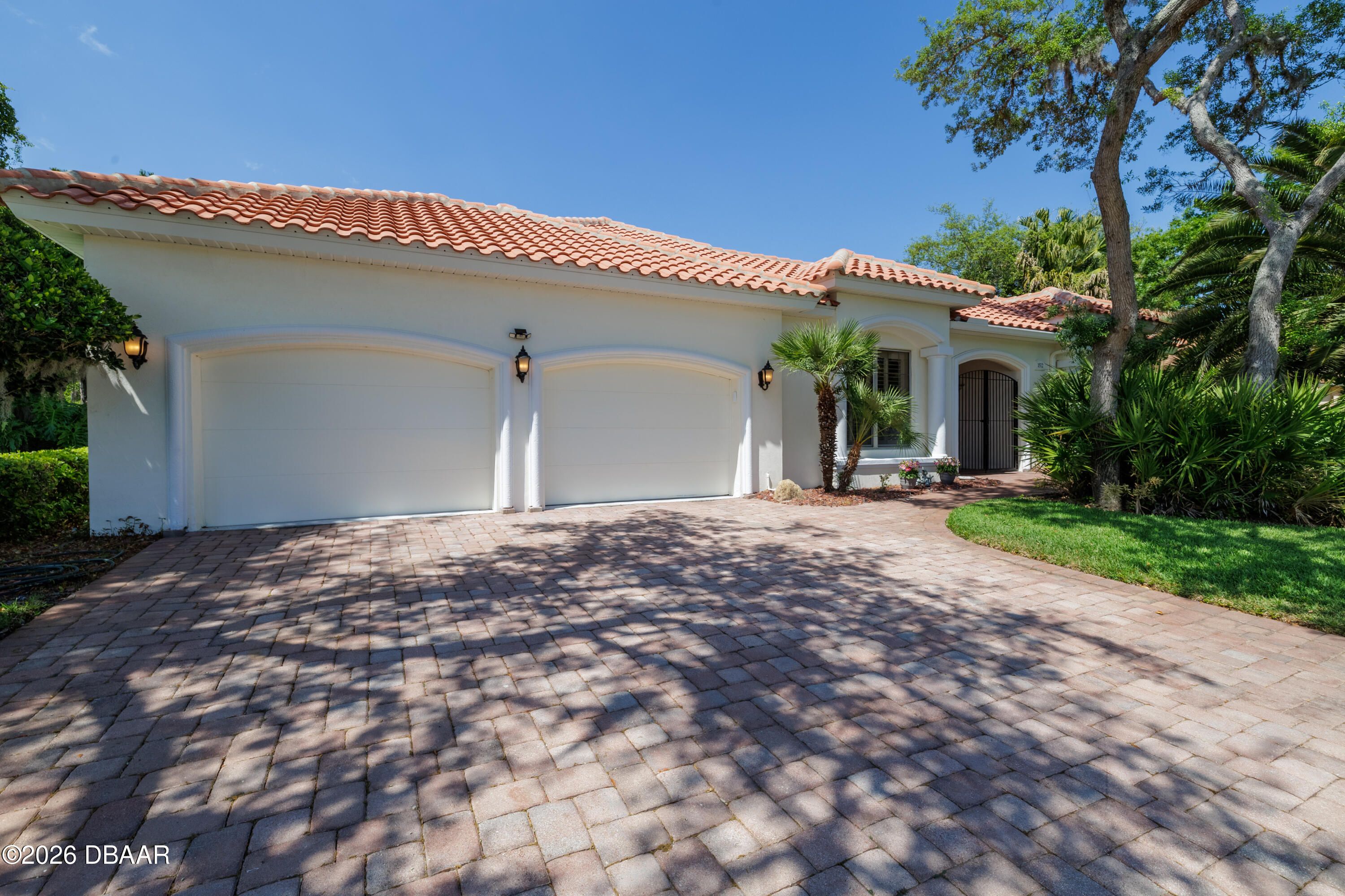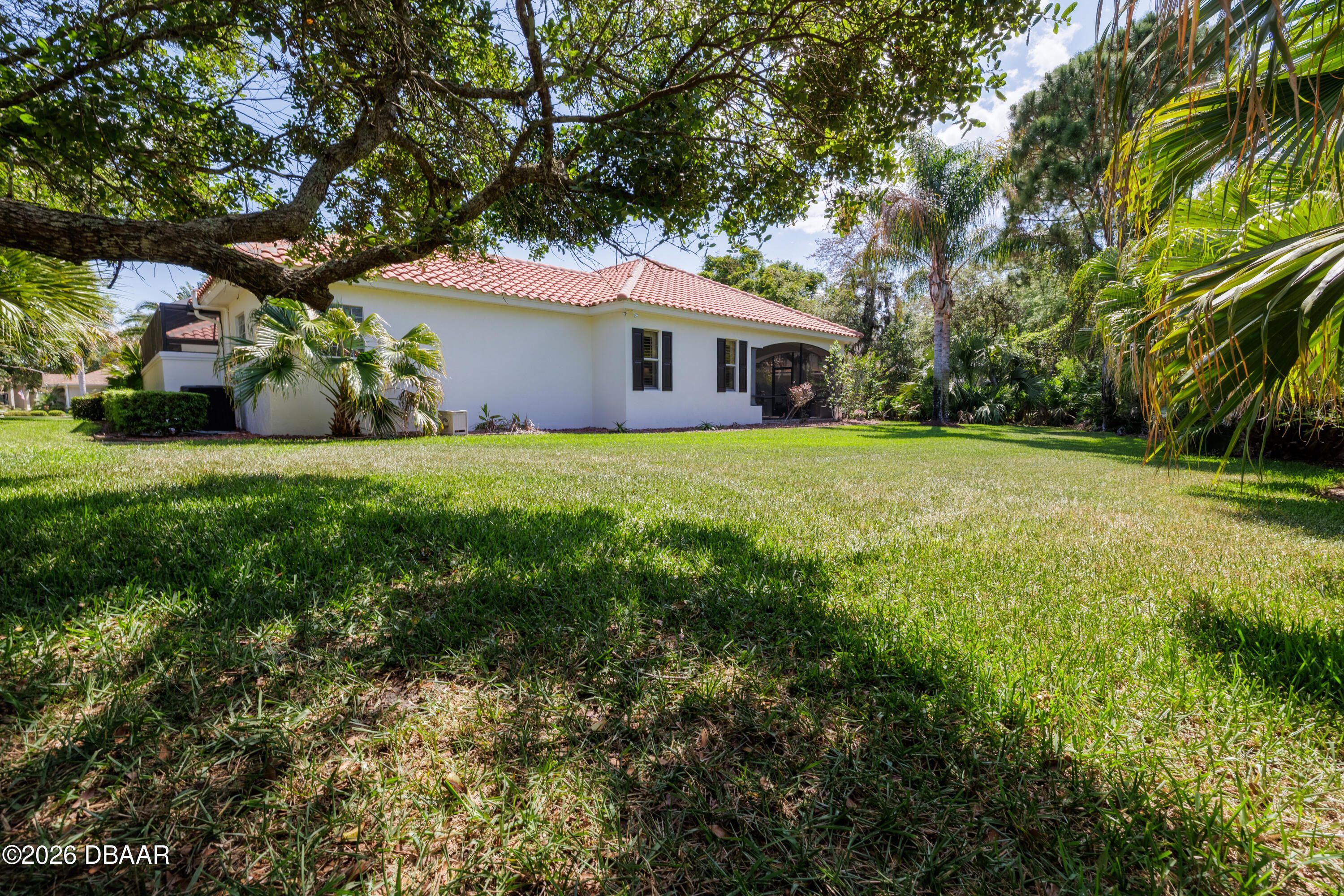 HALIFAX PLANTATION-COURTYARD POOL! Welcome home! From the moment you arrive, you'll be captivated by the mature landscaping and charming wrought-iron arched gate, guiding you through a double-door entry into your own private courtyard retreat. This inviting outdoor oasis showcases a solar-heated pool and spa, creating the perfect setting for relaxation and entertaining. This 3BR, 3BA home seamlessly connects to the courtyard through new hurricane-impact, UV-protected glass french doors, blending indoor and outdoor living effortlessly. Step inside to a bright, open-concept floor plan where the kitchen, dining, and living areas all overlook the pool. High ceilings, crown molding, and 20x20 tile flooring flow seamlessly throughout the home, creating a stylish, cohesive, and low-maintenance living space. Plantation shutters add both charm and functionality. Just off the main living area, additional French doors lead to a separate screened enclosed lanai with peaceful views of the backyard. At the heart of the home is a chef's dream kitchen, featuring 36 and 42-inch cabinetry with pull-outs, under-cabinet lighting, crown molding, and a striking tile backsplash. Enjoy newer LG stainless steel appliances, including a convection oven with air-fry capability, an oversized breakfast bar, and a spacious island accented with elegant glass pendant lighting. A charming breakfast nook offers built-in bookcases and a desk area--perfect for work or organization. The primary suite is a private retreat designed for comfort and tranquility, ideal after a day at the beach or exploring nearby parks and trails. The ensuite bathroom features a walk-in shower, double vanity, soaking tub, and private water closet. An additional flex room off the primary suite is perfect for a nursery, home office, or hobby room. This home also offers peace of mind and efficiency with double-pane windows, sun tunnels, and a durable tile roof. A standout feature is the detached pool house casita, serving as a third bedroom with its own living area, plantation shutters, and en-suite bathroom--ideal for guests, a private office, or a mother-in-law suite. Designed for entertaining, the home includes a summer kitchen and expansive outdoor living spaces. Additional highlights include exterior paint (2025), recently cleaned tile roof, pest tubes, a retractable front door screen, generator plug, security system, and paved driveway, courtyard, lanai, and walkways. Halifax Plantation is minutes from the ocean and home to 18 holes of golf, clubhouse with restaurant, sports pub and pro shop. Amenities include tennis, fitness center and swimming pool with different membership options. Enjoy early morning walks or bike rides along the canopy tree-lined streets. It's the perfect place to call home. All information recorded in the MLS is intended to be accurate but cannot be guaranteed. Square footage is taken from property appraisers office.
