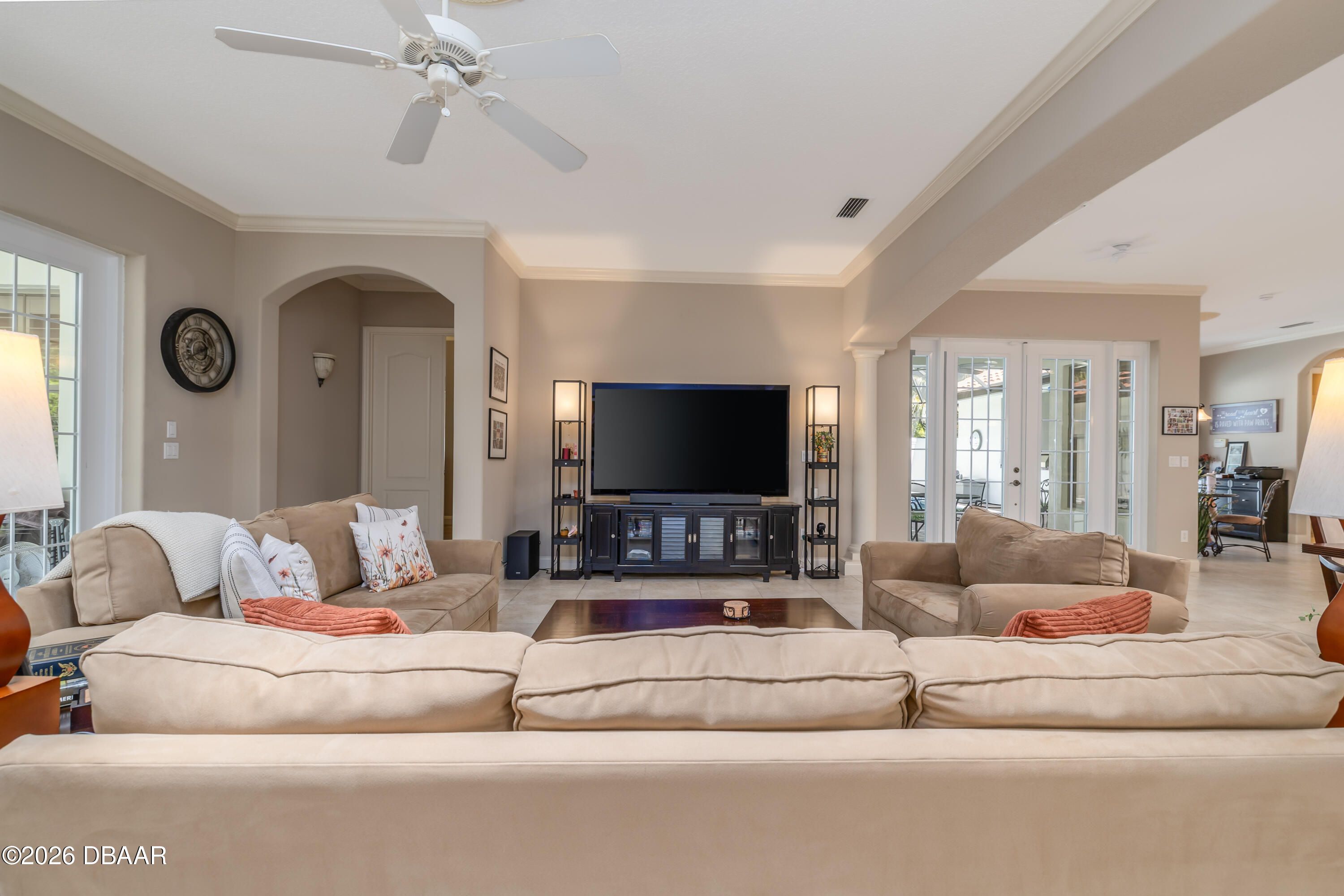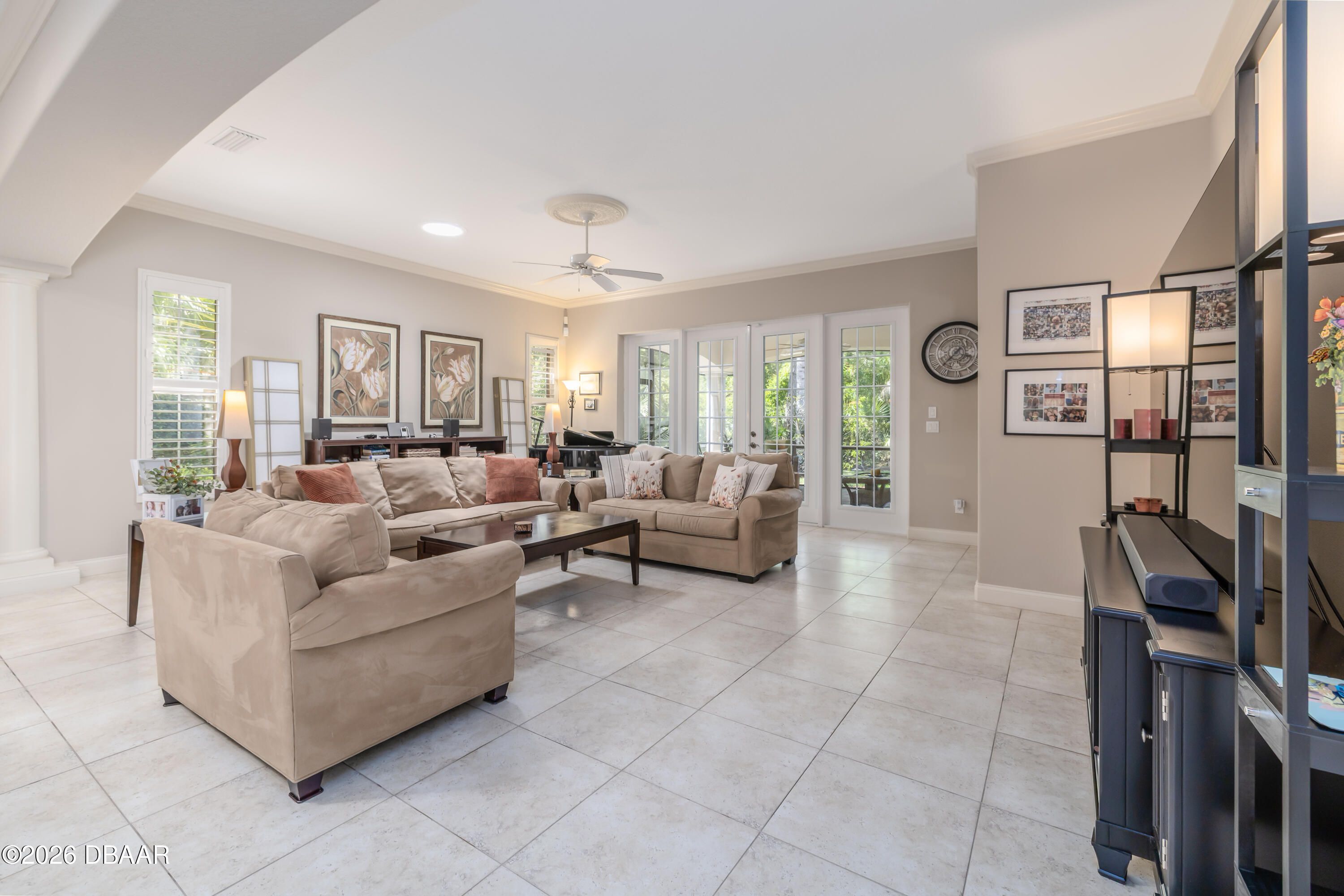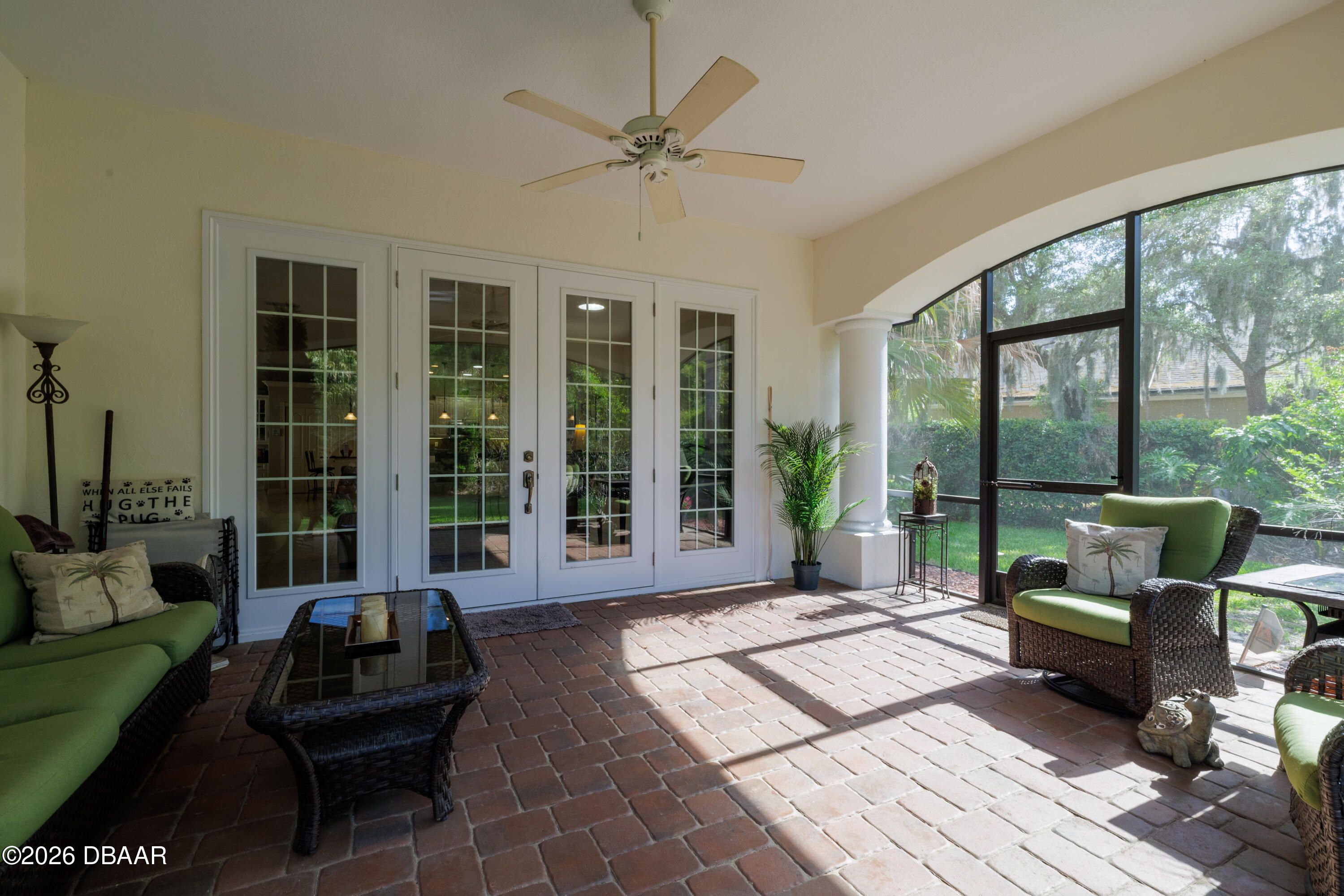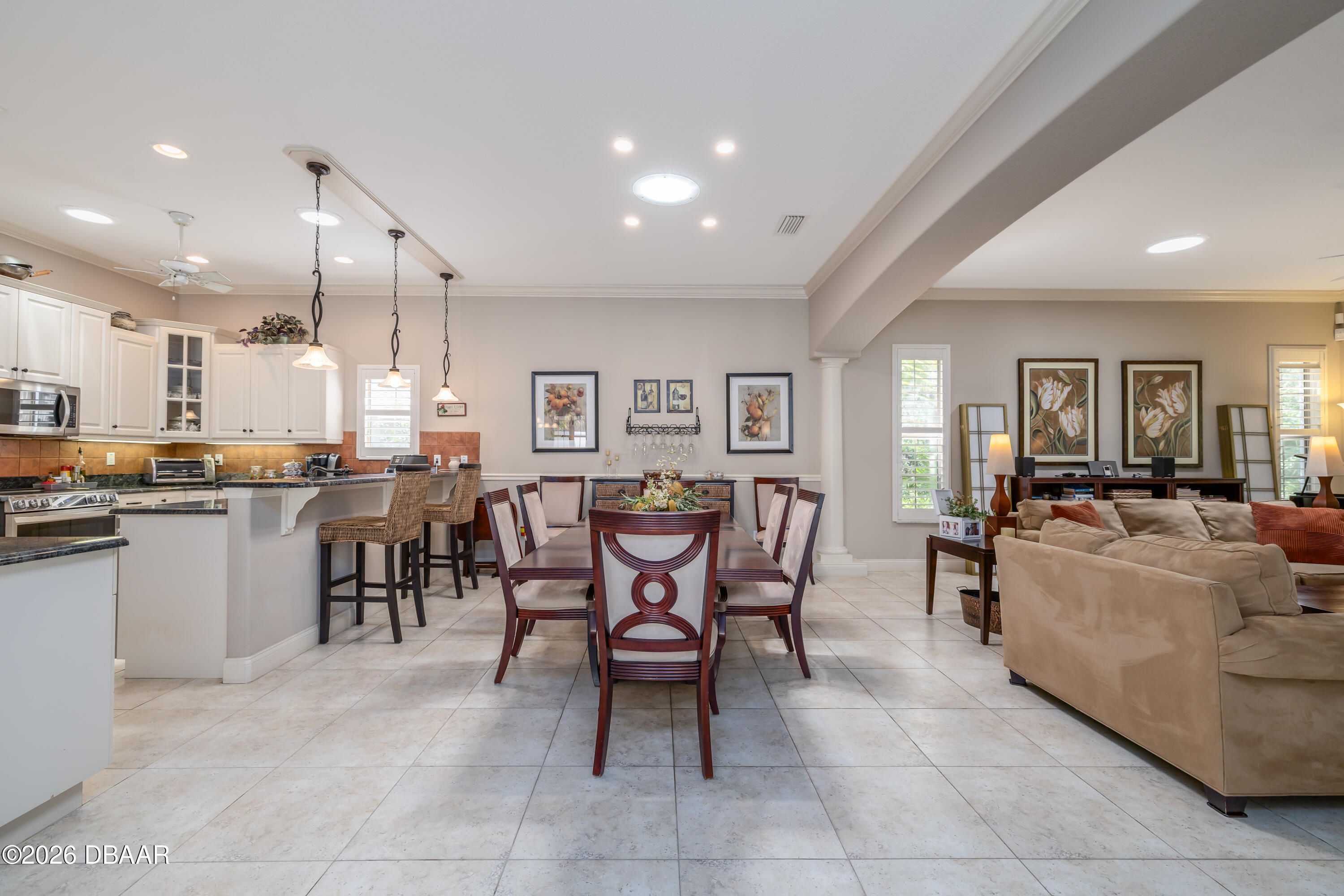 HALIFAX PLANTATION-COURTYARD POOL! Welcome home! From the moment you arrive, you'll be captivated by the mature landscaping and charming wrought-iron arched gate, guiding you through a double-door entry into your own private courtyard retreat. This inviting outdoor oasis showcases a solar-heated pool and spa, creating the perfect setting for relaxation and entertaining. This 3BR, 3BA home seamlessly connects to the courtyard through new hurricane-impact, UV-protected glass french doors, blending indoor and outdoor living effortlessly. Step inside to a bright, open-concept floor plan where the kitchen, dining, and living areas all overlook the pool. High ceilings, crown molding, and 20x20 tile flooring flow seamlessly throughout the home, creating a stylish, cohesive, and low-maintenance living space. Plantation shutters add both charm and functionality. Just off the main living area, additional French doors lead to a separate screened enclosed lanai with peaceful views of the backyard. At the heart of the home is a chef's dream kitchen, featuring 36 and 42-inch cabinetry with pull-outs, under-cabinet lighting, crown molding, and a striking tile backsplash. Enjoy newer LG stainless steel appliances, including a convection oven with air-fry capability, an oversized breakfast bar, and a spacious island accented with elegant glass pendant lighting. A charming breakfast nook offers built-in bookcases and a desk area--perfect for work or organization. The primary suite is a private retreat designed for comfort and tranquility, ideal after a day at the beach or exploring nearby parks and trails. The ensuite bathroom features a walk-in shower, double vanity, soaking tub, and private water closet. An additional flex room off the primary suite is perfect for a nursery, home office, or hobby room. This home also offers peace of mind and efficiency with double-pane windows, sun tunnels, and a durable tile roof. A standout feature is the detached pool house casita, serving as a third bedroom with its own living area, plantation shutters, and en-suite bathroom--ideal for guests, a private office, or a mother-in-law suite. Designed for entertaining, the home includes a summer kitchen and expansive outdoor living spaces. Additional highlights include exterior paint (2025), recently cleaned tile roof, pest tubes, a retractable front door screen, generator plug, security system, and paved driveway, courtyard, lanai, and walkways. Halifax Plantation is minutes from the ocean and home to 18 holes of golf, clubhouse with restaurant, sports pub and pro shop. Amenities include tennis, fitness center and swimming pool with different membership options. Enjoy early morning walks or bike rides along the canopy tree-lined streets. It's the perfect place to call home. All information recorded in the MLS is intended to be accurate but cannot be guaranteed. Square footage is taken from property appraisers office.