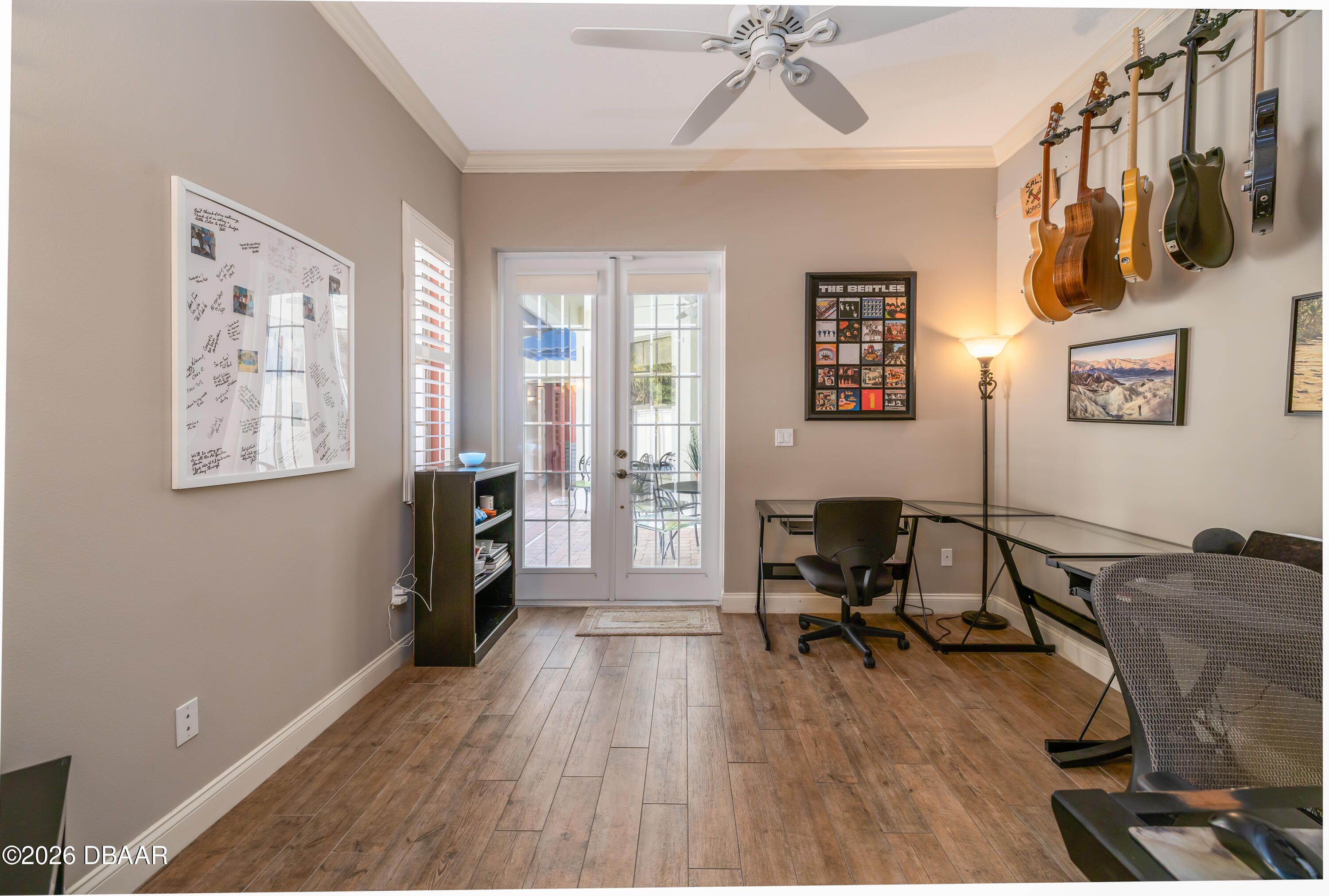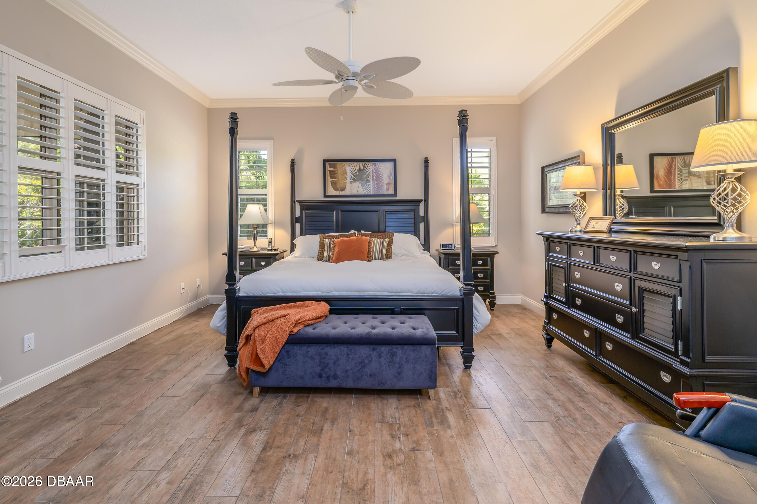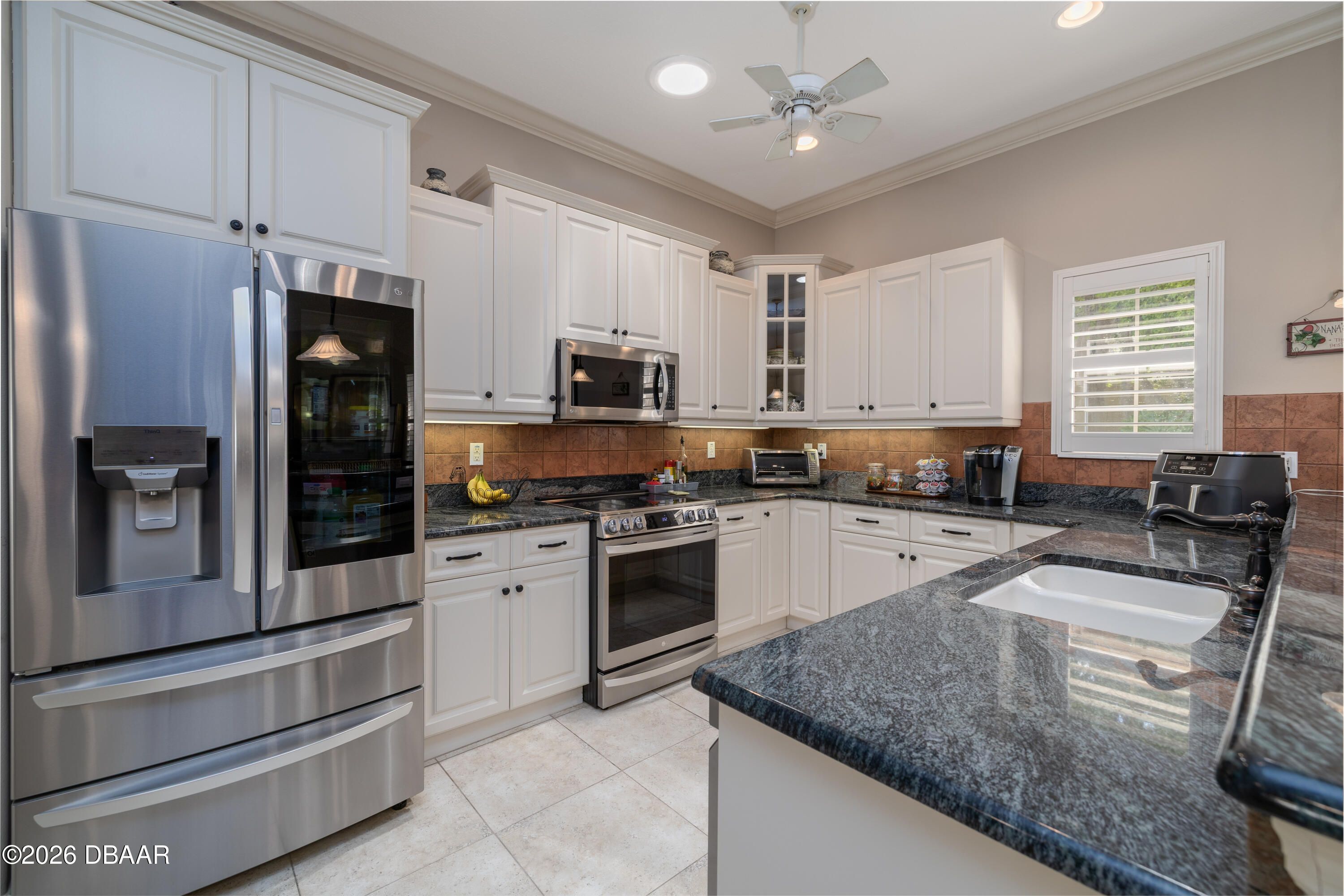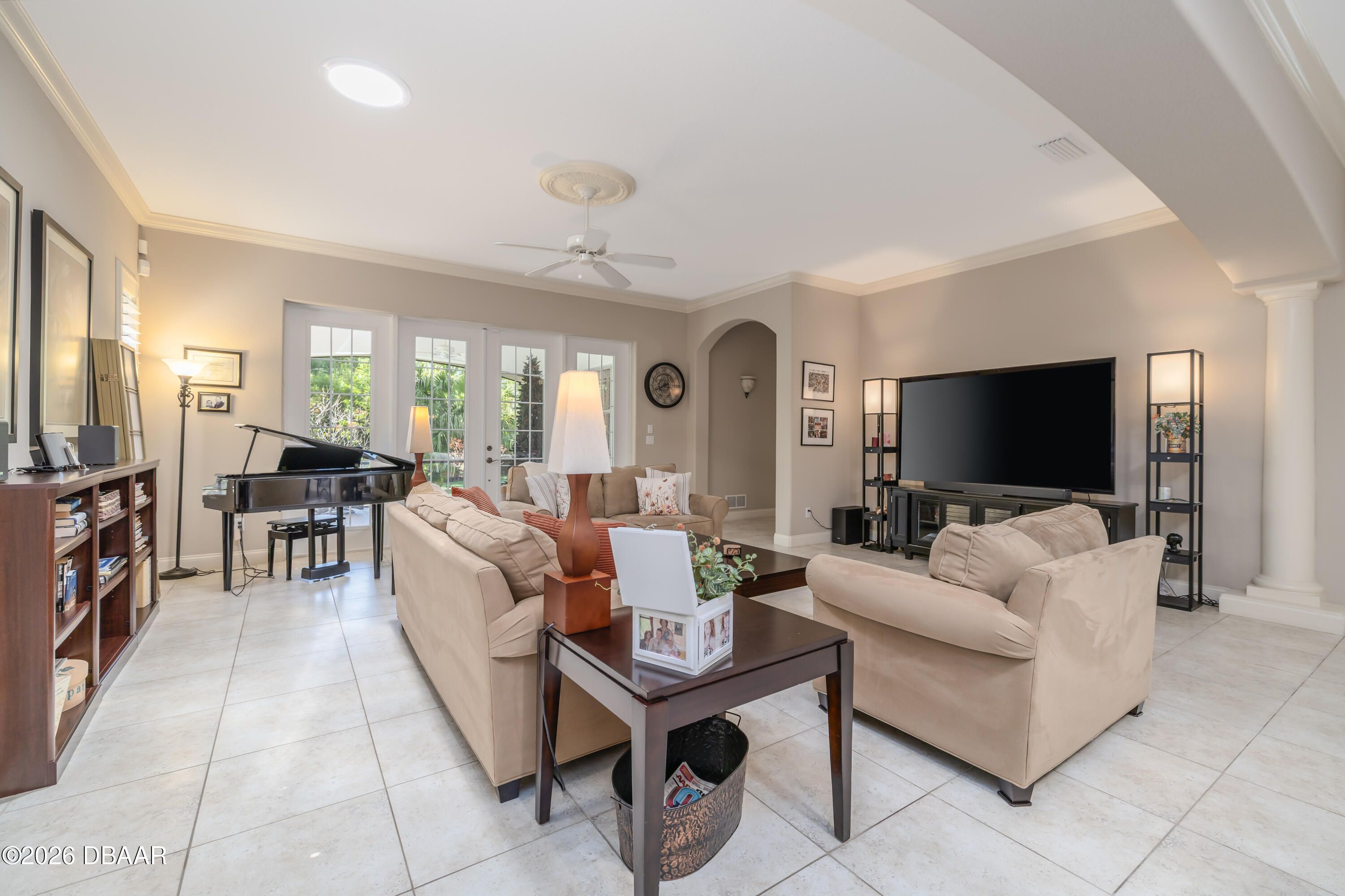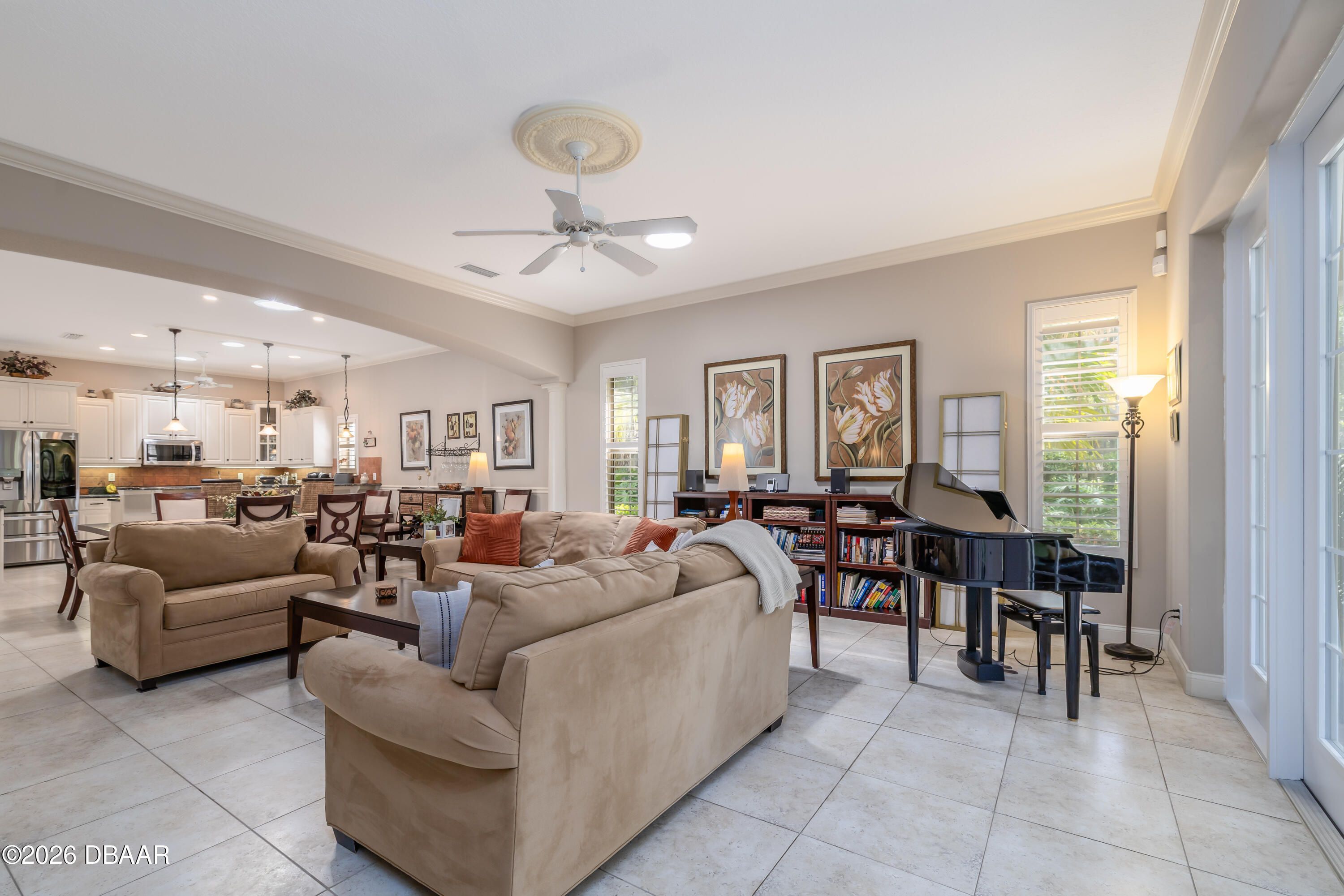 HALIFAX PLANTATION-COURTYARD POOL! Welcome home! From the moment you arrive, you'll be captivated by the mature landscaping and charming wrought-iron arched gate, guiding you through a double-door entry into your own private courtyard retreat. This inviting outdoor oasis showcases a solar-heated pool and spa, creating the perfect setting for relaxation and entertaining. This 3BR, 3BA home seamlessly connects to the courtyard through new hurricane-impact, UV-protected glass french doors, blending indoor and outdoor living effortlessly. Step inside to a bright, open-concept floor plan where the kitchen, dining, and living areas all overlook the pool. High ceilings, crown molding, and 20x20 tile flooring flow seamlessly throughout the home, creating a stylish, cohesive, and low-maintenance living space. Plantation shutters add both charm and functionality. Just off the main living area, additional French doors lead to a separate screened enclosed lanai with peaceful views of the backyard. At the heart of the home is a chef's dream kitchen, featuring 36 and 42-inch cabinetry with pull-outs, under-cabinet lighting, crown molding, and a striking tile backsplash. Enjoy newer LG stainless steel appliances, including a convection oven with air-fry capability, an oversized breakfast bar, and a spacious island accented with elegant glass pendant lighting. A charming breakfast nook offers built-in bookcases and a desk area--perfect for work or organization. The primary suite is a private retreat designed for comfort and tranquility, ideal after a day at the beach or exploring nearby parks and trails. The ensuite bathroom features a walk-in shower, double vanity, soaking tub, and private water closet. An additional flex room off the primary suite is perfect for a nursery, home office, or hobby room. This home also offers peace of mind and efficiency with double-pane windows, sun tunnels, and a durable tile roof. A standout feature is the detached pool house casita, serving as a third bedroom with its own living area, plantation shutters, and en-suite bathroom--ideal for guests, a private office, or a mother-in-law suite. Designed for entertaining, the home includes a summer kitchen and expansive outdoor living spaces. Additional highlights include exterior paint (2025), recently cleaned tile roof, pest tubes, a retractable front door screen, generator plug, security system, and paved driveway, courtyard, lanai, and walkways. Halifax Plantation is minutes from the ocean and home to 18 holes of golf, clubhouse with restaurant, sports pub and pro shop. Amenities include tennis, fitness center and swimming pool with different membership options. Enjoy early morning walks or bike rides along the canopy tree-lined streets. It's the perfect place to call home. All information recorded in the MLS is intended to be accurate but cannot be guaranteed. Square footage is taken from property appraisers office.