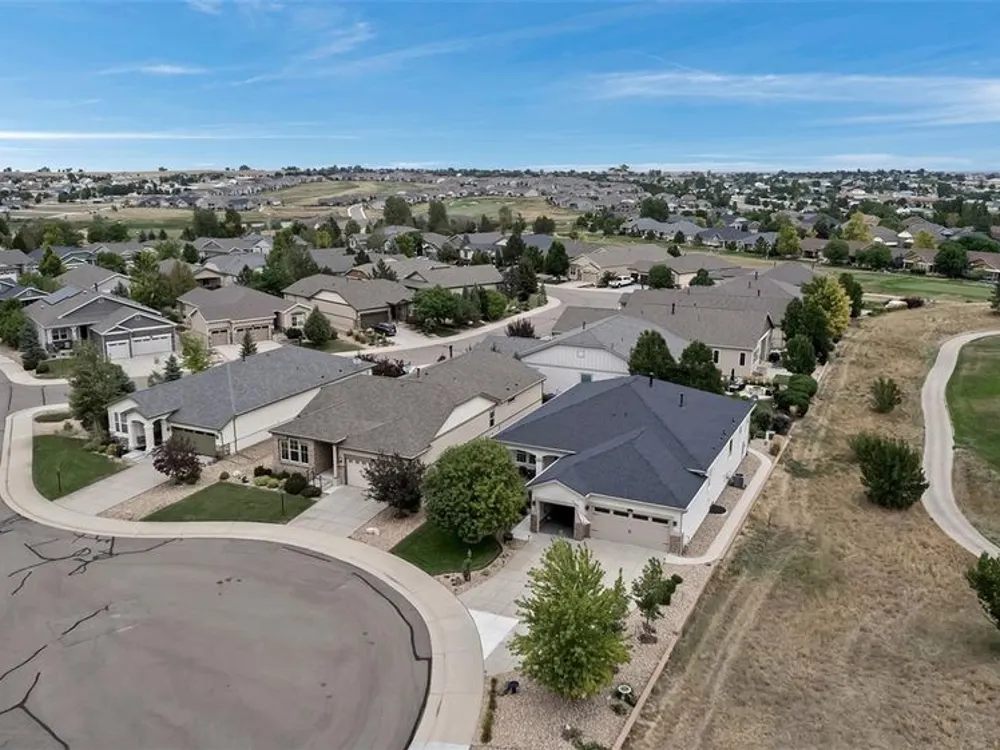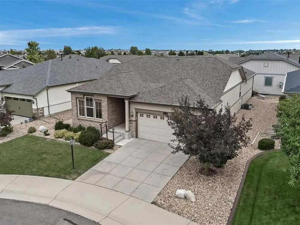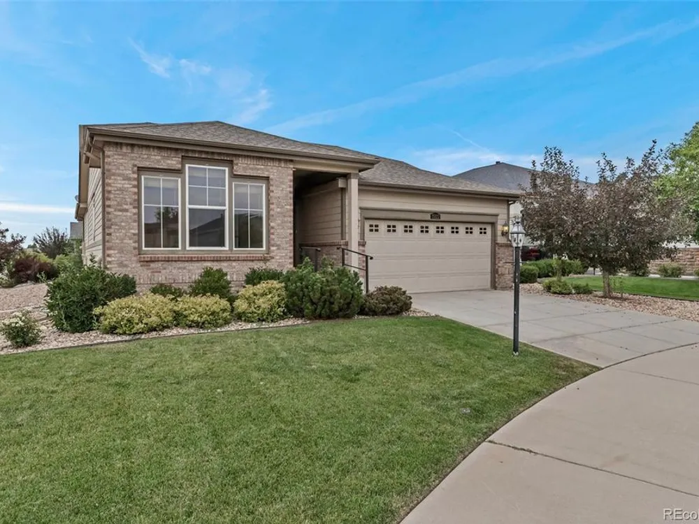 NEW INTERIOR PAINT AND CARPET! Welcome to Low Maintenance Luxury Living at its Finest! This stunning ranch-style home is located in the highly sought-after 55+ community of Heritage Todd Creek, where you can embrace an active adult lifestyle within a prestigious, gated golf course setting. Situated in a peaceful cul-de-sac and facing South, this residence offers breathtaking Colorado sunsets right from your doorstep. Upon entering, you'll be captivated by the elegant hardwood flooring that flows through the entryway, dining room, and kitchen. The chef's kitchen is a dream come true, featuring double ovens, a gas stove, granite countertops, and an abundance of cupboard space with convenient roll-out shelves. The open floor plan is complemented by extra-wide, wheelchair-accessible hallways, ensuring both style and ease of living. The cozy great room serves as the perfect gathering space, complete with a gas fireplace, ceiling fan, and access to a covered patio ideal for year-round relaxation and entertainment. The primary suite is a bright and welcoming retreat, boasting a spacious walk-in closet and a luxurious en-suite bathroom equipped with dual sinks, a large walk-in shower, and beautifully crafted tile flooring. For those looking to personalize their living space, the massive unfinished basement is fully insulated and comes with rough-in plumbing, a radon mitigation system, and a sump pit/pump, making it a blank canvas for your creative vision. When you call Heritage Todd Creek home, you'll enjoy a wealth of amenities designed to enhance your lifestyle. These include both indoor and outdoor pools, a top-of-the-line fitness center, a delightful restaurant, a golf course, and both tennis and pickleball courts—providing countless opportunities to stay active and enjoy life to its fullest. Conveniently located just minutes from E-470, this home offers easy highway access to explore all that Colorado has to offer.