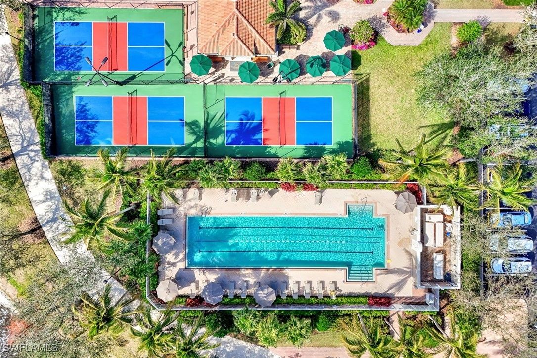 - Includes: Basketball Court, Bocce Court, Clubhouse, Fitness Center, Other, Playground, Pickleball, Park, Pool, Restaurant, Spa/Hot Tub, Tennis Court(s), Trail(s), Management