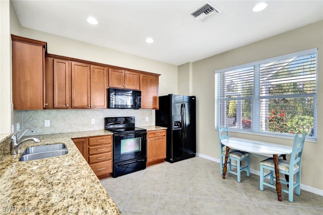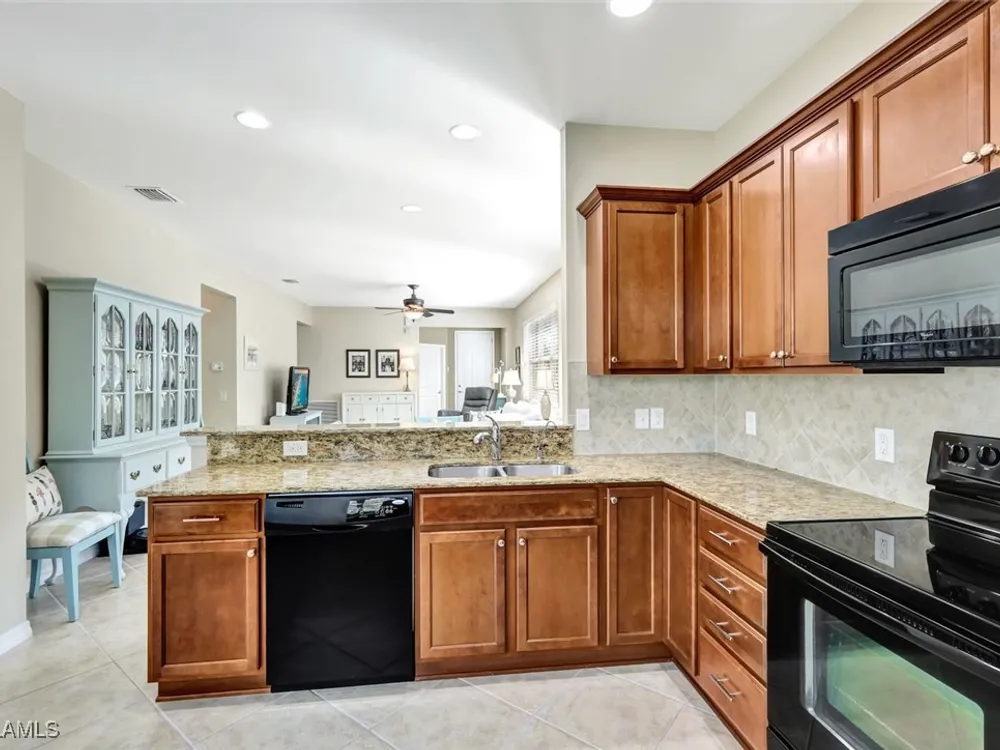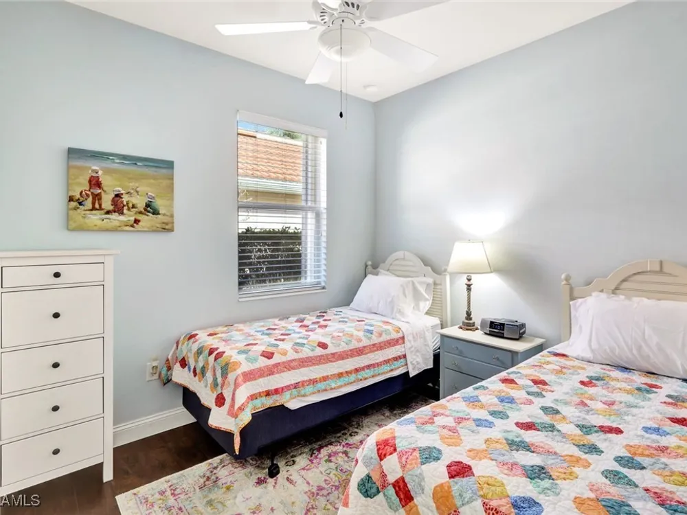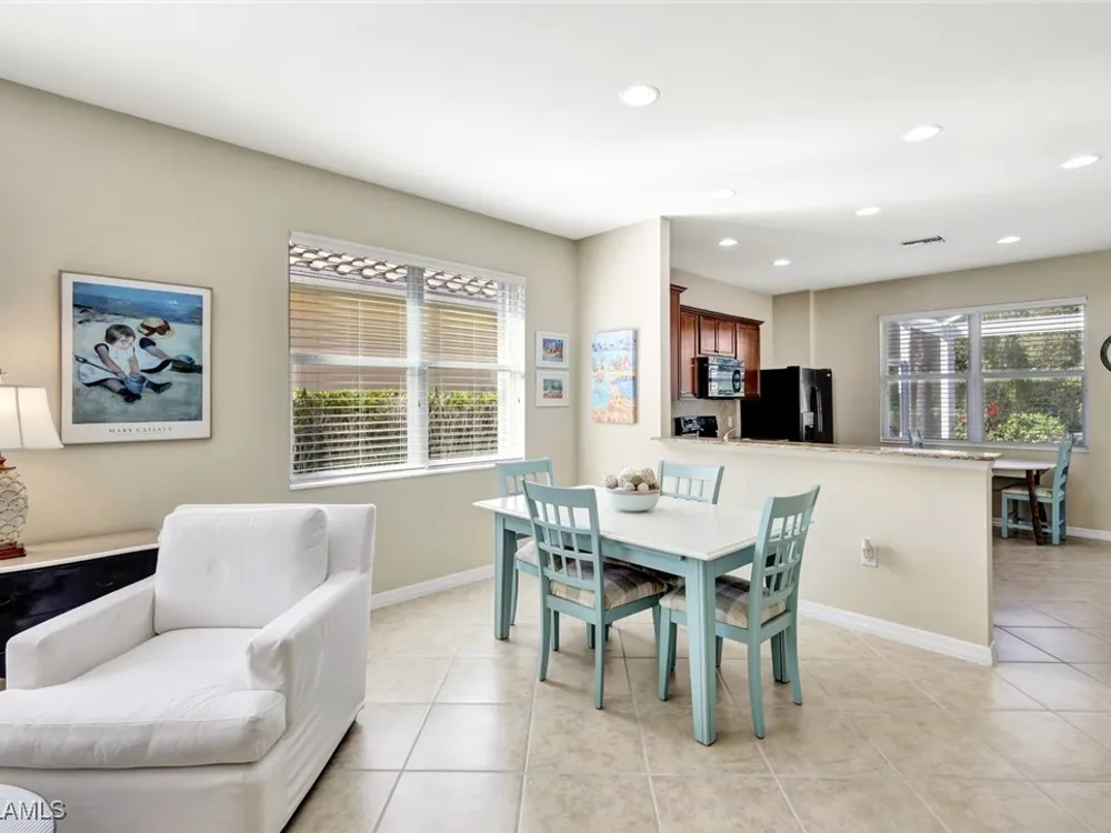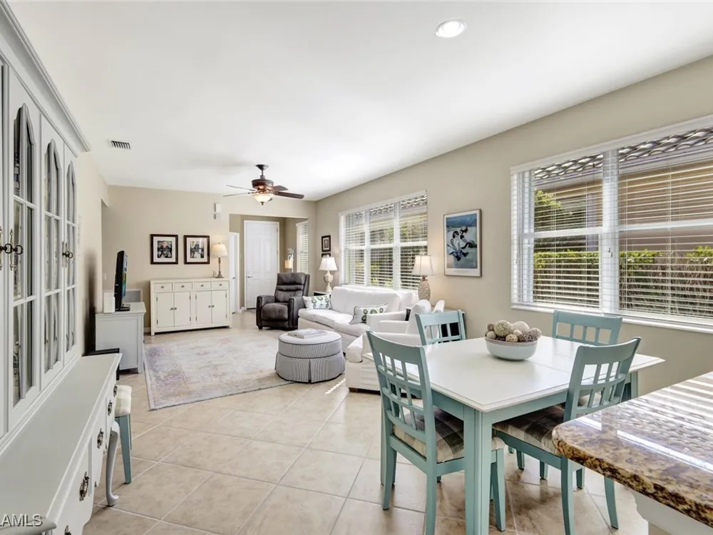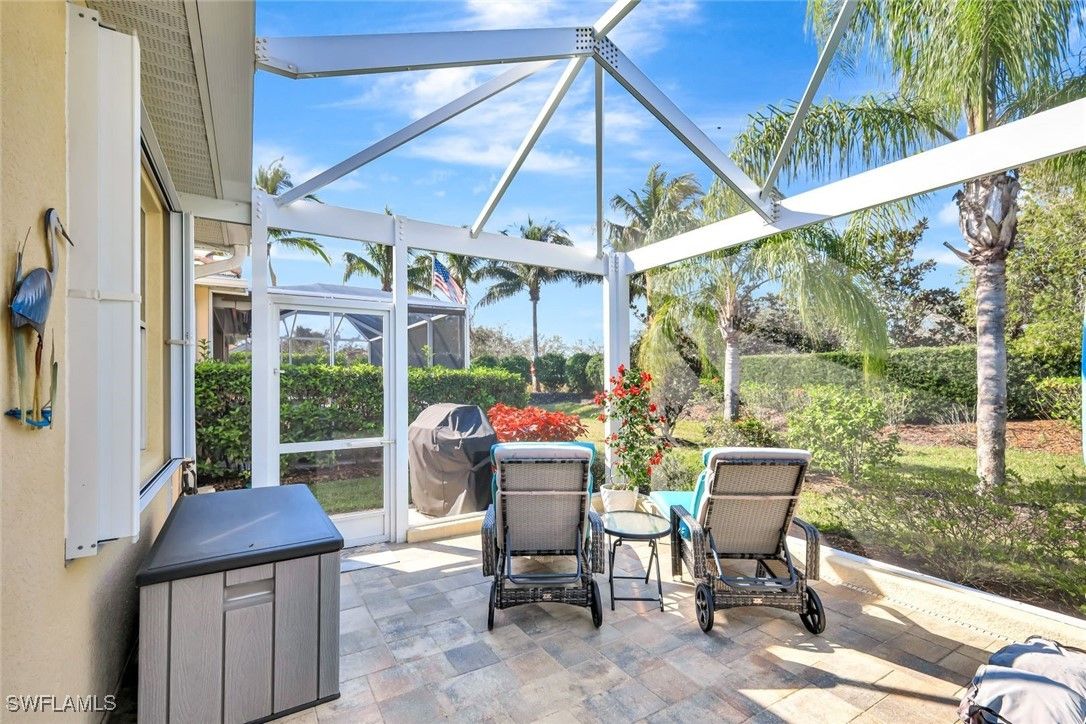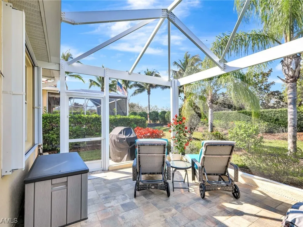 One of the most affordable single-family homes in the highly desirable Village Walk of Bonita Springs, this turnkey-furnished beauty is ready to welcome you home. Bright, airy, and impeccably maintained, the Pine Spring floor plan is filled with natural light from plenty of windows—all equipped with accordion shutters for easy storm protection. With 3 bedrooms, 2 baths, tile and laminate flooring throughout, and a brand-new A/C (April 2024), this home is move-in ready and thoughtfully designed for comfort. Enjoy peaceful mornings on the screened front patio and unwind each evening on the spacious back lanai, complete with hurricane blinds and panoramic western sunset views. Whether relaxing or entertaining, these outdoor spaces offer a perfect escape to soak in the calm surroundings. Village Walk is a secure gated community with 24-hour guard service and low HOA fees. Live a vibrant lifestyle with access to resort-style amenities including a lakefront Town Center with a fitness center, restaurant, spa, ice cream shop, and more. Stay active with tennis, pickleball, basketball, bocce ball, playgrounds, and a stunning community pool. Priced to sell fast, this bright and charming home offers the perfect blend of style, comfort, and convenience. Don’t wait—schedule your private showing today and make Village Walk your new home where every day feels like a vacation!