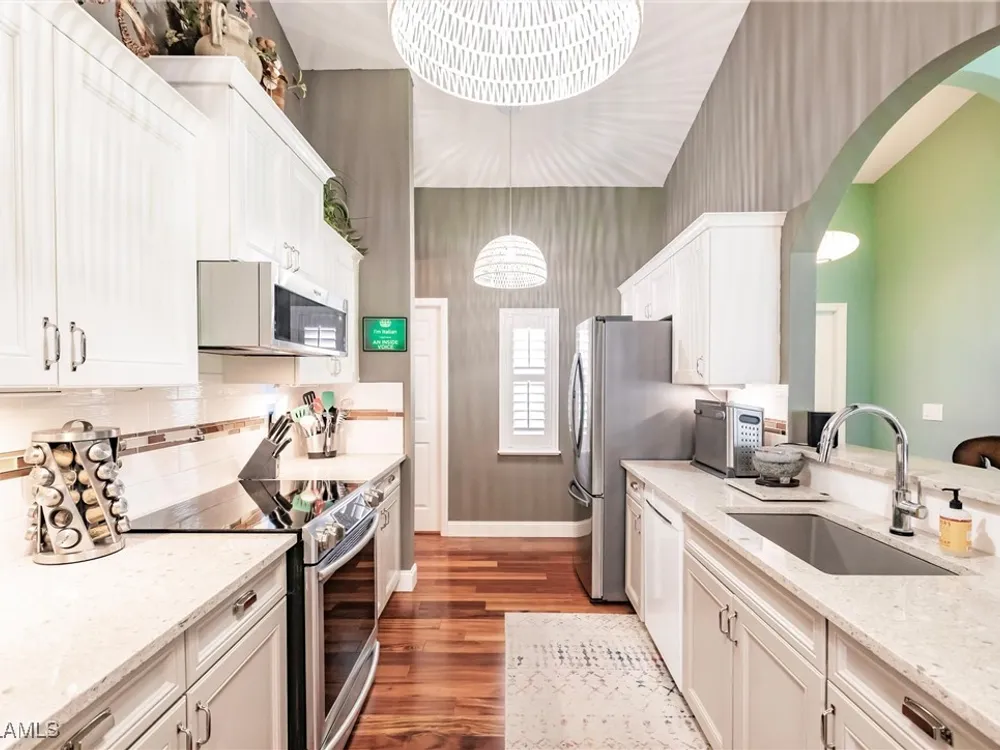 Furnished! Experience the perfect blend of style, modern upgrades, and comfort in this beautifully updated single-family residence, offering all the WOW factors you've been searching for. This unique model home by Levitt & Sons showcases vaulted ceilings, elegant arches, and hardwood floors throughout, creating an inviting and sophisticated atmosphere. Recent upgrades include a microwave (2020), hot water heater (2023), refrigerator with dual ice maker and a 5-year transferable warranty (2023), washer and dryer (2023), garbage disposal (2024), and an AC unit installed in 2019 with regular maintenance and a kick-start unit added in 2022. The home features hurricane impact windows and an impact garage door, providing added safety and peace of mind AND no flood insurance required. Home is not in a flood zone. The kitchen and bathrooms have been fully updated with quartz countertops, an induction stove/convection oven, and modern vanities, perfectly complemented by plantation shutters that fill the home with natural light. The hardwood floors add warmth and timeless appeal, while the vaulted ceilings and arches enhance its architectural charm. Situated on the deepest lot in the community and backing to a tranquil preserve, there's plenty of space to expand or create your own outdoor retreat. Inside, you'll find a split floor plan with a versatile den or flex room, a large primary suite with a sitting area and walk-in closet, and extra storage in the laundry room, garage, and a second refrigerator/freezer included. The spacious layout and upscale finishes make this home both functional and elegant. Located in Cascades, a highly desirable 55+ community, residents enjoy a lively clubhouse, pool, tennis courts, and a variety of activities. Plus, there's direct access to the River Hall restaurant and a pay-to-play golf course—offering endless leisure and social opportunities. This meticulously maintained home combines contemporary upgrades with an exceptional location, making it an outstanding opportunity to enjoy your paradise in style.