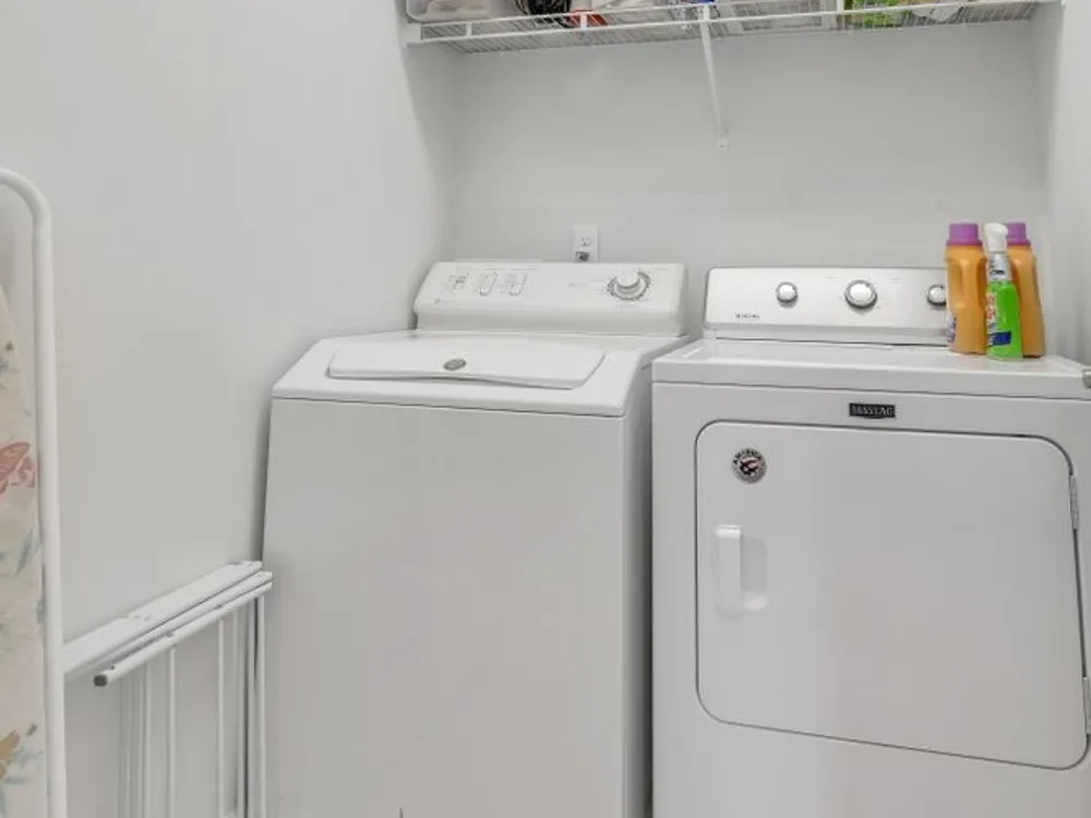 - Electric Range, Dishwasher, Disposal, Dryer, Microwave, Refrigerator, Stainless Steel Appliance(s), Washer