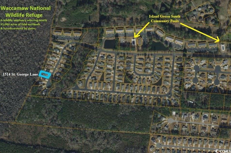 This 3BR/2BA home with a 2-car garage is located in the desirable community of Island Green South. This home features one of the larger floorplans with a spacious Family Room (15.5 x 15) and Carolina Room. The kitchen features white cabinets, built-in microwave, flat top stove, stainless steel appliances & solid surface countertops. There is a breakfast nook off of the kitchen. The home also has a formal dining room and laundry room. The master bedroom (15 x 11.9) has a walk-in closet & vaulted ceiling. The master bathroom has a double sink and shower. The extra-large screened in back porch (18.5 x 11) & concrete back patio are the perfect areas to enjoy the privacy of the wooded back yard, which is bordered by a protected nature area. This home has been well cared for by the original owner & received an interior renovation in 2018 which provided for fresh paint, laminate & tile floors throughout. There is minimal traffic as this home is located near the cul-de-sac of a dead-end street. HOA amenities for Island Green South include two community pools, basic cable, internet & trash-pickup. Convenient South Strand Location: close all the attractions & opportunities the Coastal Carolinas has to offer. The natural area behind the home is the Waccamaw National Wildlife Refuge, a wildlife sanctuary covering nearly 55,000 acres of tidal wetlands & forests crossed by rivers.
