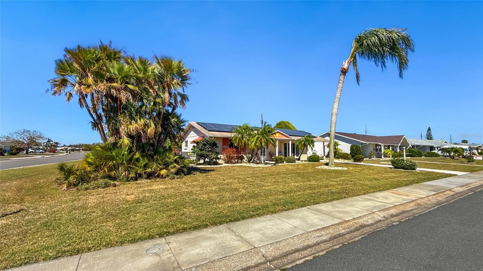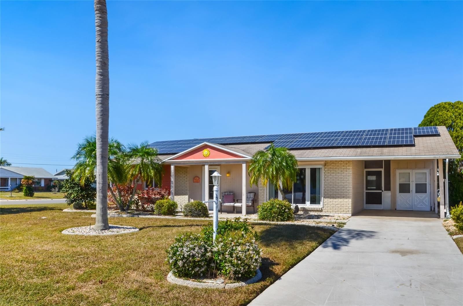 One or more photo(s) has been virtually staged. Your dream home in Sun City Center awaits! This affordably priced home is perfect for year-round living or a winter retreat and is move-in ready. This home is located on an oversized corner lot featuring well-manicured landscaping and mature trees. The home features brand new floors and a new air conditioner (December 2024), along with hurricane shutters, and two doggy doors that leads to the fenced in yard. The community features a fitness center, golf cart accessibility, irrigation with reclaimed water, and a community pool. Enjoy 55+ living in a golf cart-friendly community with everything you need close by. Sun City Center is a premier active retirement community in Florida, offering convenient access to shops and restaurants, nearby beaches, and quick access to Tampa and Orlando. The community offers over 100 clubs, including aquatics and fitness, arts and crafts, cards and games, dance and music, outdoor activities, social and civic groups, stage shows, travel, computer clubs, archery, golf and tennis, and veterans groups. The club boasts a state-of-the-art fitness center, indoor and outdoor pools with various classes, a top-notch softball facility, and many well-equipped rooms for arts and crafts. There are also 10 tennis courts, 4 pickleball courts, lawn bowl greens, shaded horseshoe pits, volleyball courts, dog parks, and a billiards room. Additionally, there are rooms for dances, meetings, theatre productions, cards, a computer lab, and more. Experience the vibrant and welcoming atmosphere like nowhere else and make this dream home yours today! **** Monthly Solar panel lease of $116 will transfer to new owner. Average monthly electric bill is $25. No HOA.
