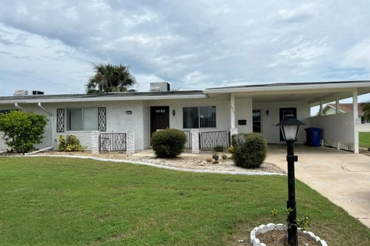 One or more photo(s) has been virtually staged. Villa in Sun City 2 bedroom 2 bathroom with an over sized garage. Open floorplan makes this property enjoyable along with a Florida room. Open kitchen with plenty of counter space. Inside laundry area and a utility room. Monthly HOA fee includes lawn Maintenace and water. Come enjoy this community with many activities... indoor and outdoor pools, clubhouses along with group activities for hobbies and fitness centers. This Villa property does adjoin the neighboring Villa that is also for sale in case a family or friends would like to have two properties next to each other.