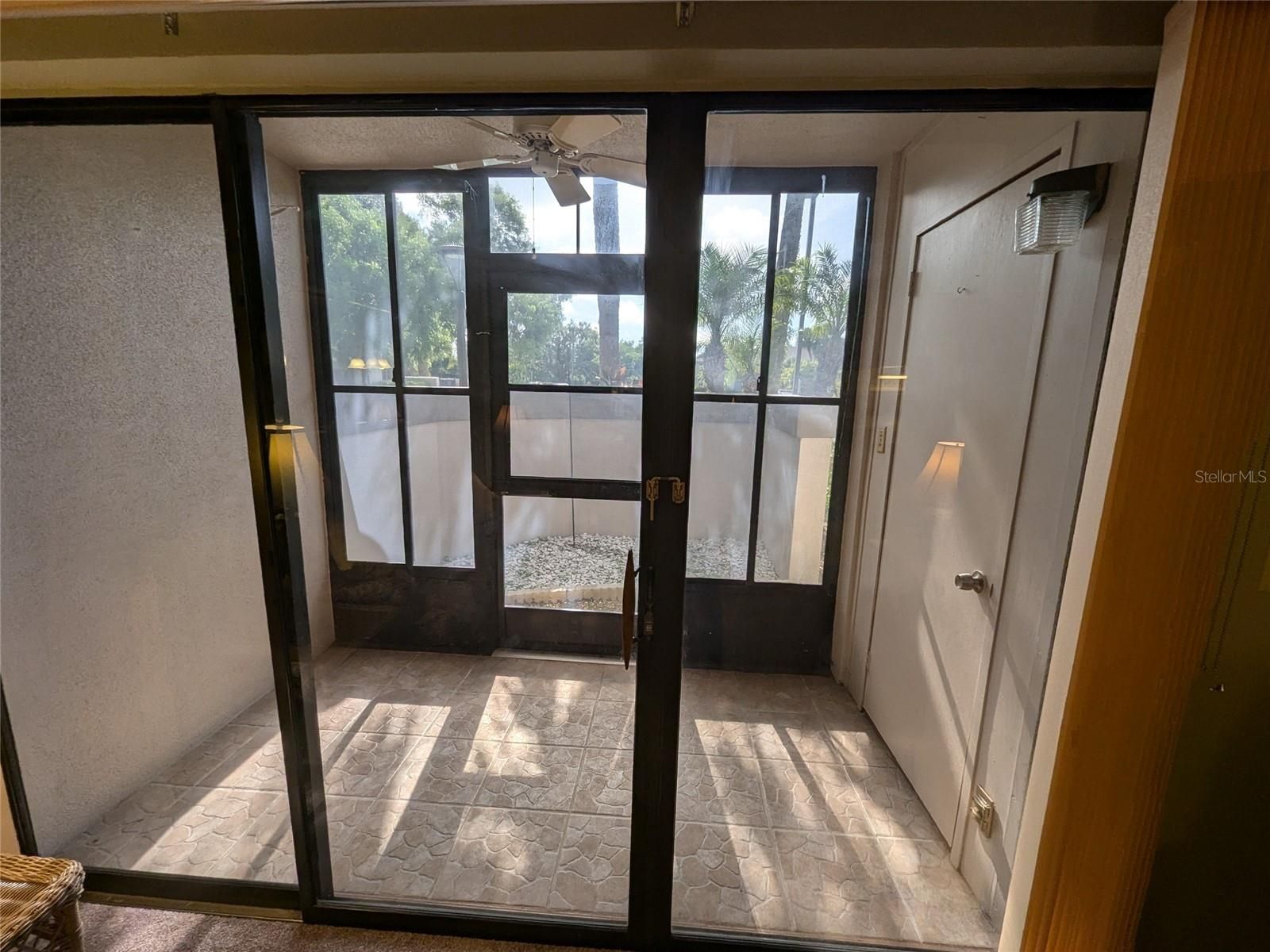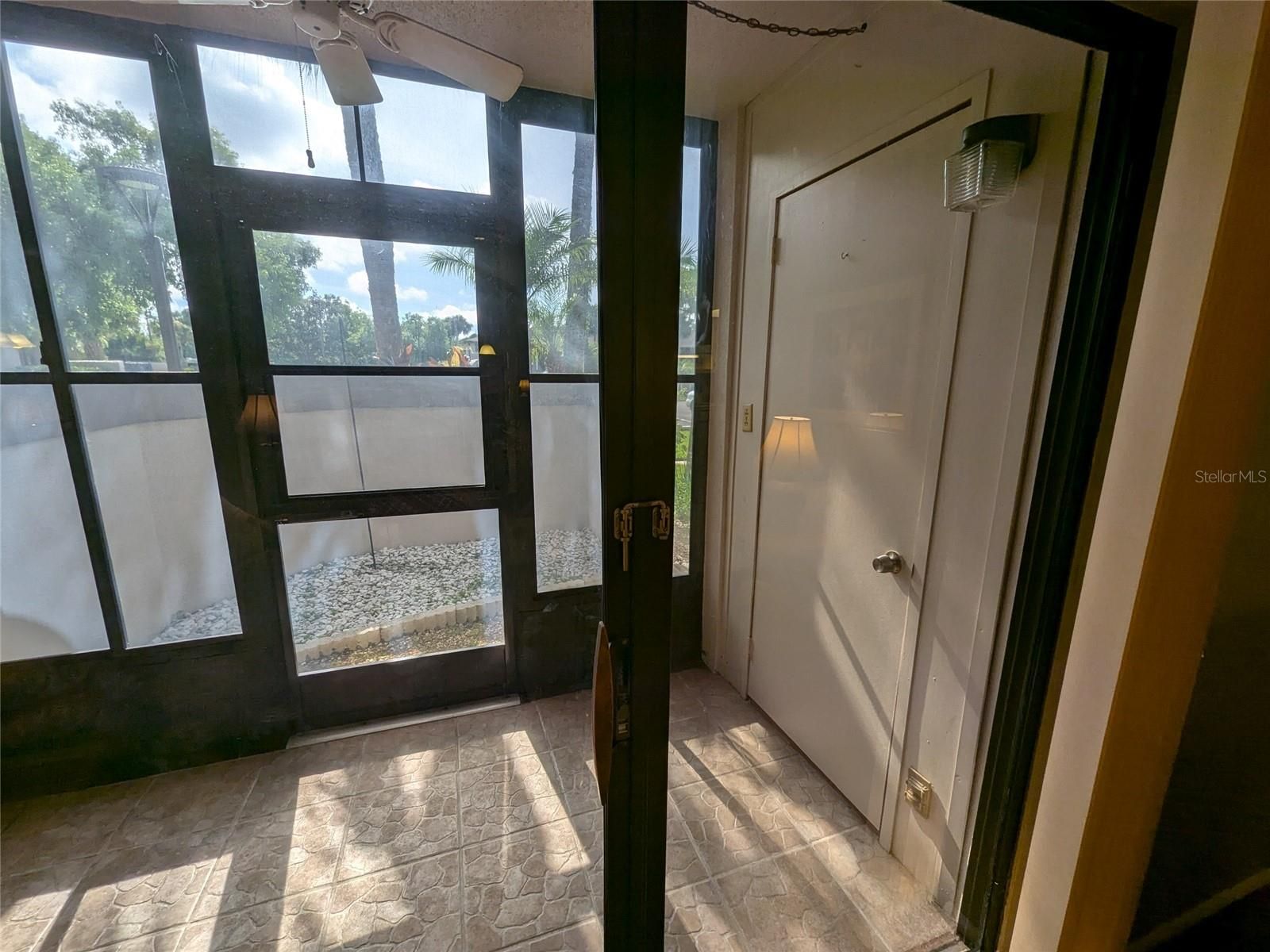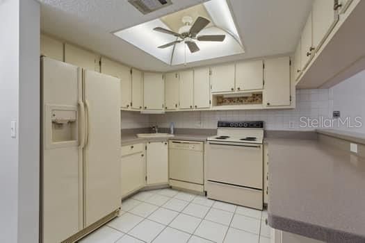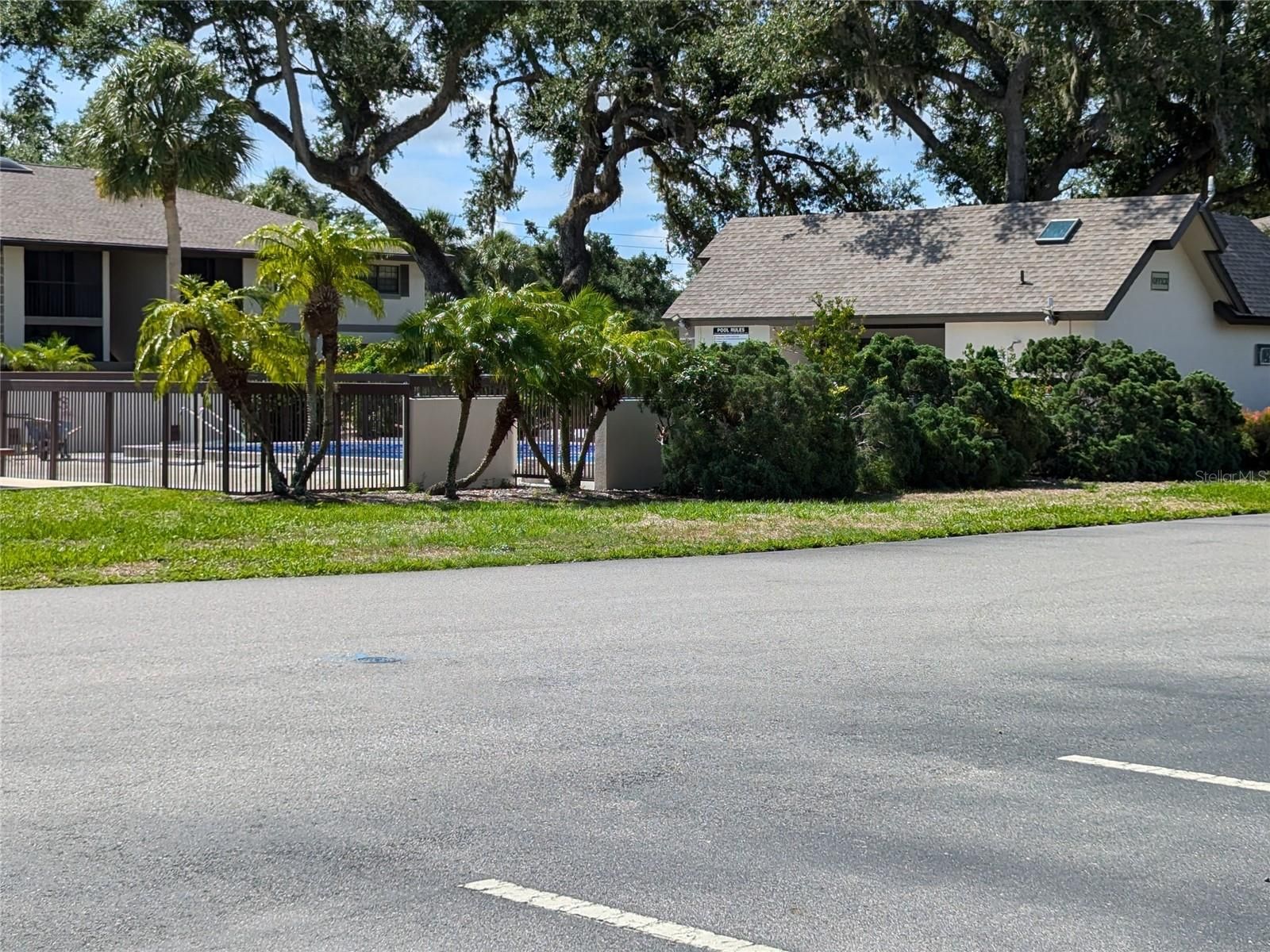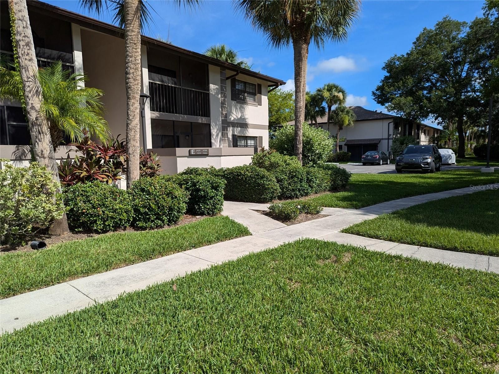 This 2BR, 2 Bath home is a most favored 1ST FLOOR, up front . Just across the way from Clubhouse and pool as well as Bar b que area and picnic tables. Mailboxes also just a few steps away. This Building has a newer roof and is away from any roadway noise. The kitchen comes fully equipped with appliances and also has spacious counters and cabinets. At the end of the hallway, seller is leaving a stackable washer and dryer for your convenience. The Primary bedroom offers en suite private bath and guest bedroom has easy access to the Hallway full bathroom. Off the living room, there are sliders to the screened lanai that overlooks a small but private garden area and also includes a private storage room. You have so many recreational amenities in this Gated community . There are 3 heated pools, the outdoor grills, shuffleboard courts, bocce ball as well as some walking paths and plenty of shade trees. This 55 and over community is also so convenient to shopping and restaurants and even a library and health care facilities. This is your own private paradise with beautiful lawns and tropical landscaping, sidewalks, assigned parking, building maintenance etc. Approximately 23 acres that is perfectly cared for. Just sit back and enjoy. NOTE (9-6-25, the entire home has been repainted, carpet cleaned etc, some fixtures changed out . Nice and fresh and back onto the market!!! ) PS THIS AREA IS NOT IN FLOOD ZONE ON FEMA MAPS